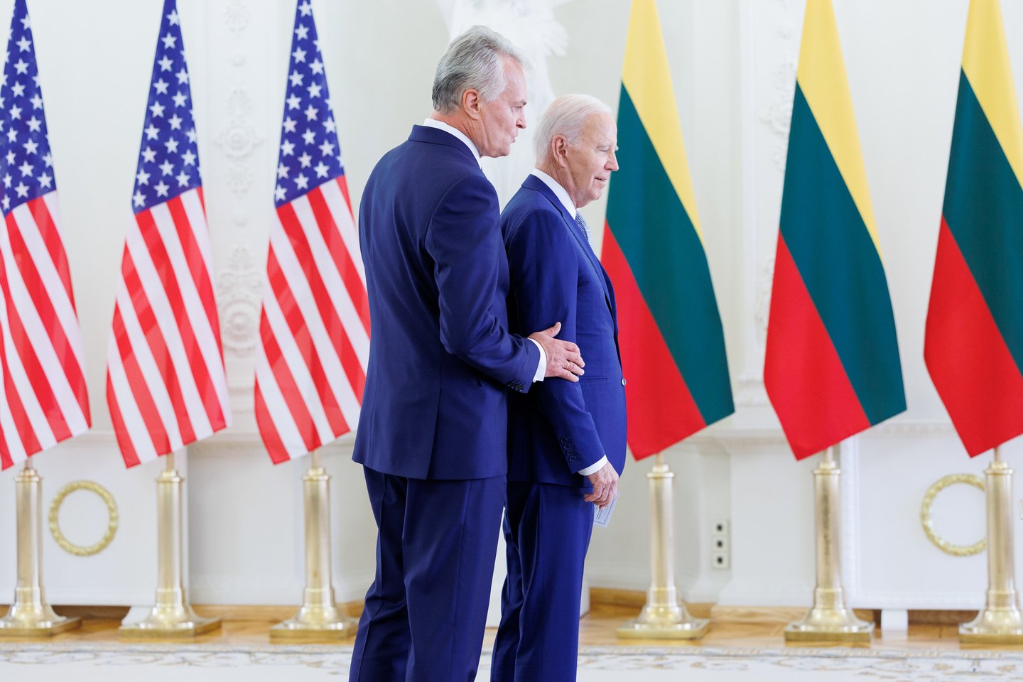 Kaip anksčiau skelbė Prezidentūra, Lietuvos ir JAV vadovai dvišaliame susitikime aptarta paramą Ukrainai, NATO rytinio flango stiprinimo priemones, atsaką į Baltarusijos remiamą Rusijos karinę agresiją prieš Ukrainą.