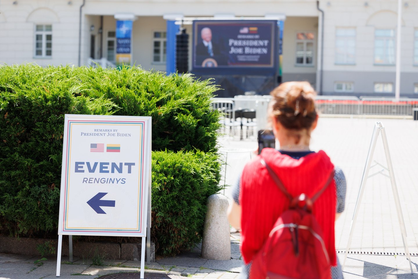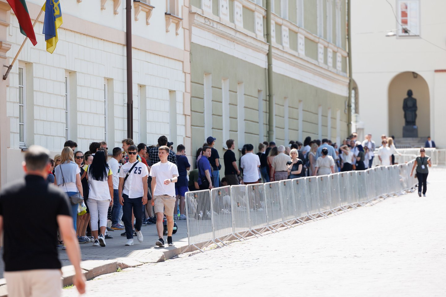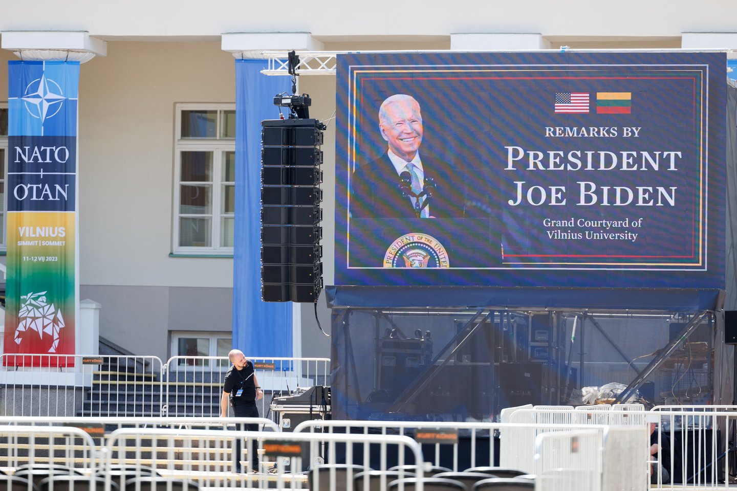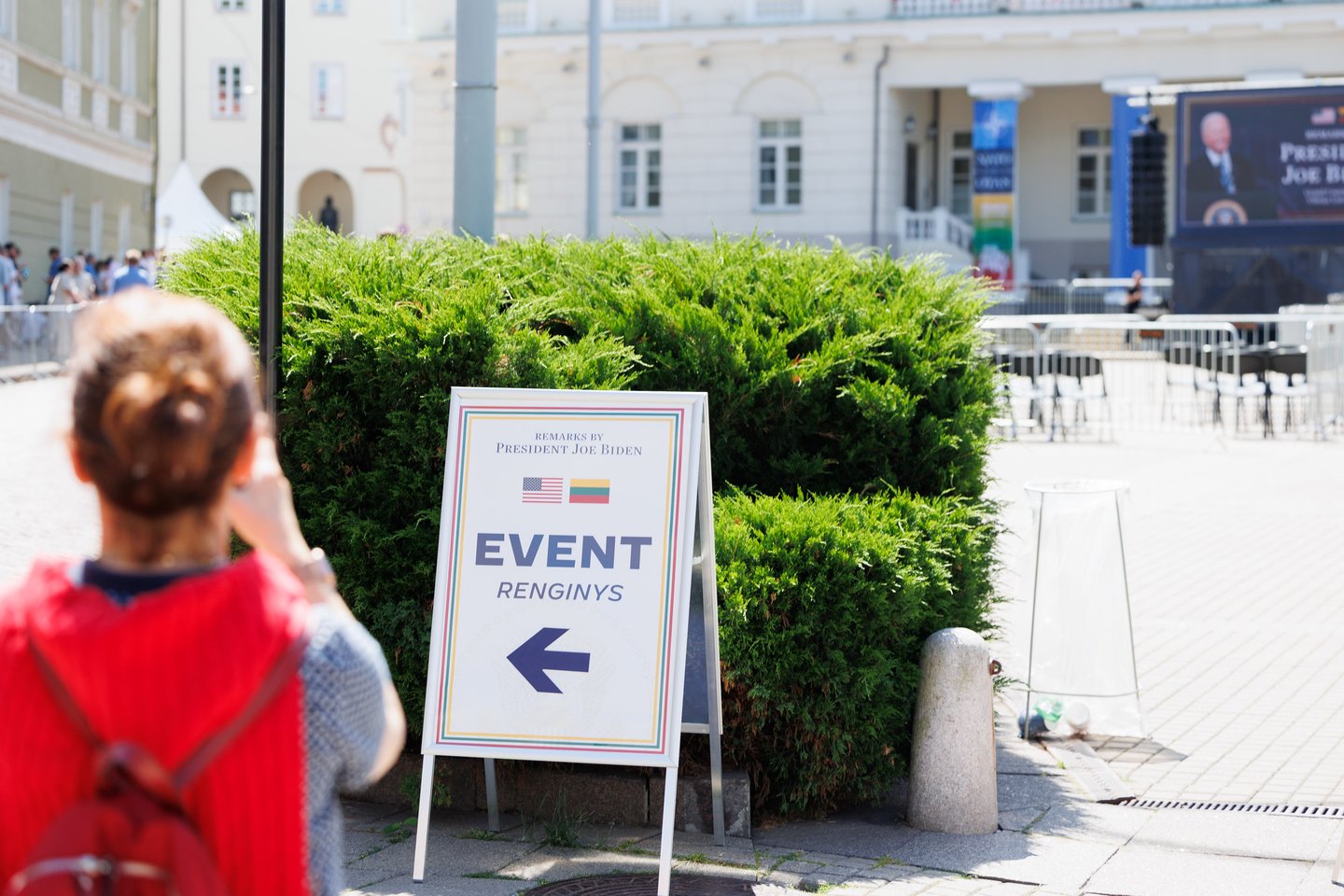 Trečiadienį po NATO viršūnių susitikimo JAV prezidentas Joe Bidenas kreipsis į lietuvius Vilniaus universiteto (VU) kiemelyje. Vartai laukiantiems J.Bideno kalbos bus atidaryti apie 16 val. 30 min., tačiau didžiulė eilė į kiemelį, kur vietų skaičius gana nedidelis, nusidriekė dar gerokai prieš. Žmonės čia jau rikiavosi nuo pietų. Neseniai pranešta, kad JAV prezidento kalbos naujas preliminarus laikas 19 val. 45 min.