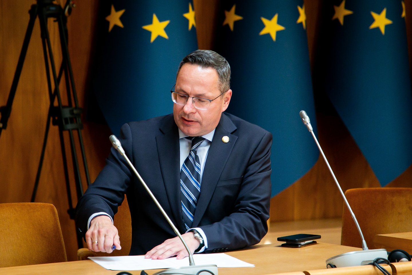 „Paralyžiuoti mūsų priešakines pajėgas, kurios apsaugo Lietuvą nuo karinės grėsmės galimybės, sukuria saugią aplinką pačiu jautriausiu mums laiku – ir tai vyksta iš aukščiausios politinės institucinės tribūnos Lietuvoje. Man tai panašėja į tam tikrą hibridinę politinę ataką prieš profesionalią diplomatinę tarnybą. Tai sukelia labai daug klausimų“, – kalbėjo konservatorius.
