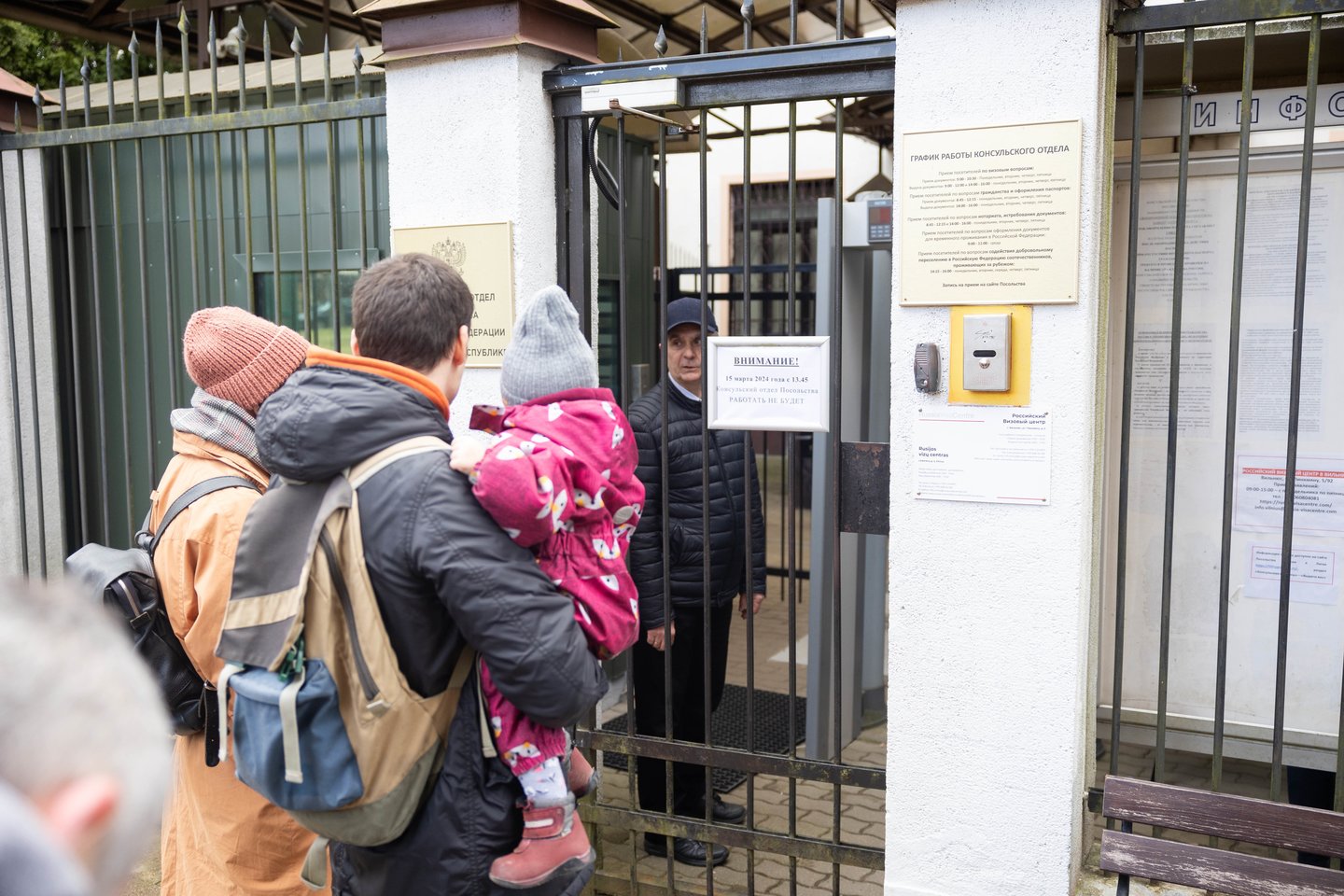 Tiesa, apie 12 val. prie Rusijos ambasados durų jau stovėjo išsirikiavusi kelių šimtų žmonių minia, laukianti savo eilės atiduoti balsą.