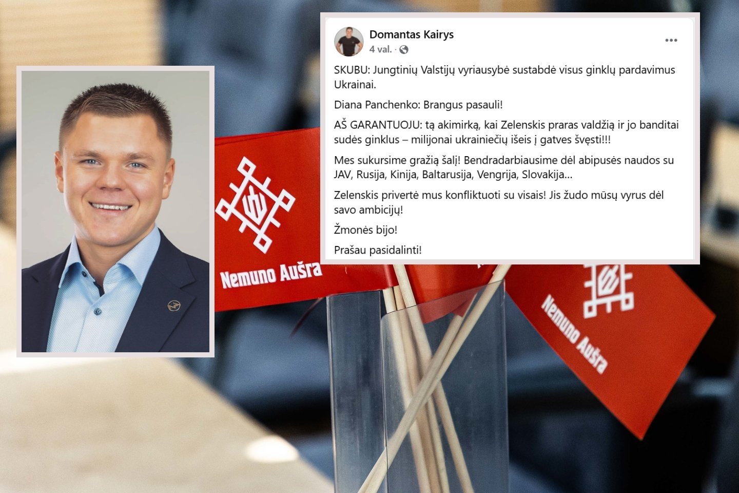 Prašau pasidalinti!“, – tokiu propagandistės įrašu feisbuke dalijosi D.Kairys.