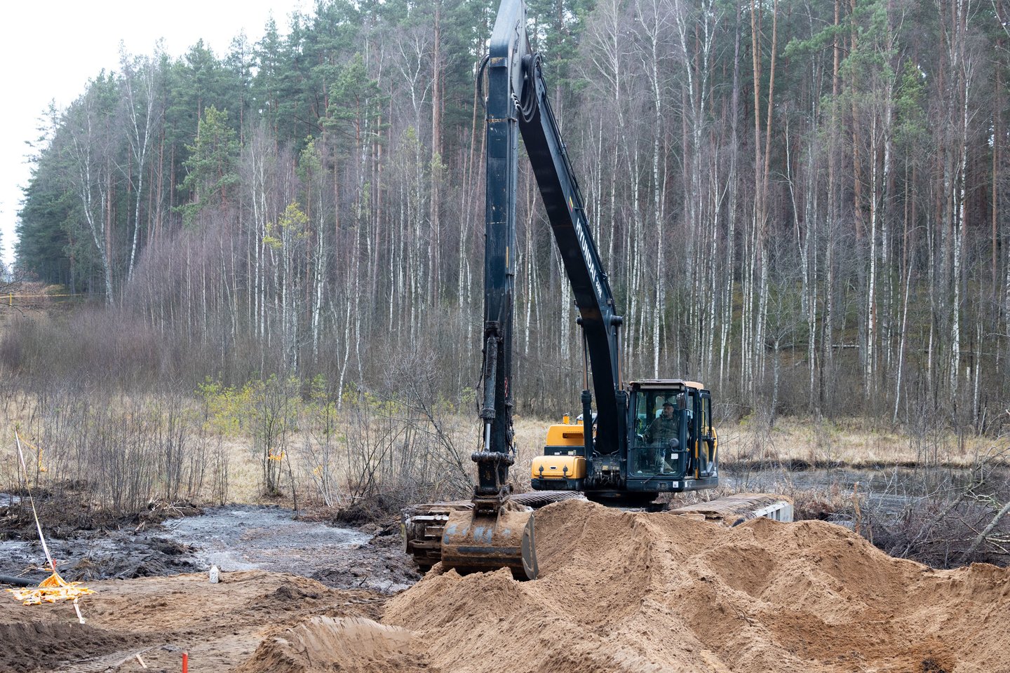 Vien paruošti papildomą privažiavimą per 24 valandas, praktiškai naujas kelias yra padarytas, kad atvažiuotų sunkioji technika. Vandens lygis nusiurbtas tiek, kad būtų galima pradėti kasimo darbus. Atvyko amfibija, ilgastrėlis ekskavatorius, nes jo buvo neįmanoma kitaip pristatyti per platformą, tai jis tiesiog savo eiga turėjo atvažiuoti“, – ketvirtadienio rytą kalbėjo D.Šakalienė.