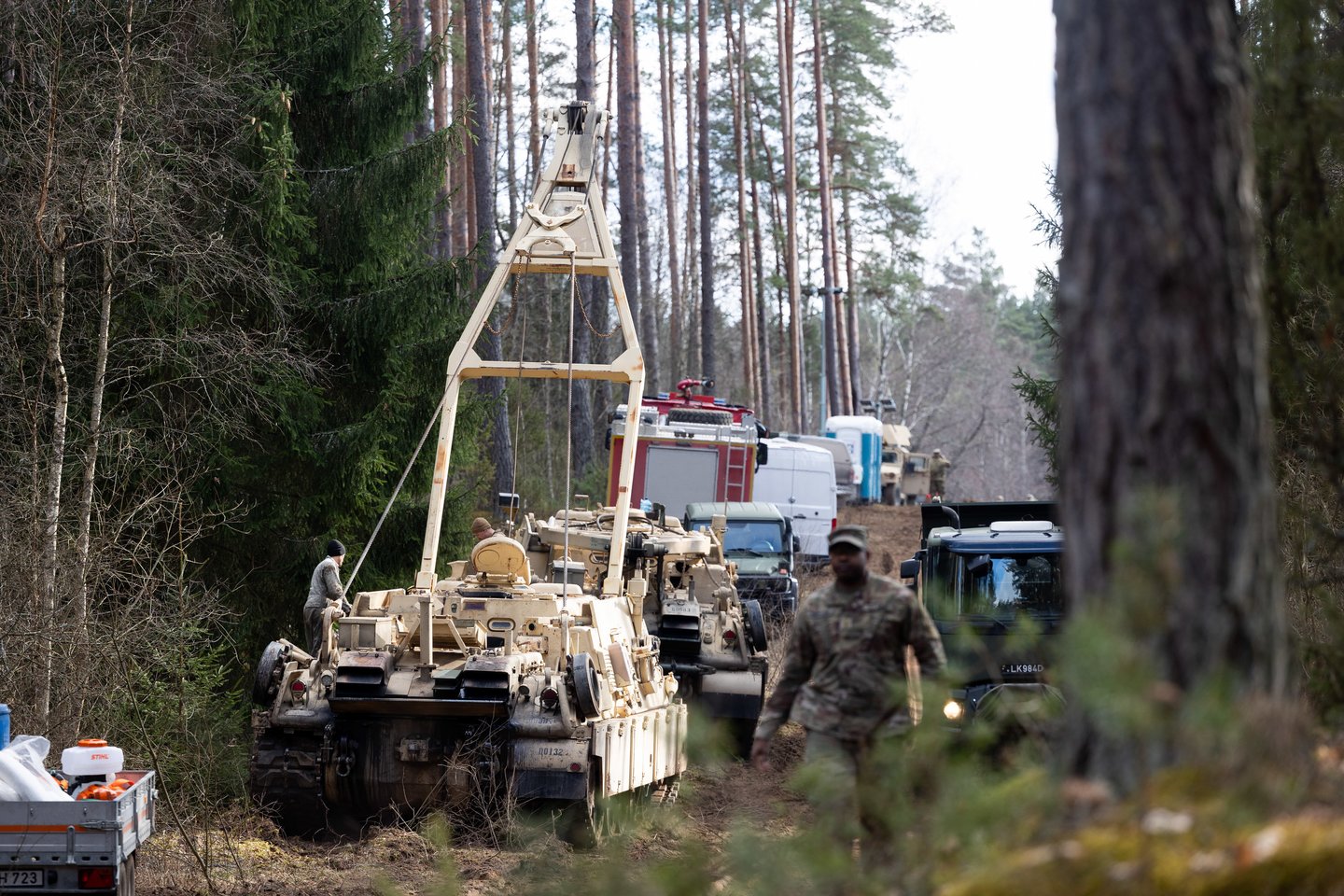 Daugiau nei dvi paras vykstantys paieškos ir gelbėjimo darbai Pabradės poligone norimų rezultatų dar neatnešė, tačiau vietoje dirbantys specialistai rankų nenuleidžia. Įvykio vietoje ir toliau dirba buldozeriai, eskavatoriai, įvairūs evakuatoriai bei karinė technika. Lrytas fotografo kadruose – šalia nelaimės vietos dirbantys specialistai ir šalimais poligono esantis Pabradės miestelis.