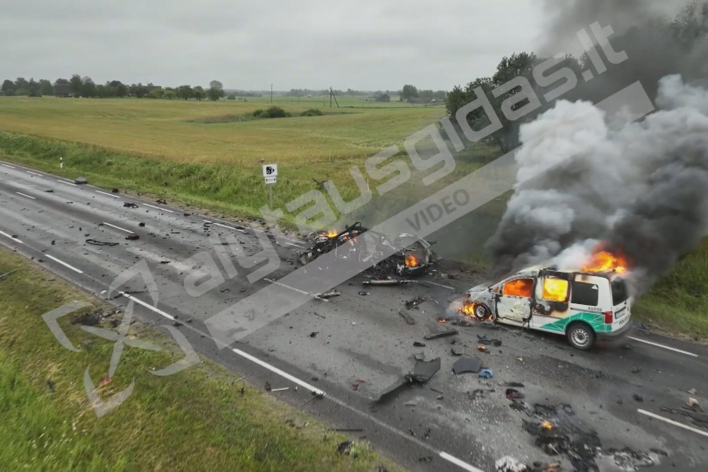 Jo teigimu, dar rusenantis įtariamo žudiko kūnas gulėjo griovyje maždaug už 10–15 metrų nuo sudegusio automobilio.