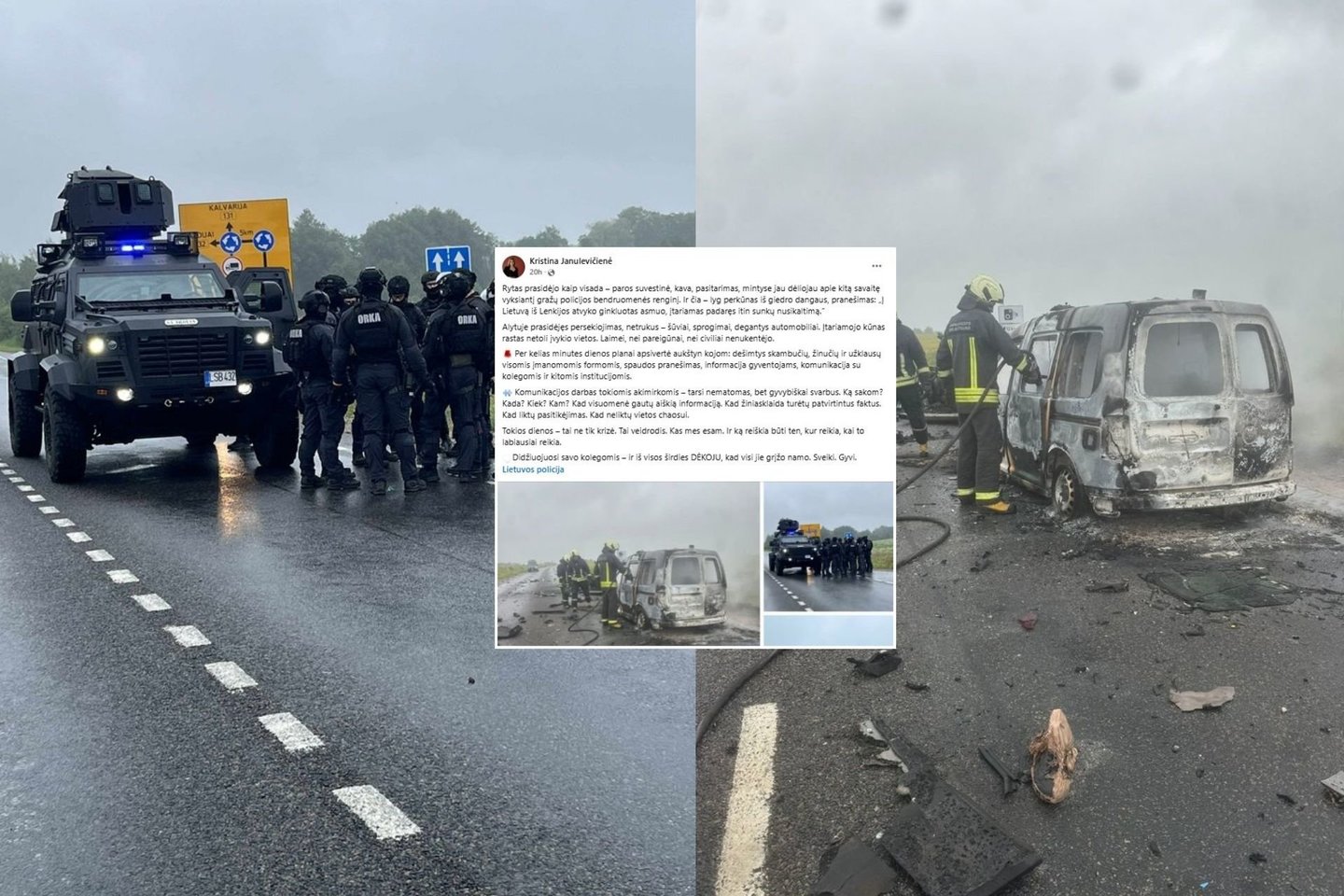 „Rytas prasidėjo kaip visada – paros suvestinė, kava, pasitarimas, mintyse jau dėliojau apie kitą savaitę vyksiantį gražų policijos bendruomenės renginį. Ir čia – lyg perkūnas iš giedro dangaus, pranešimas: „Į Lietuvą iš Lenkijos atvyko ginkluotas asmuo, įtariamas padaręs itin sunkų nusikaltimą“, – rašė K.Janulevičienė. -