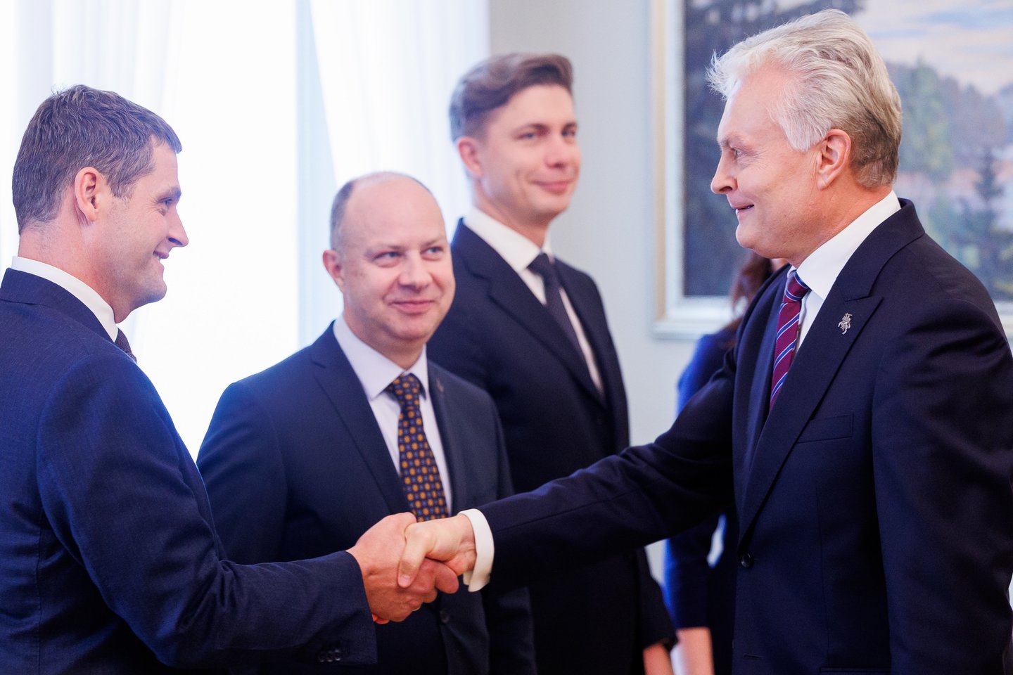 Į Prezidentūrą keturi koalicijos lyderiai atvyko ketvirtadienį popiet. Laukdami ateinančio G.Nausėdos jie išsirikiavo šalia salės, kur netrukus ir buvo priimti. O ir išsirikiavo politikai – tikrai ne bet kaip.
