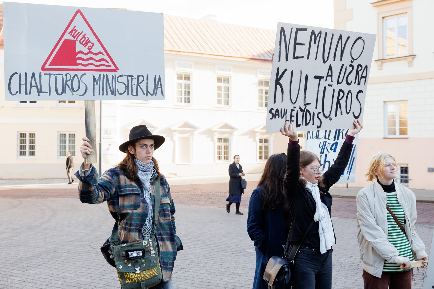 Į protestą atėjusi Rugilė neslėpė pasipiktinimo, kad į Kultūros ministeriją deleguojamas žmogus, kuris šioms pareigoms visiškai netinka.