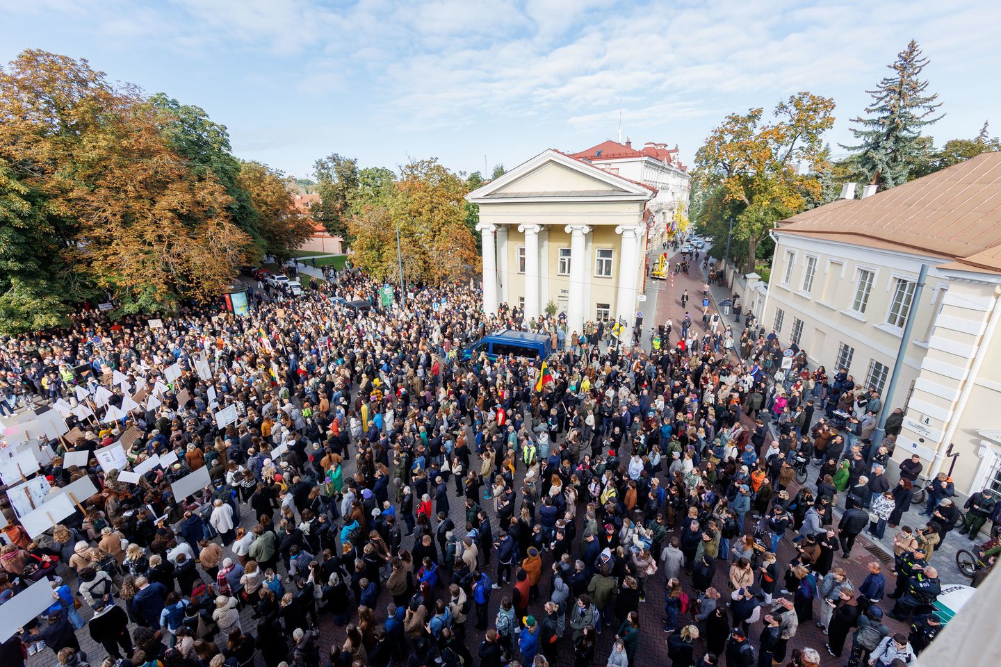 Netrukus aikštė buvo pilnutėlė. Minia skandavo „kultūra – ne chaltūra“, „gėda“, skriejo nepatogūs epitetai ir šalies vadovams, skambėjo M.K.Čiurlionio muzika, pasisakyti norėjo ir visuomenėje gerai žinomi veidai.