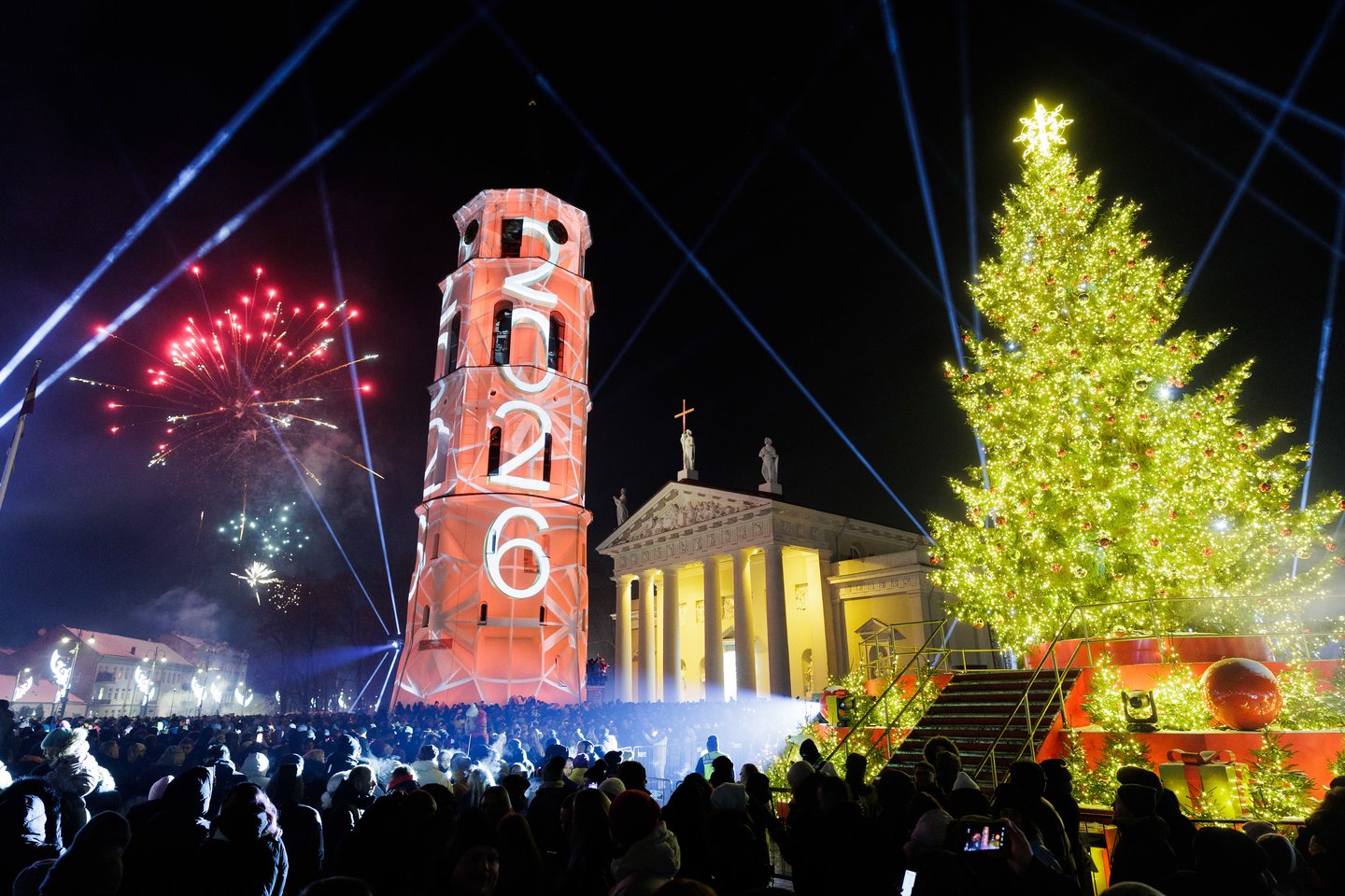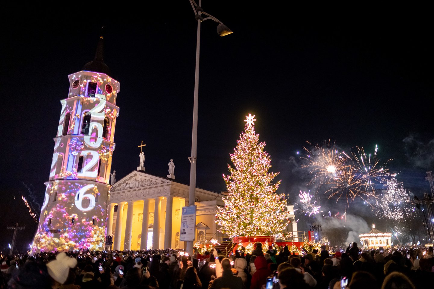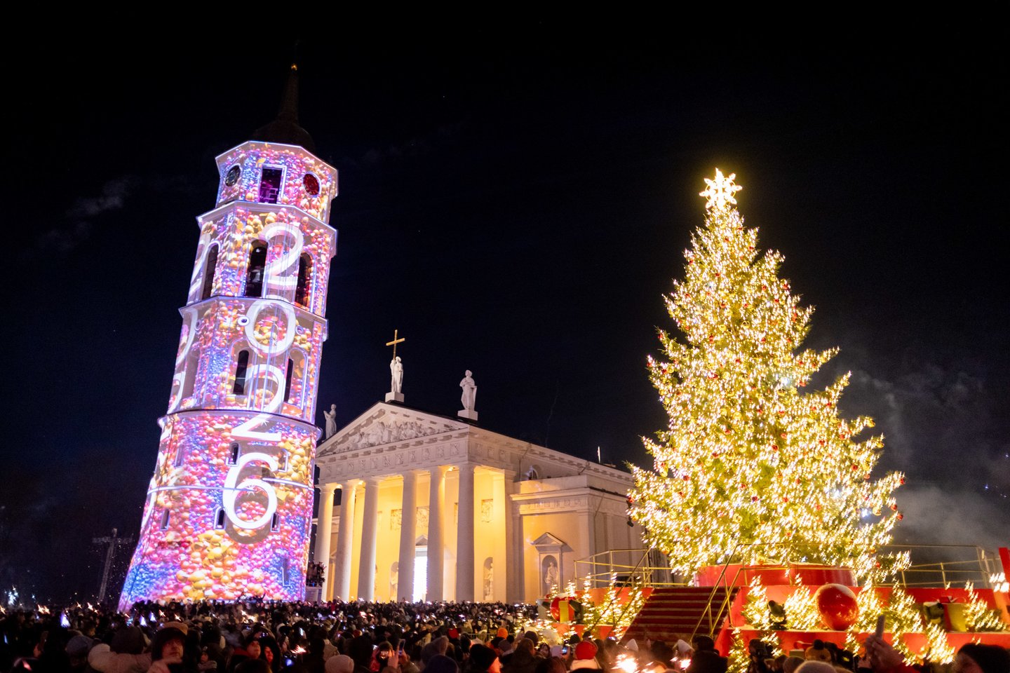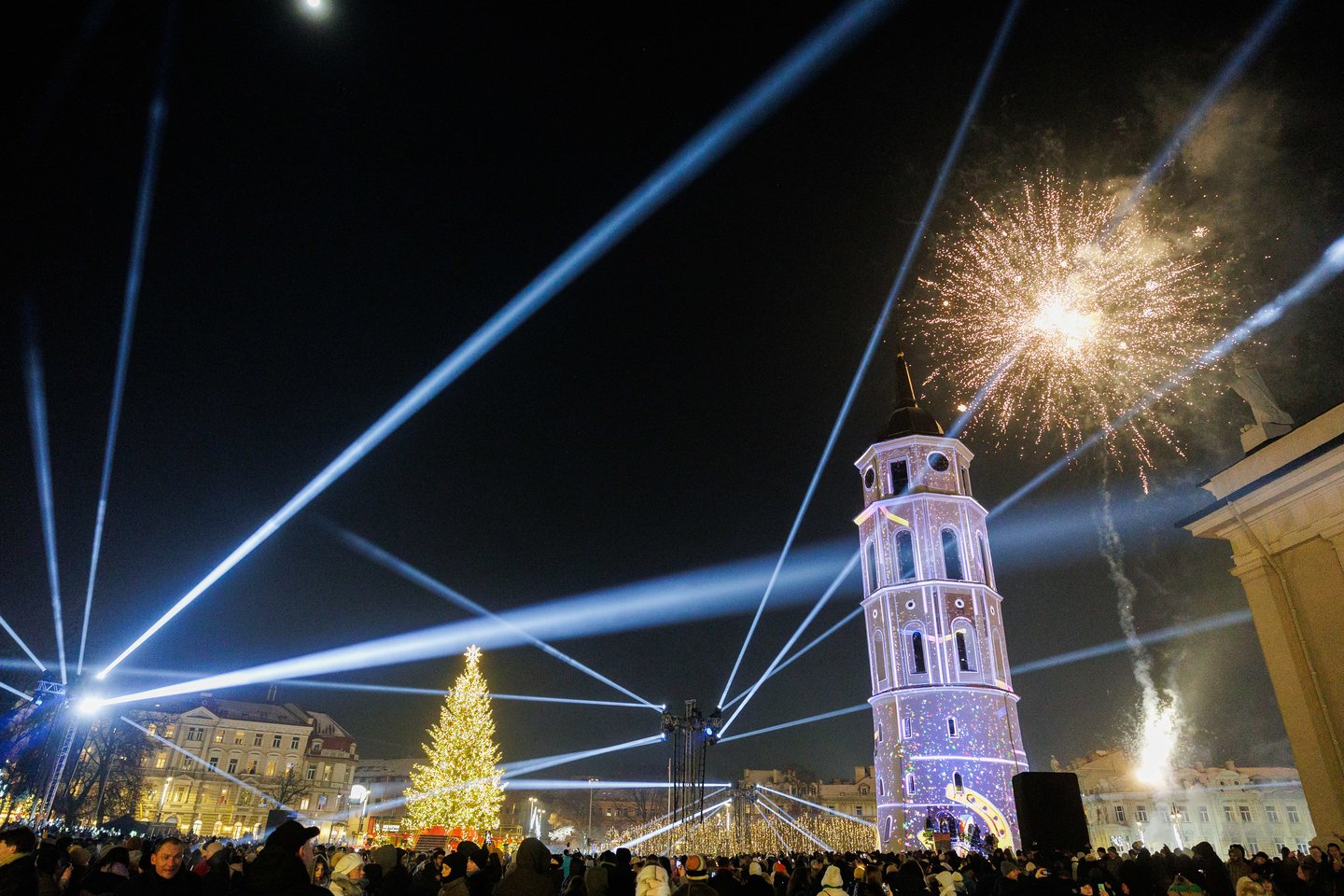 Naujųjų metų naktį sostinės Katedros aikštėje vilniečius ir miesto svečius džiugino spalvinga vaizdo projekcijų instaliacija ir šviesų šou. Ši tradicija jau šeštus metus leidžia miestui fejerverkus pakeisti saugia ir tvaria alternatyva. Šventinius kadrus užfiksavo portalo Lrytas fotografas.