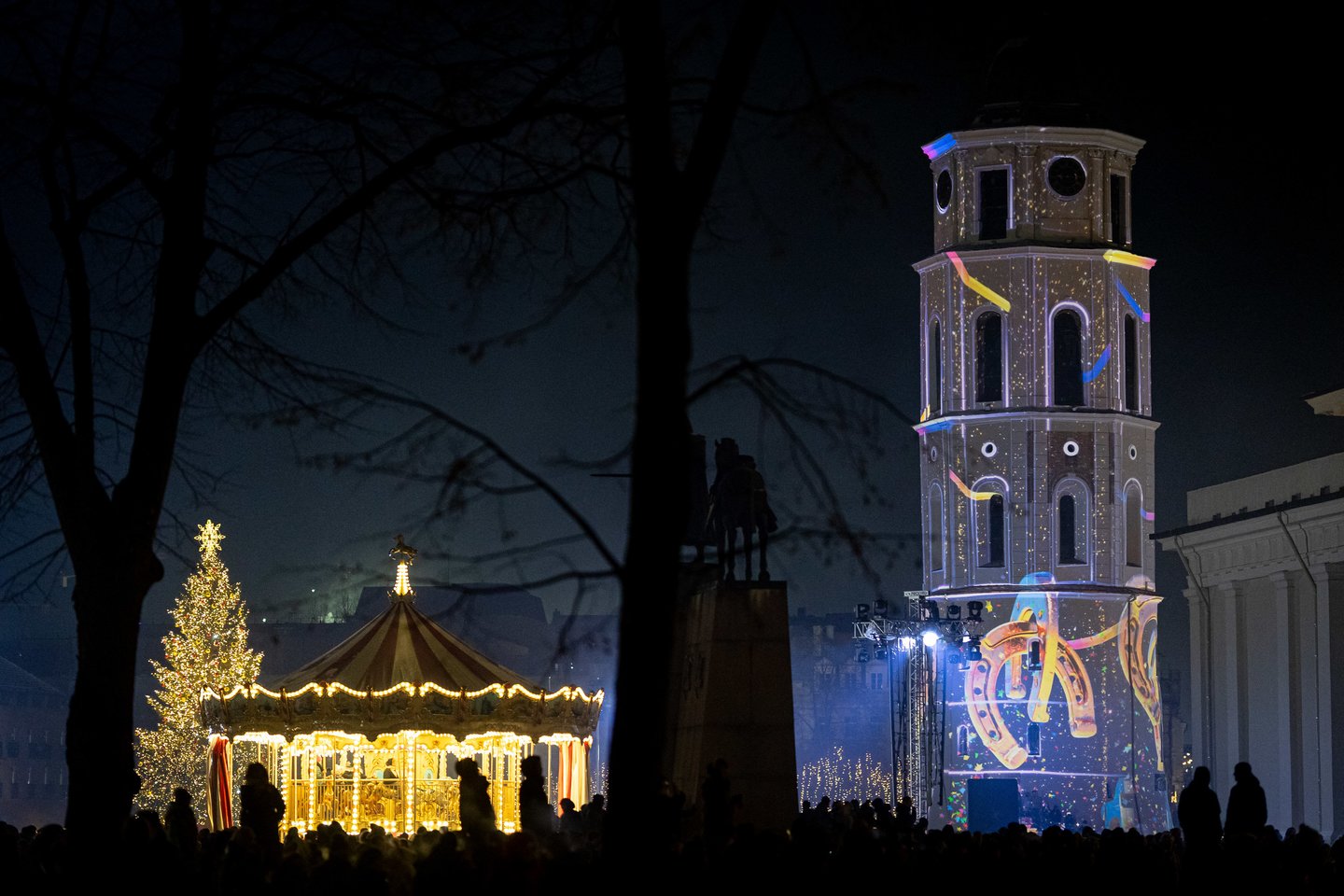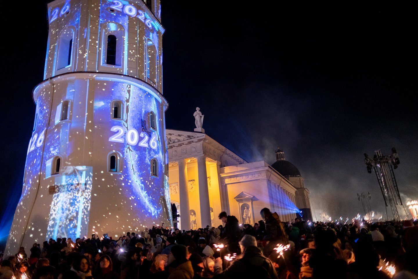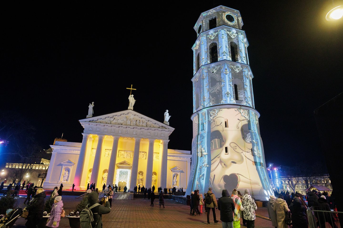 Naujųjų metų naktį sostinės Katedros aikštėje vilniečius ir miesto svečius džiugino spalvinga vaizdo projekcijų instaliacija ir šviesų šou. Ši tradicija jau šeštus metus leidžia miestui fejerverkus pakeisti saugia ir tvaria alternatyva. Šventinius kadrus užfiksavo portalo Lrytas fotografas.