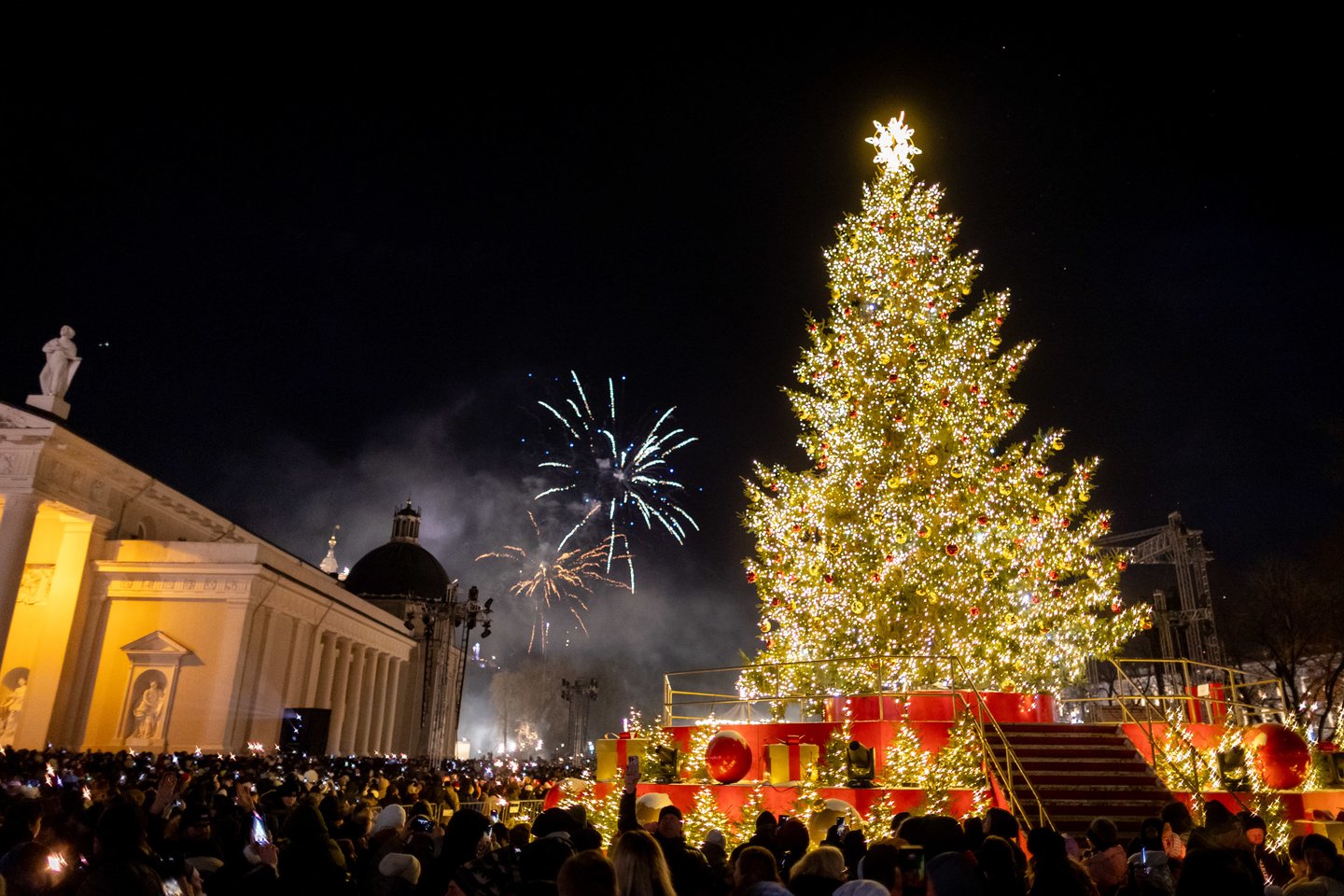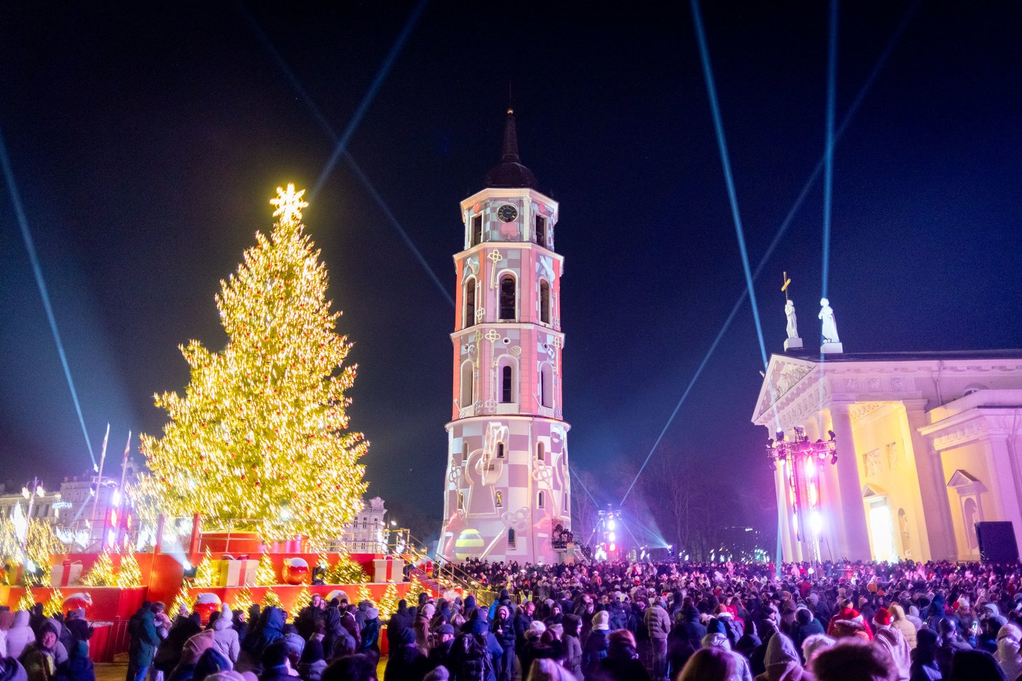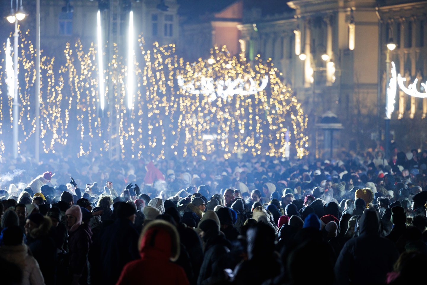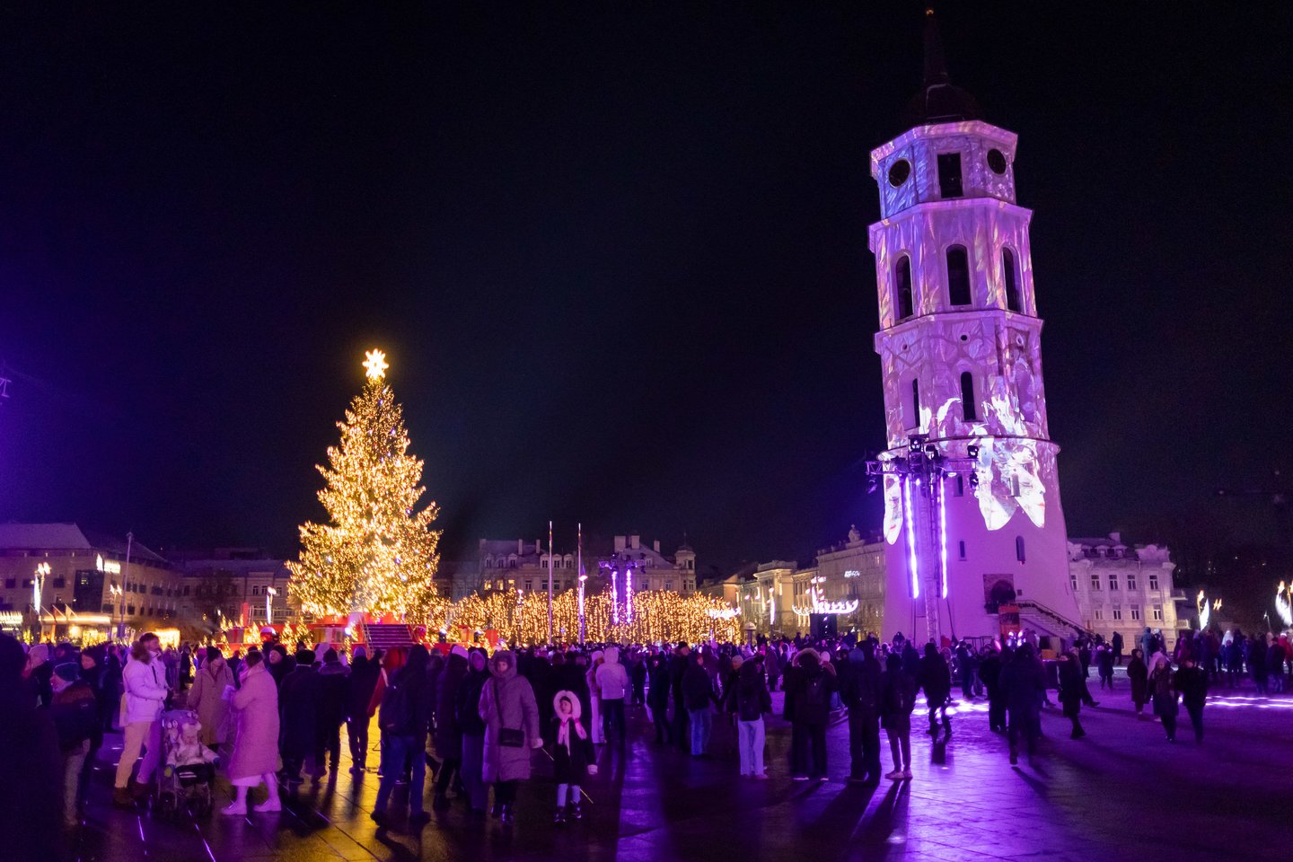 Naujųjų metų naktį sostinės Katedros aikštėje vilniečius ir miesto svečius džiugino spalvinga vaizdo projekcijų instaliacija ir šviesų šou. Ši tradicija jau šeštus metus leidžia miestui fejerverkus pakeisti saugia ir tvaria alternatyva. Šventinius kadrus užfiksavo portalo Lrytas fotografas.