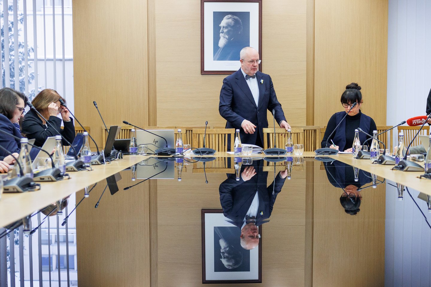 Kiek prieš vidurdienį posėdyje pasirodė ir LRT tarybos atstovai. Tiesa, dar prieš savo pristatymą tarybos pirmininkas Mindaugas Jurkynas prakalbo apie tai, kad kai kurie LRT tarybos nariai pastaruoju metu sulaukė ir rimtų grasinimų.