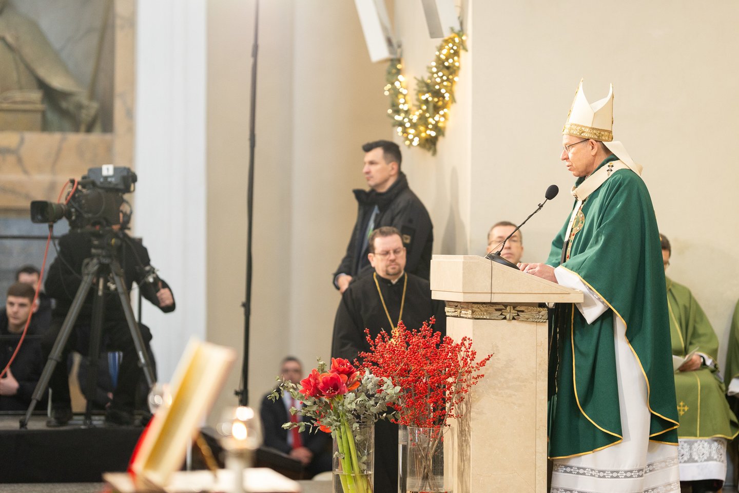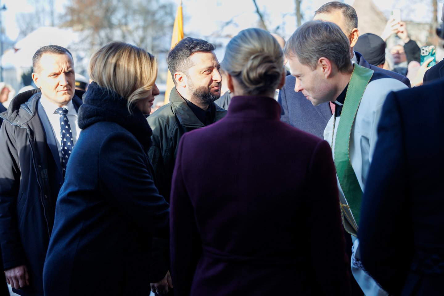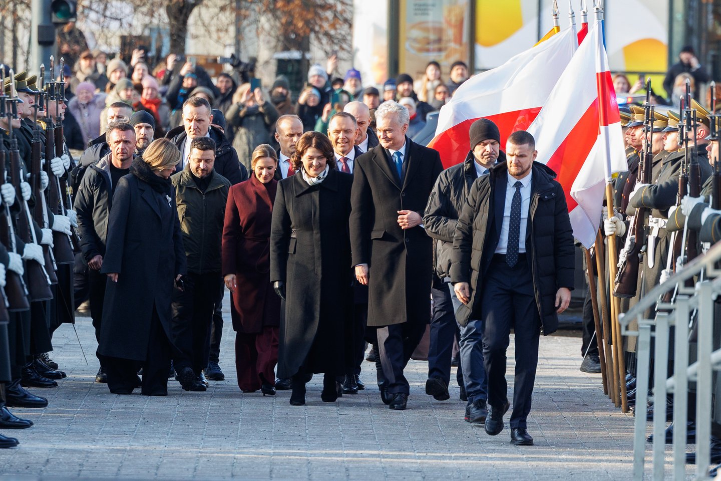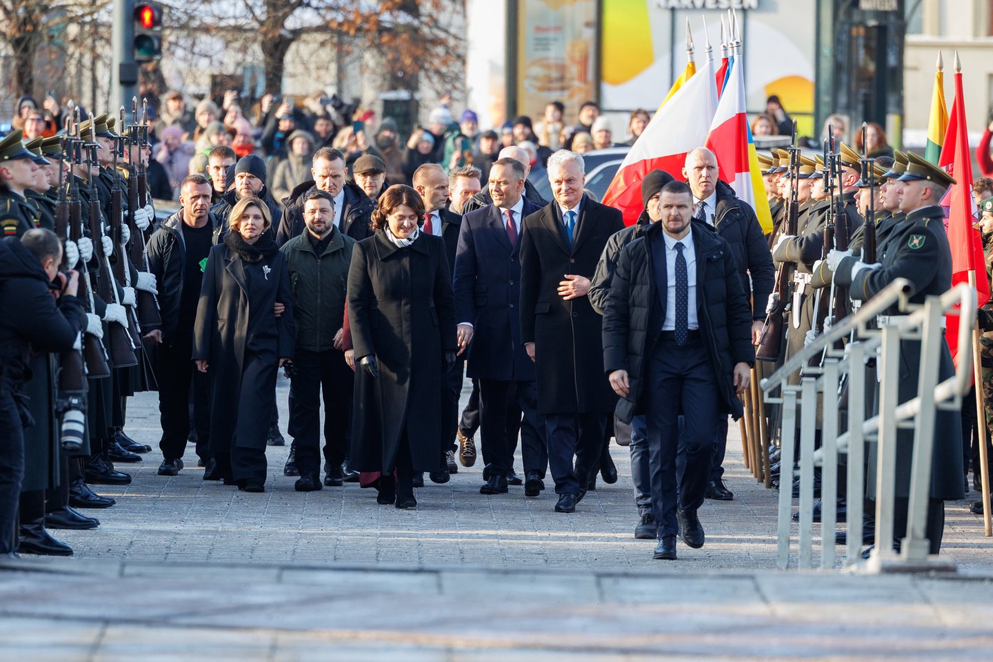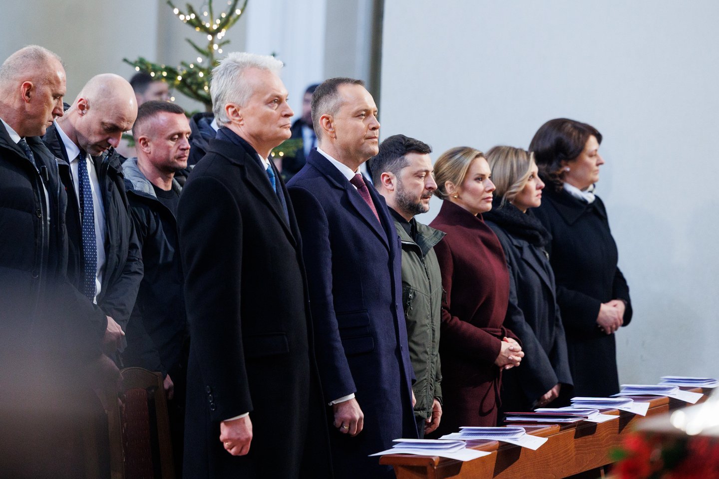 Po šilto Lenkijos prezidento Karolio Nawrockio bei Ukrainos prezidento Volodymyro Zelenskio sutikimo Prezidentūroje valstybių vadovai su pirmosiomis poniomis atvyko į Šv. Mišias Vilniaus arkikatedroje. Mišiose taip pat dalyvauja ir premjerė Inga Ruginienė, Seimo pirmininkas Juozas Olekas, kariuomenės vadas Raimundas Vaikšnoras, profesorius Vytautas Landsbergis, Baltarusijos opozicijos lyderė Sviatlana Cichanouskaja, įvairių šalių ambasadoriai. Neeilinius svečius Vilniuje įamžino fotografas Tomas Bauras ir Ervin Rauluševičius.