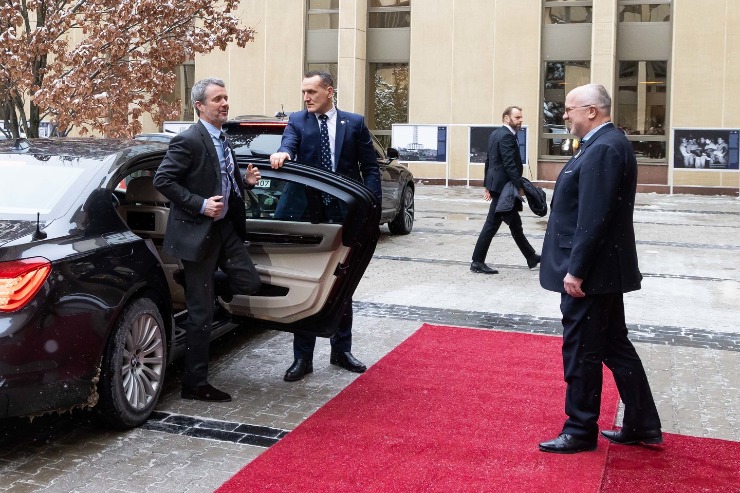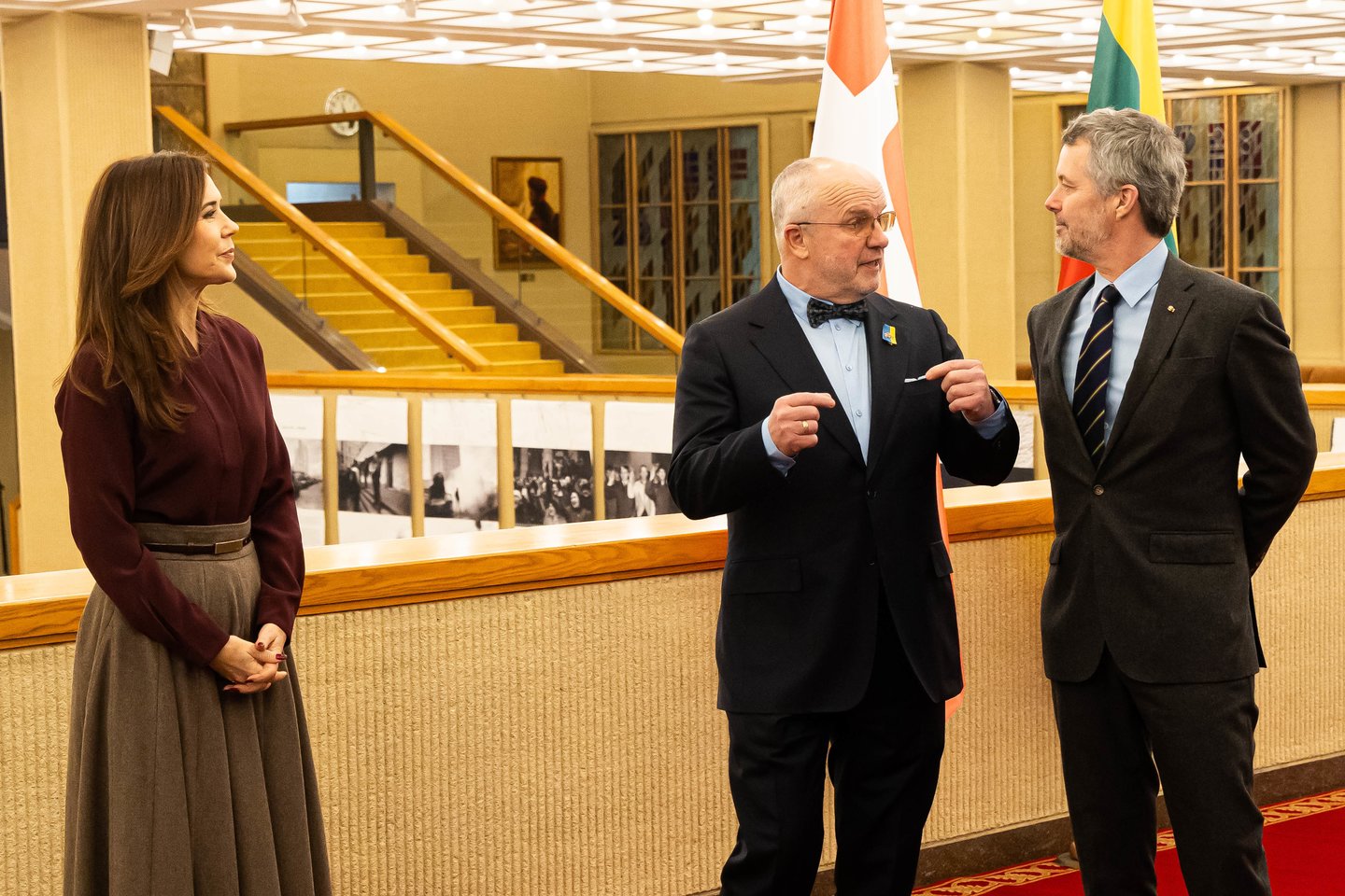 Į Lietuvą valstybinio vizito trečiadienį atvyko Danijos karalius Frederikas X ir karalienė Mary. Po vakar vakare vykusių susitikimų Prezidentūroje, Ukrainos centre šian monarchai susitiko su Seimo pirmininku Juozu Oleku. Akimirkas iš susitikimo užfiksavo ELTA fotografas Andrius Ufartas.