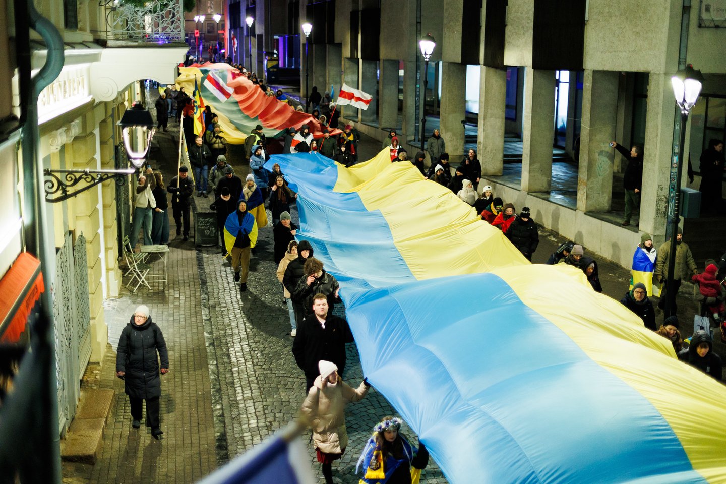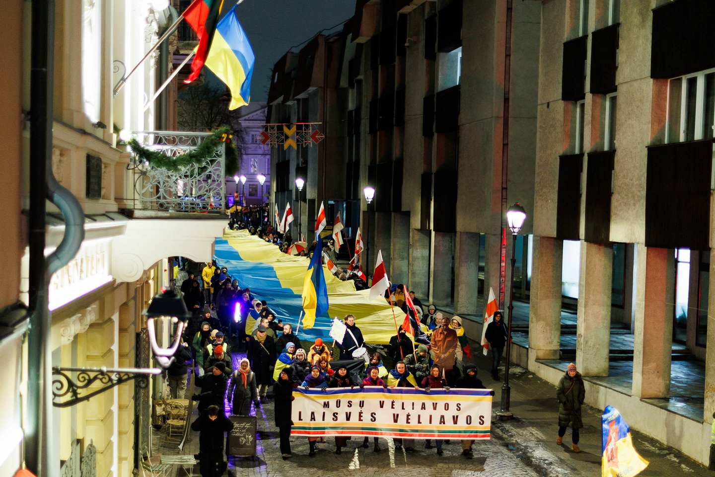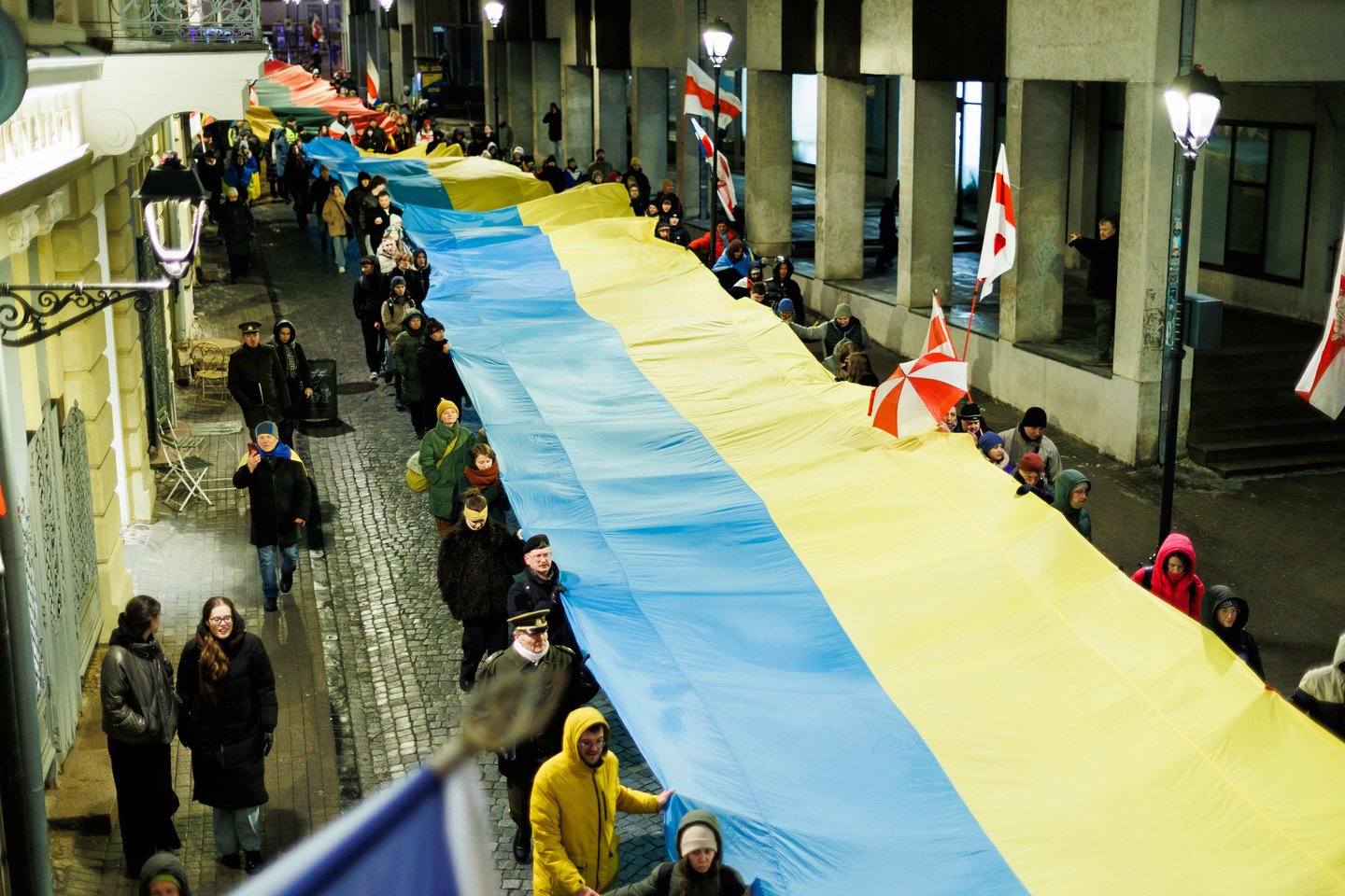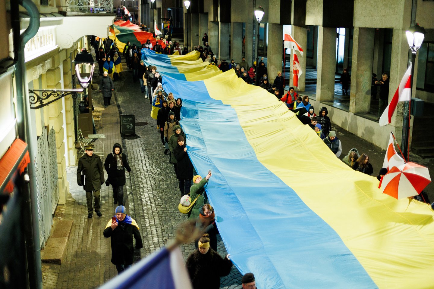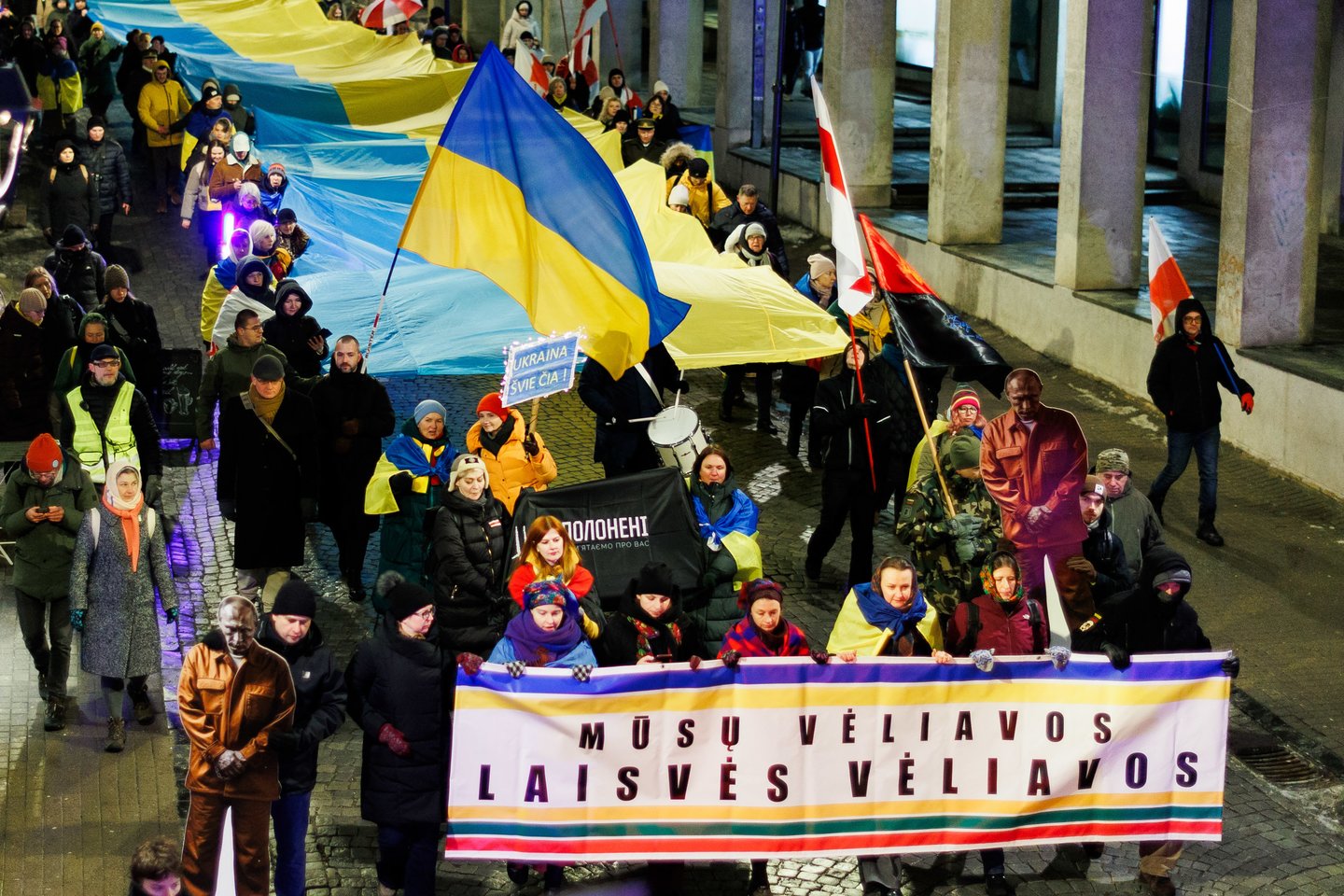 Vasario 24 dieną visuomeninės iniciatyvos „Ukrainos namai“, „Šaulių leičiai“ ir Lietuvos rašytojų sąjungos literatūros fondas jau penktą kartą Vilniuje surengė paramos ir solidarumo su Ukraina eitynes. Pagrindinis šių metų eitynių šūkis: „Mūsų vėliavos – laisvės vėliavos!“. Eitynių akimirkos – Lrytas fotografo Tomo Bauro ir ELTA fotografo Andriaus Ufarto kadruose.