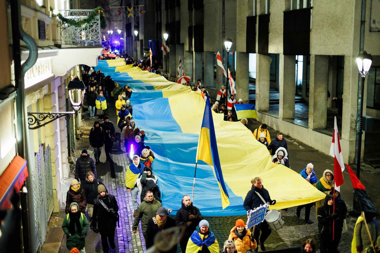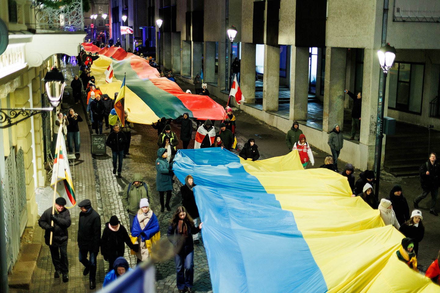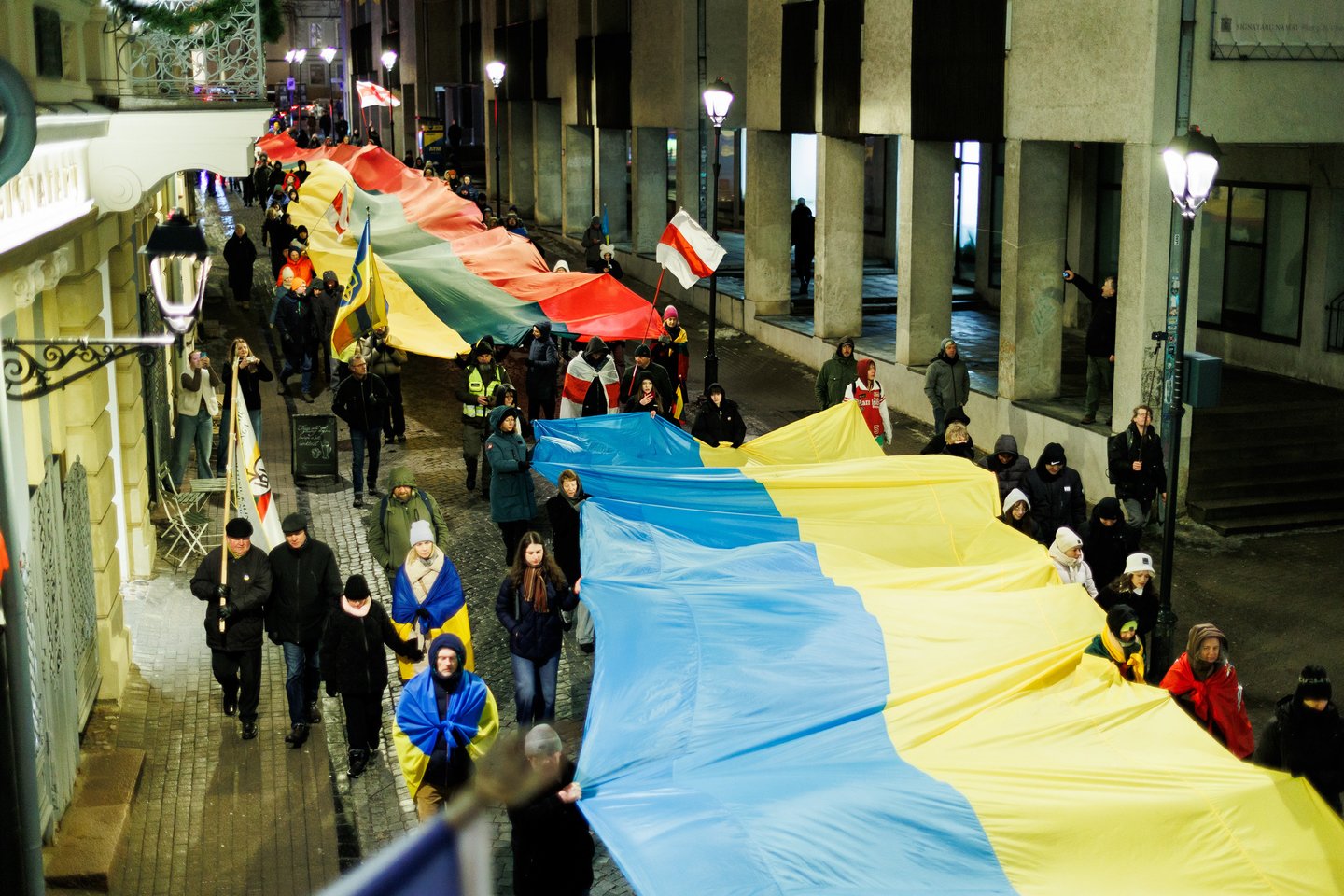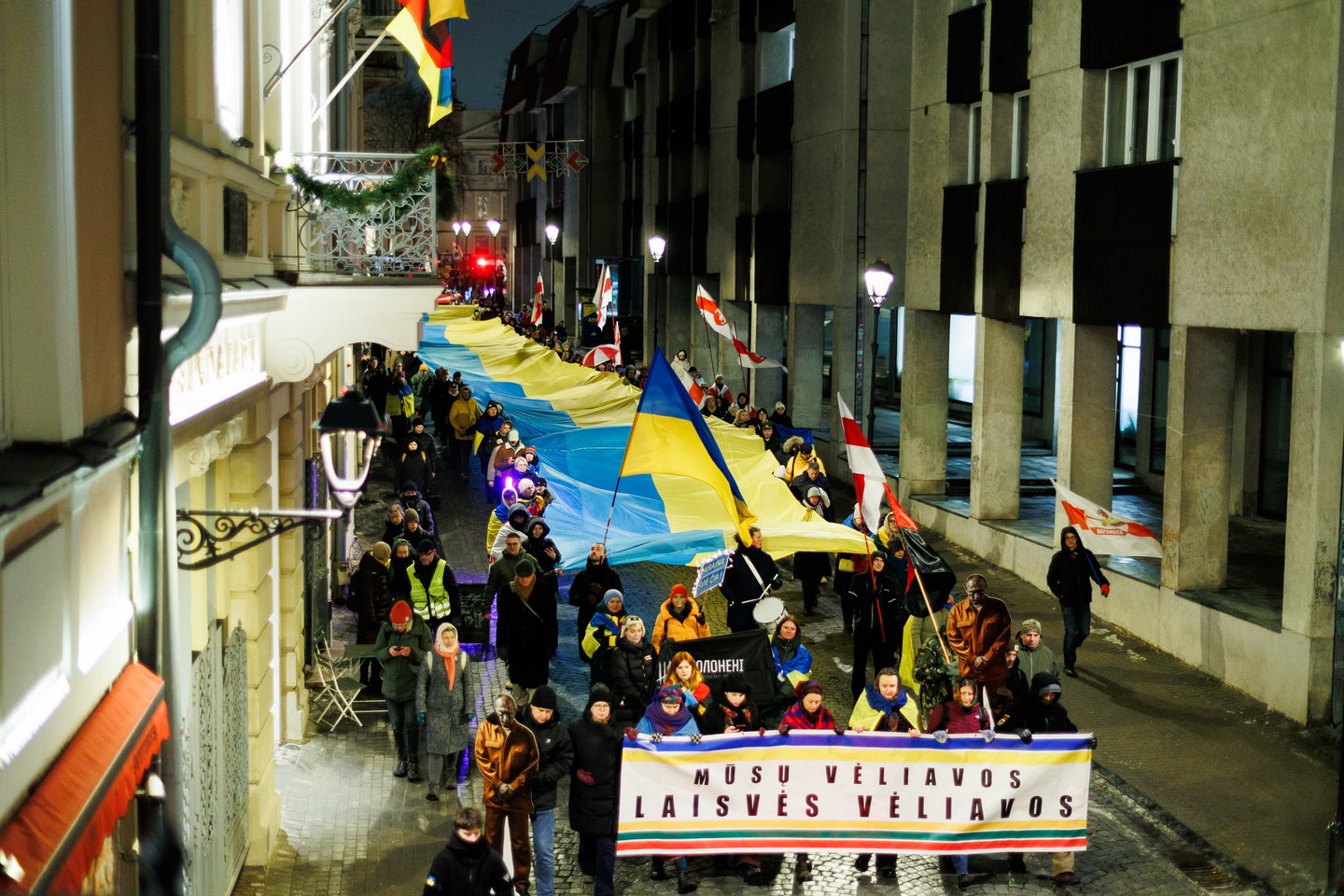 Vasario 24 dieną visuomeninės iniciatyvos „Ukrainos namai“, „Šaulių leičiai“ ir Lietuvos rašytojų sąjungos literatūros fondas jau penktą kartą Vilniuje surengė paramos ir solidarumo su Ukraina eitynes. Pagrindinis šių metų eitynių šūkis: „Mūsų vėliavos – laisvės vėliavos!“. Eitynių akimirkos – Lrytas fotografo Tomo Bauro ir ELTA fotografo Andriaus Ufarto kadruose.