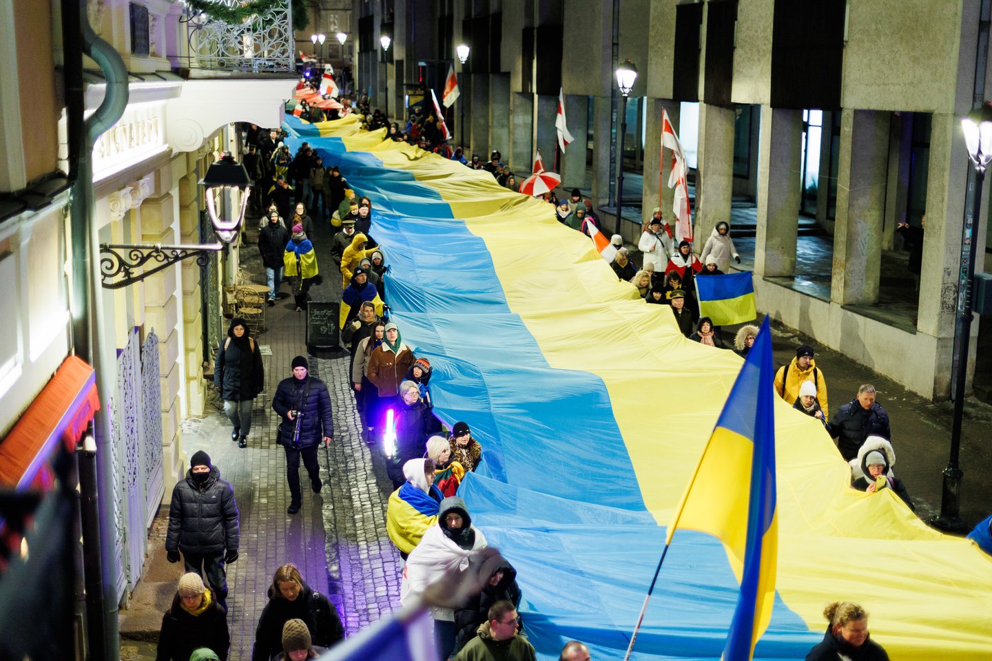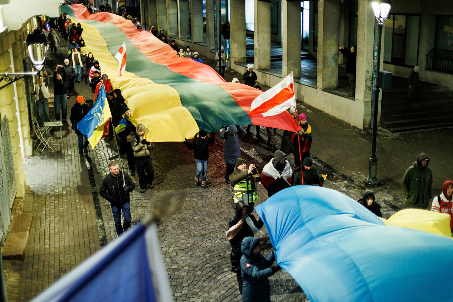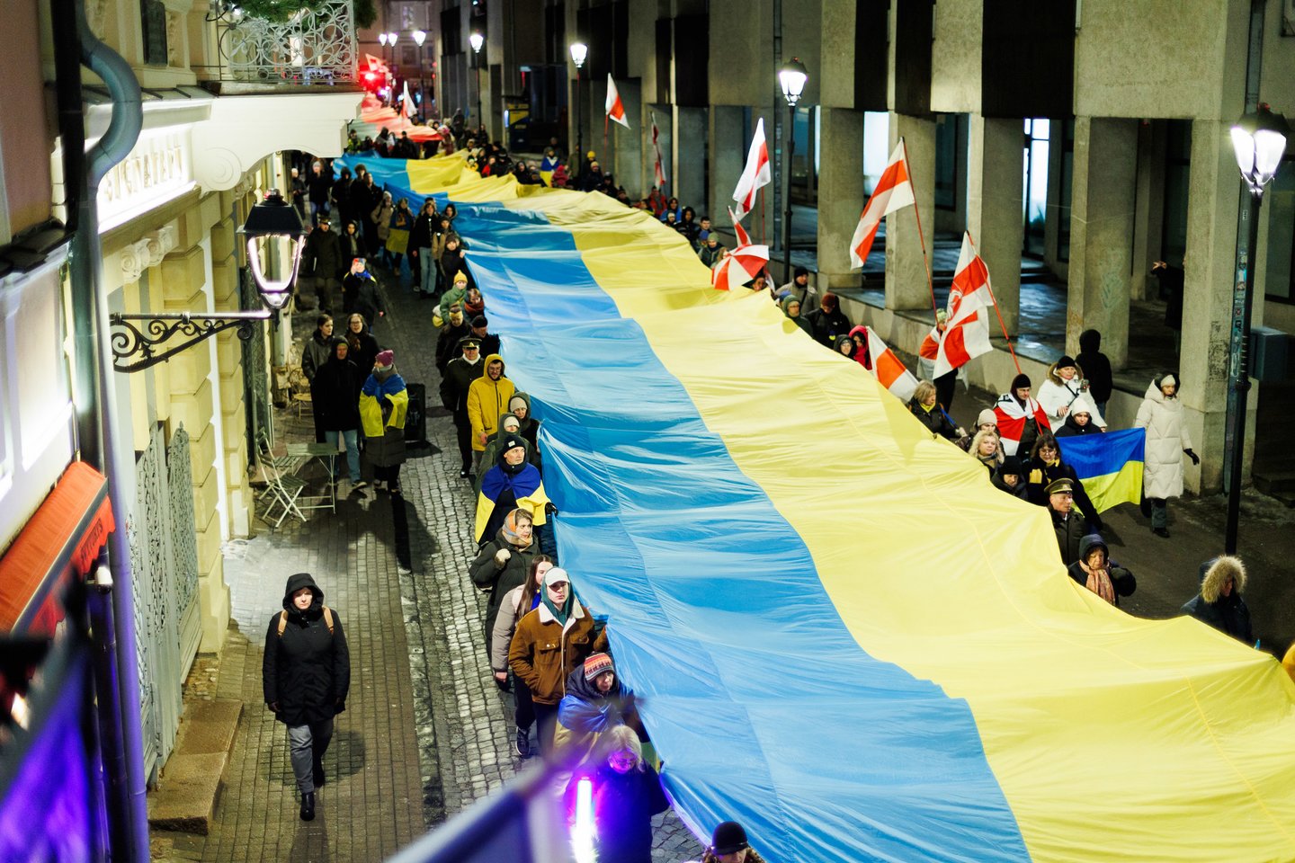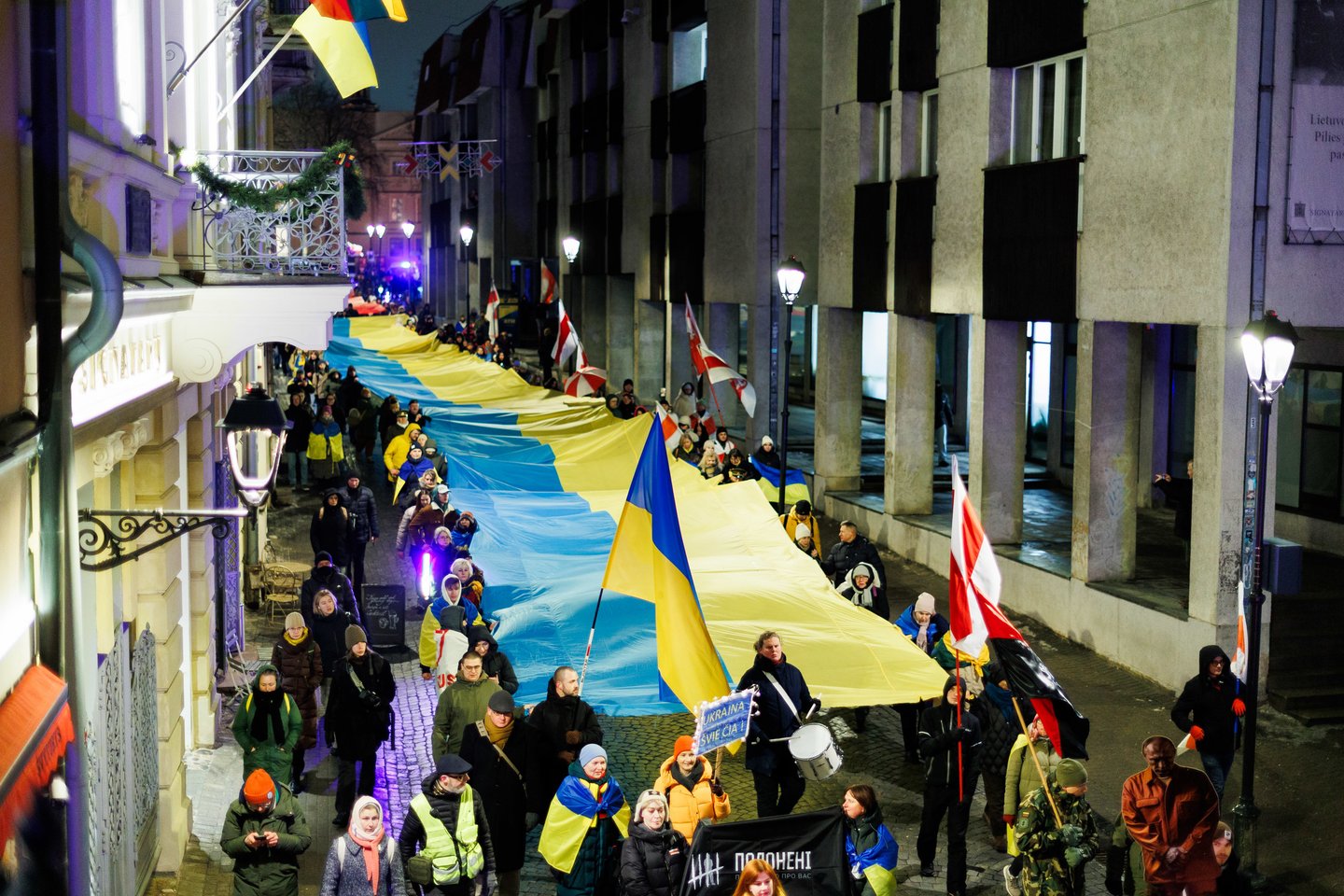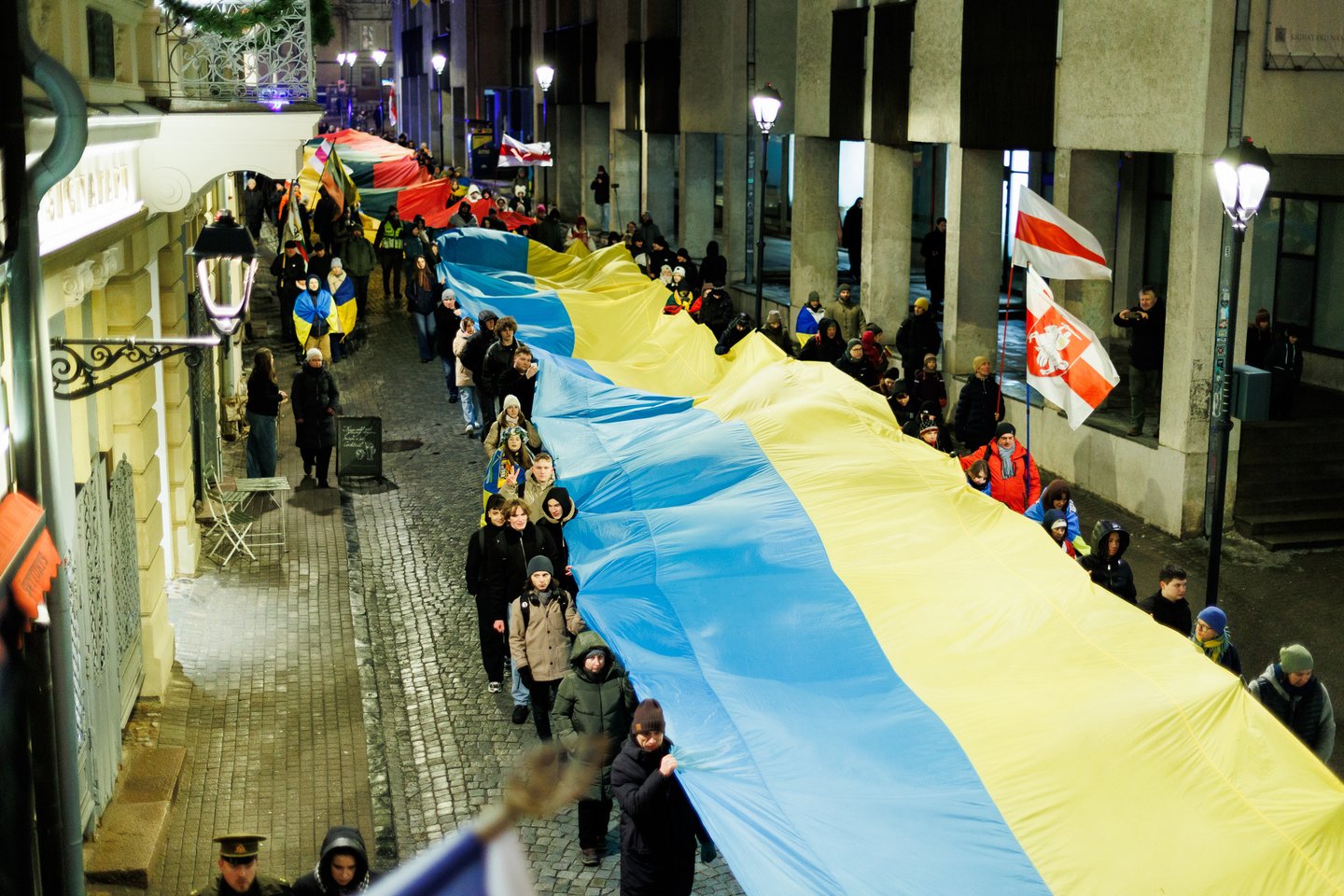 Vasario 24 dieną visuomeninės iniciatyvos „Ukrainos namai“, „Šaulių leičiai“ ir Lietuvos rašytojų sąjungos literatūros fondas jau penktą kartą Vilniuje surengė paramos ir solidarumo su Ukraina eitynes. Pagrindinis šių metų eitynių šūkis: „Mūsų vėliavos – laisvės vėliavos!“. Eitynių akimirkos – Lrytas fotografo Tomo Bauro ir ELTA fotografo Andriaus Ufarto kadruose.