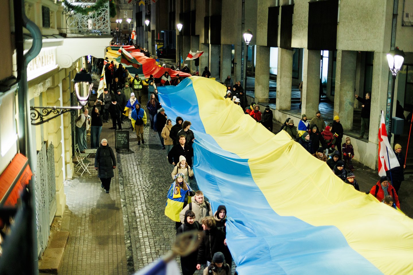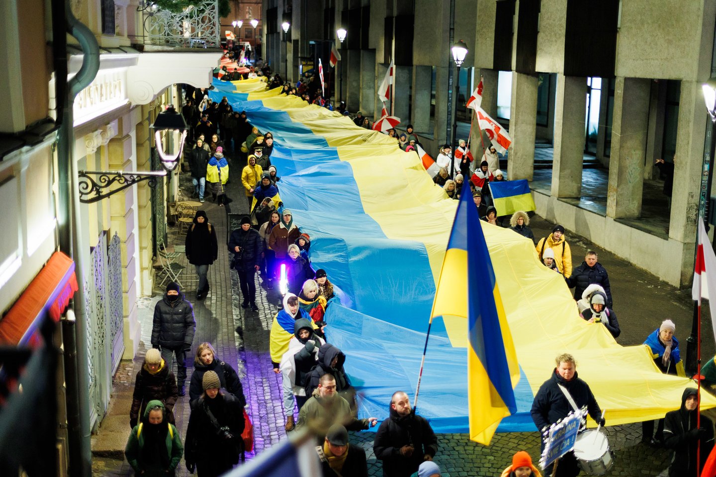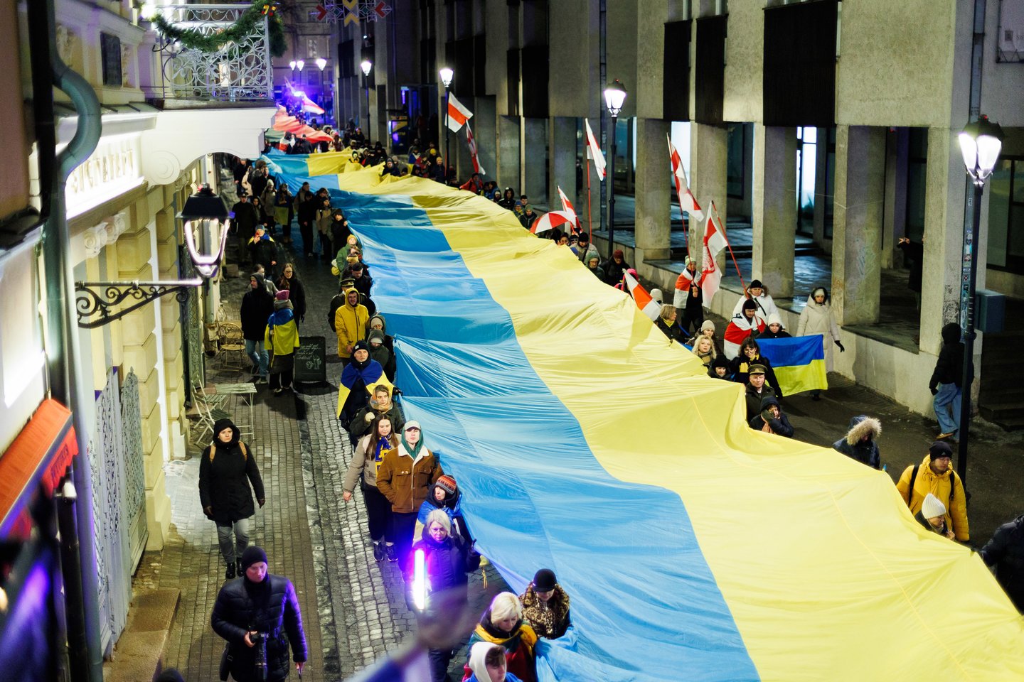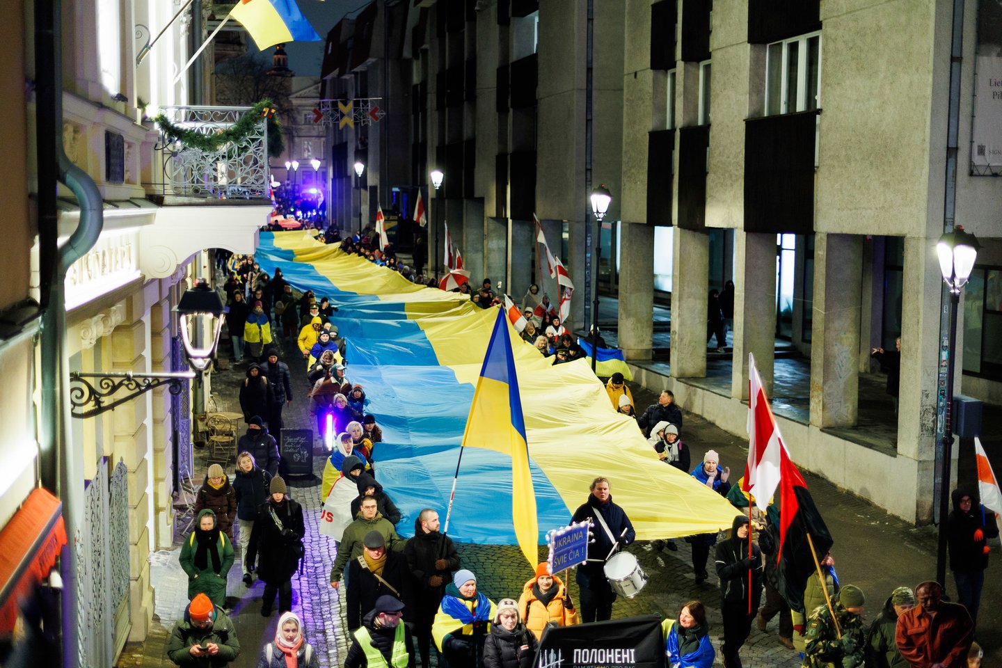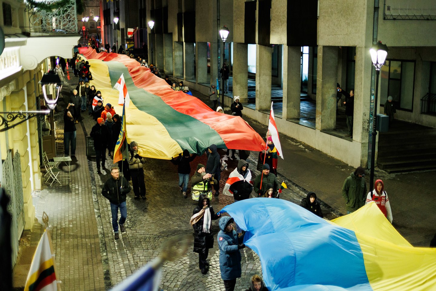 Vasario 24 dieną visuomeninės iniciatyvos „Ukrainos namai“, „Šaulių leičiai“ ir Lietuvos rašytojų sąjungos literatūros fondas jau penktą kartą Vilniuje surengė paramos ir solidarumo su Ukraina eitynes. Pagrindinis šių metų eitynių šūkis: „Mūsų vėliavos – laisvės vėliavos!“. Eitynių akimirkos – Lrytas fotografo Tomo Bauro ir ELTA fotografo Andriaus Ufarto kadruose.