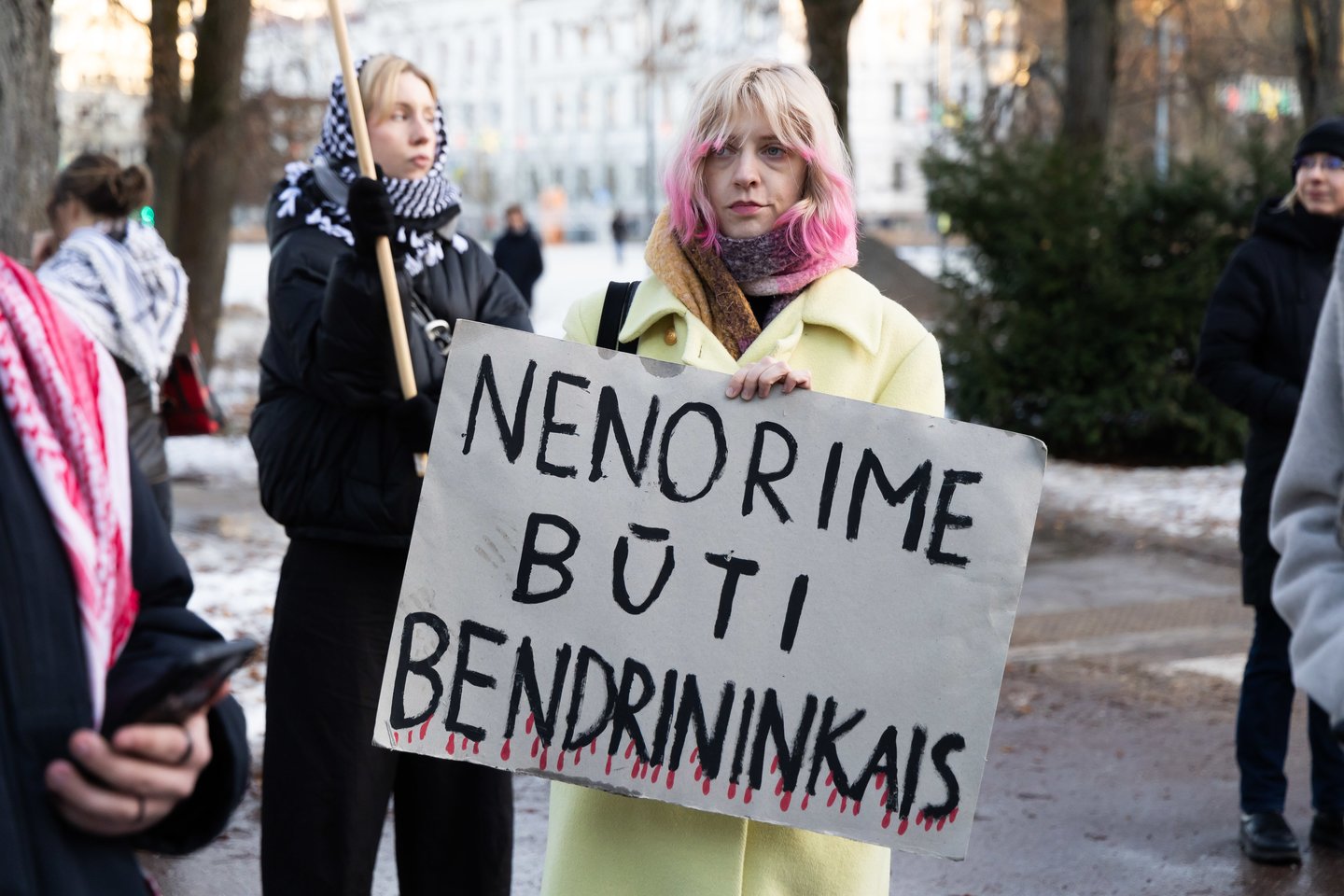 Trečiadienio vakarą Vilniuje, prie Užsienio reikalų ministerijos, įvyko protestas prieš JAV ir Izraelio veiksmus Artimuosiuose Rytuose bei Lietuvos poziciją šių veiksmų atžvilgiu. „Jungtinės Amerikos Valstijos ir Izraelis 2026 m. vasario 28 d. pakartotinai surengė brutalias atakas prieš Iraną, sulaukdami Lietuvos užsienio reikalų ministerijos palaikymo bei premjerės I. Ruginienės pasisakymų, remiančių šiuos karinius veiksmus. Toks tarptautinės teisės pažeidimų skatinimas neatspindi Lietuvos žmonių įsitikinimų ir jokiu būdu neprisideda prie taikos užtikrinimo Artimuosiuose Rytuose“, – rašė protesto organizatoriai.
