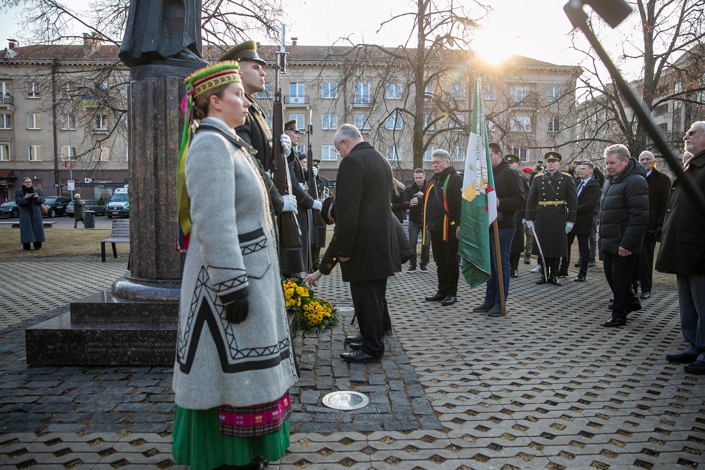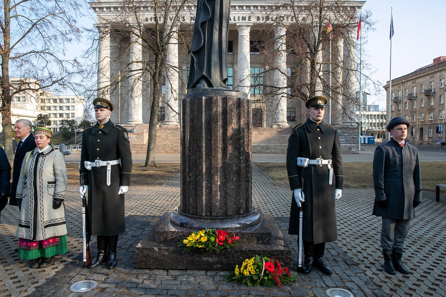 Nepriklausomybės aikštėje Vilniuje vyks gėlių padėjimo ceremonija prie Kovo 11-ajai skirto paminklo „Žinia“. Minint Lietuvos Nepriklausomybės atkūrimo dieną, gėles prie paminklo padės Lietuvos kariuomenės Garbės sargybos kuopos kariai. Ceremonija skirta pagerbti laisvės kovas ir visus prisidėjusius prie nepriklausomos Lietuvos atkūrimo. Nuotraukos – ELTA fotografo O. Gurevičiaus galerijoje.