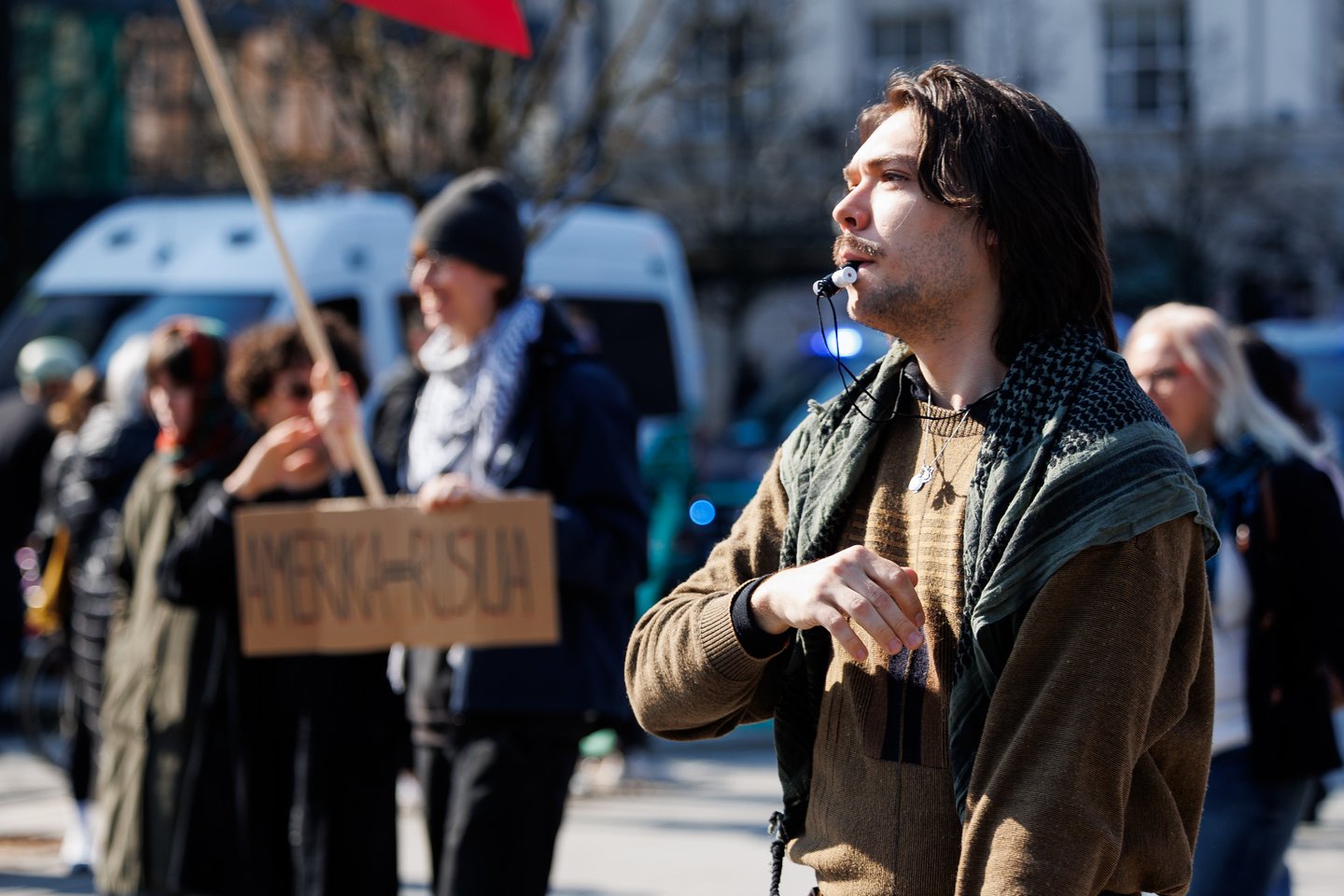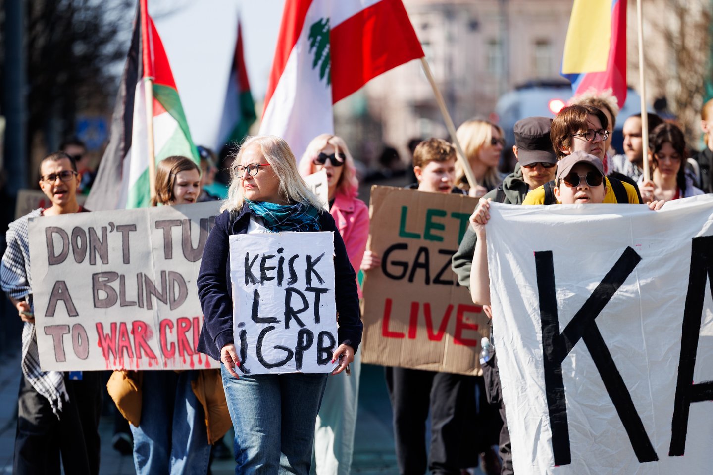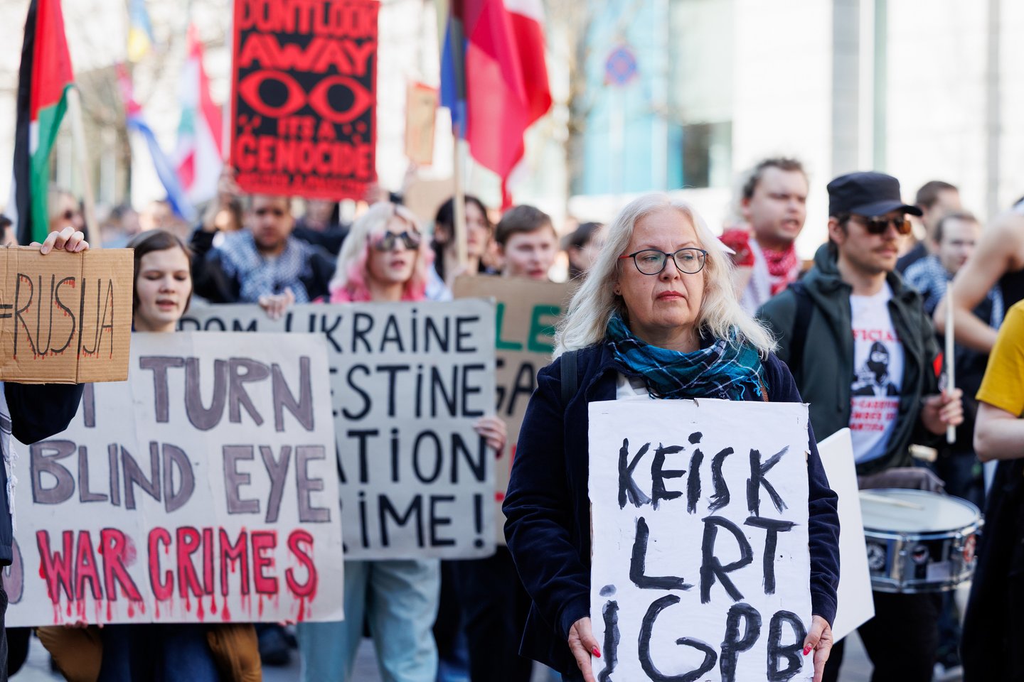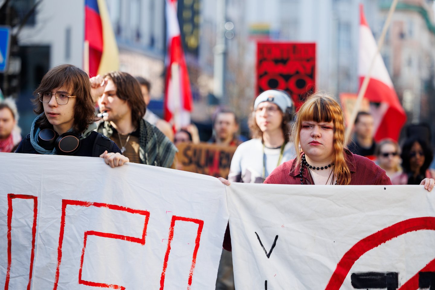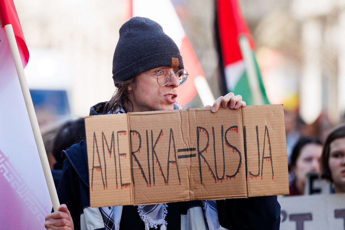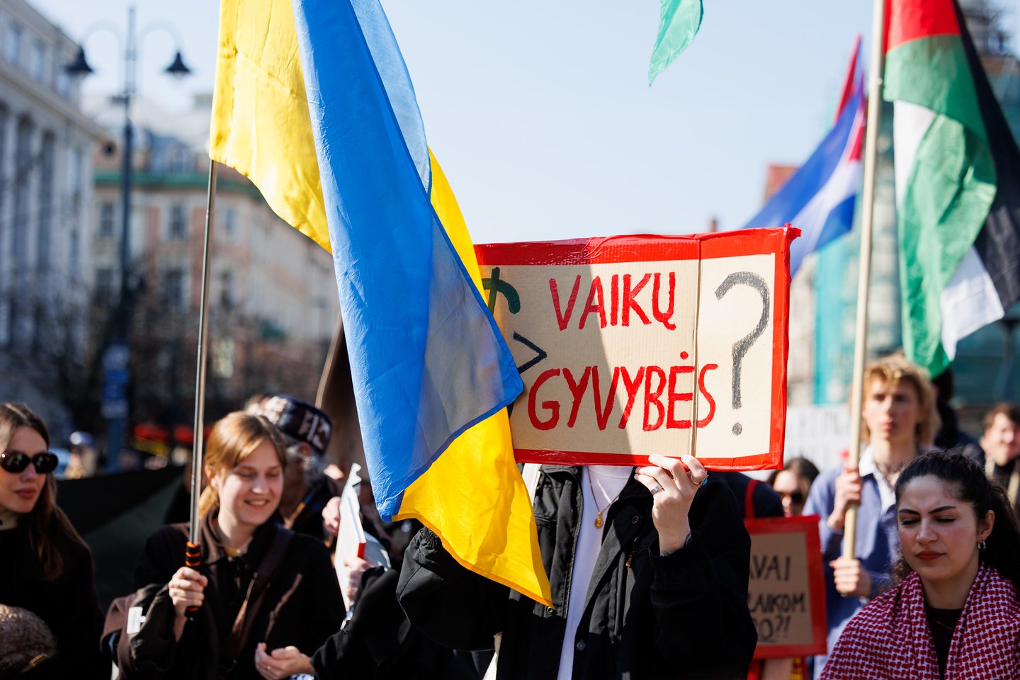 Po vidurdienio šeštadienį Vilniuje prasidėjo protestas – eitynės prieš Lietuvos bendradarbiavimą Izraelio ir JAV karuose. Protesto šūkis – „Karui – NE!“. Protesto dalyviai prieš 13 valandą pradėjo rinktis Vinco Kudirkos aikštėje Vilniuje, nuo kur eisena pajudės link Rotušės aikštės. Protesto akimirkas užfiksavo portalo Lrytas fotografas Tomas Bauras.