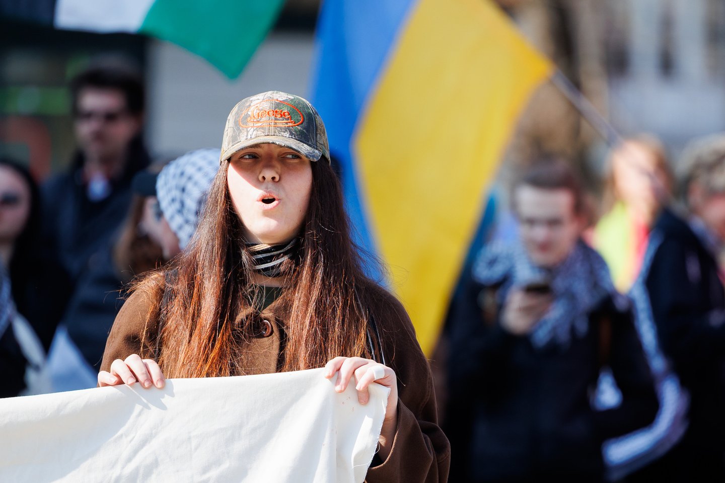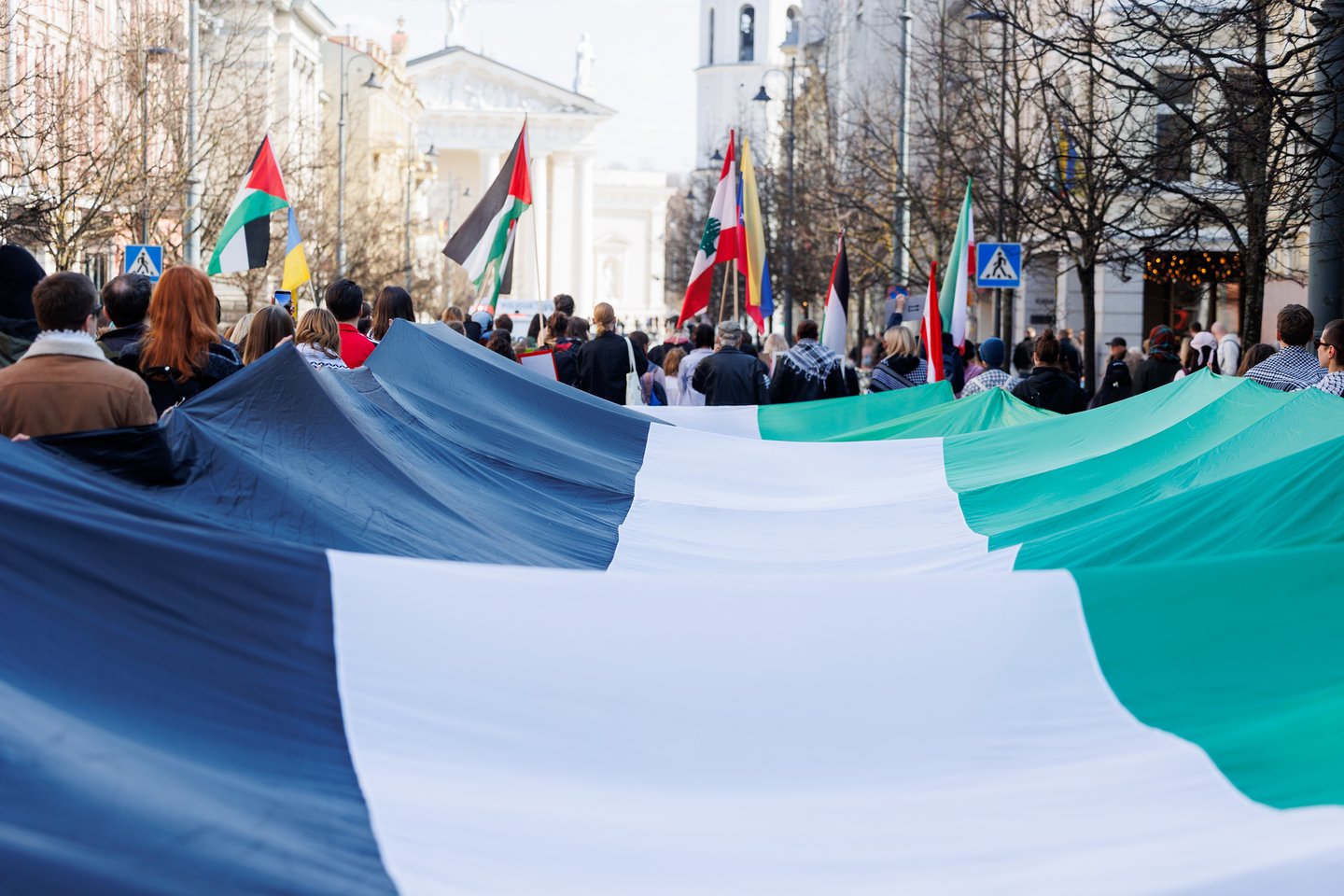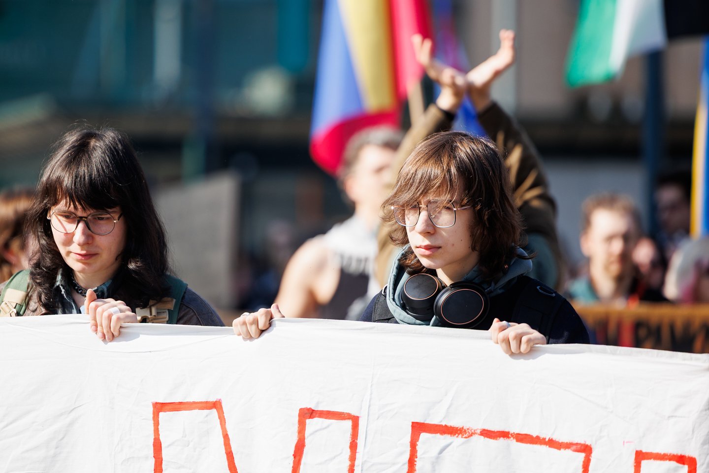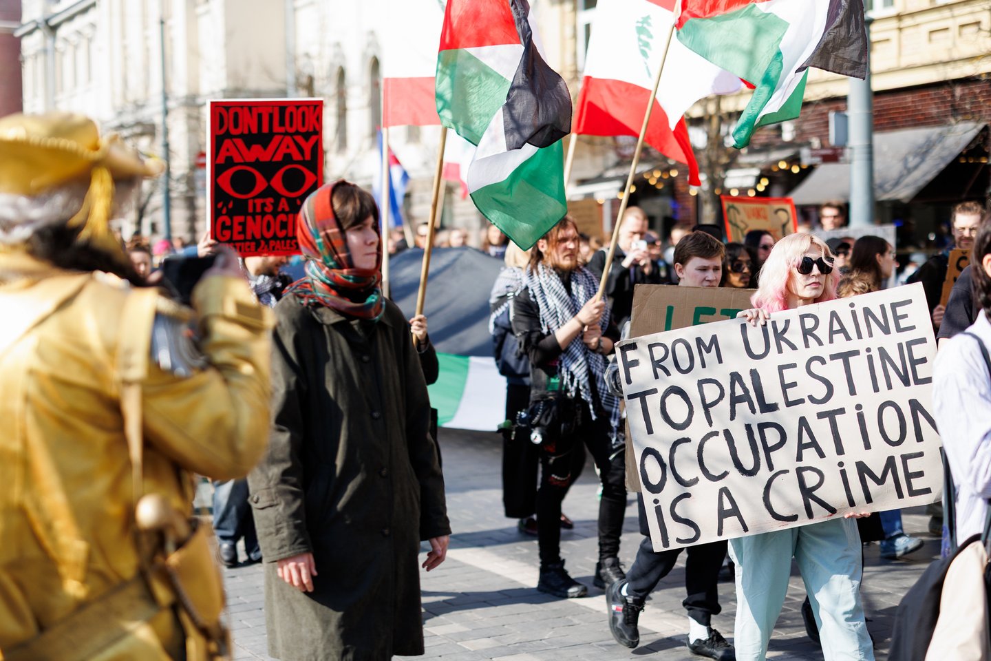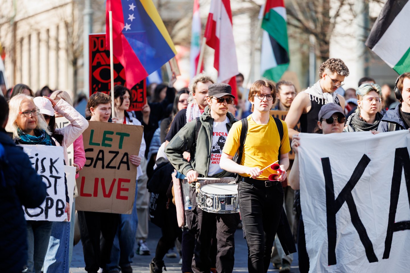 Po vidurdienio šeštadienį Vilniuje prasidėjo protestas – eitynės prieš Lietuvos bendradarbiavimą Izraelio ir JAV karuose. Protesto šūkis – „Karui – NE!“. Protesto dalyviai prieš 13 valandą pradėjo rinktis Vinco Kudirkos aikštėje Vilniuje, nuo kur eisena pajudės link Rotušės aikštės. Protesto akimirkas užfiksavo portalo Lrytas fotografas Tomas Bauras.