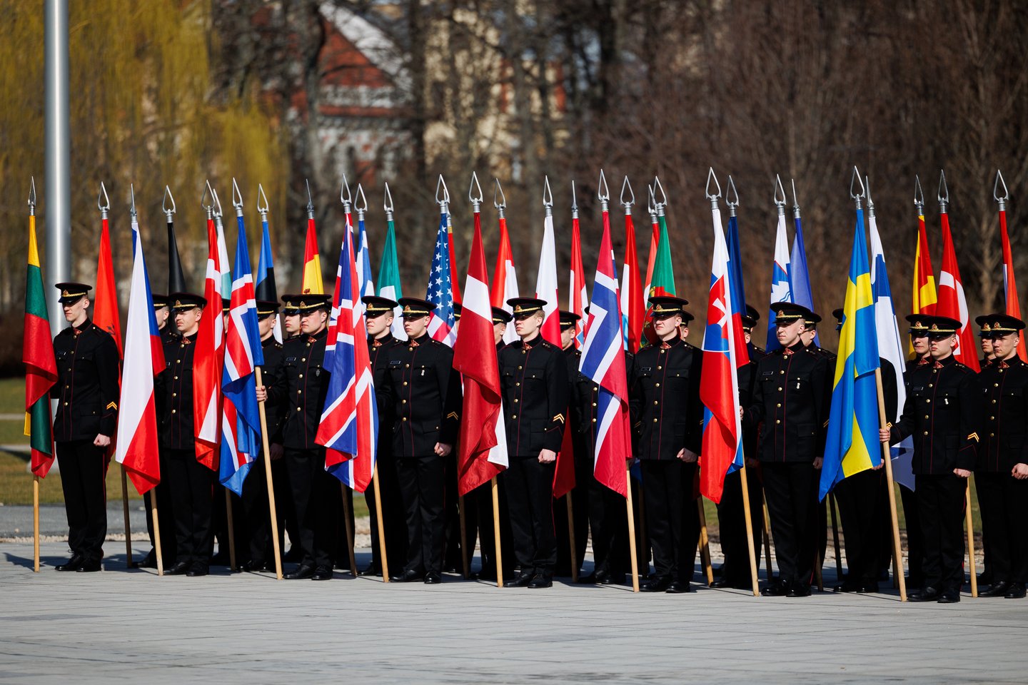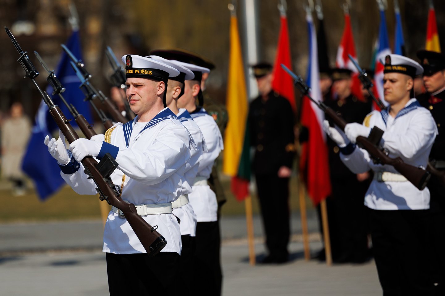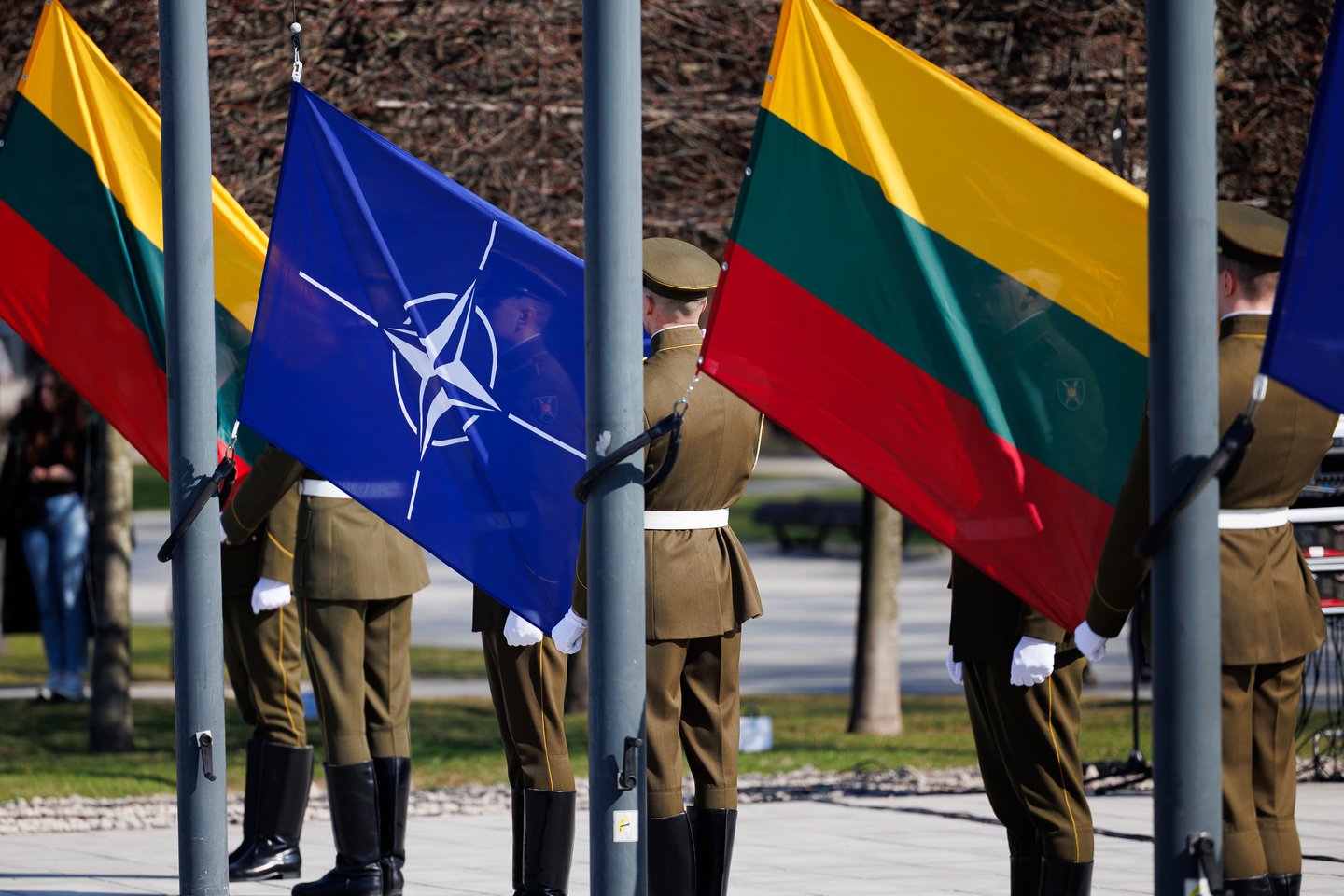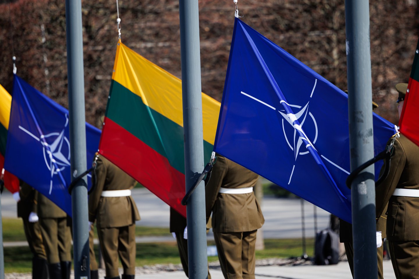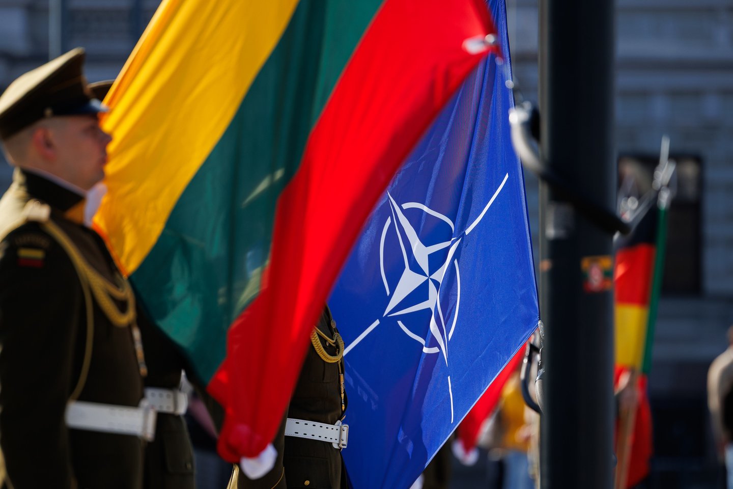 Vilniuje sekmadienį žmonės šurmuliavo ne tik dėl Verbų sekmadienio. Miesto svečiai bei vilniečiai rinkosi į Lukiškių aikštę stebėti Lietuvos ir NATO vėliavų pakėlimo ceremonijos. Joje dalyvavo ir Lietuvos kariuomenės Garbės sargybos kuopa, Lietuvos karo akademijos kariūnų būrys su NATO valstybių vėliavomis, Lietuvos kariuomenės orkestras, Generolo Jono Žemaičio Lietuvos karo akademijos kariūnų chorai „Kariūnas“ ir „Carmina Bellum“, mūsų sąjungininkų, dislokuotų Lietuvoje, vėliavų grupių rikiuotė. Ceremonija skirta Lietuvos narystės NATO ir 77-ajam NATO gimtadieniui paminėti.