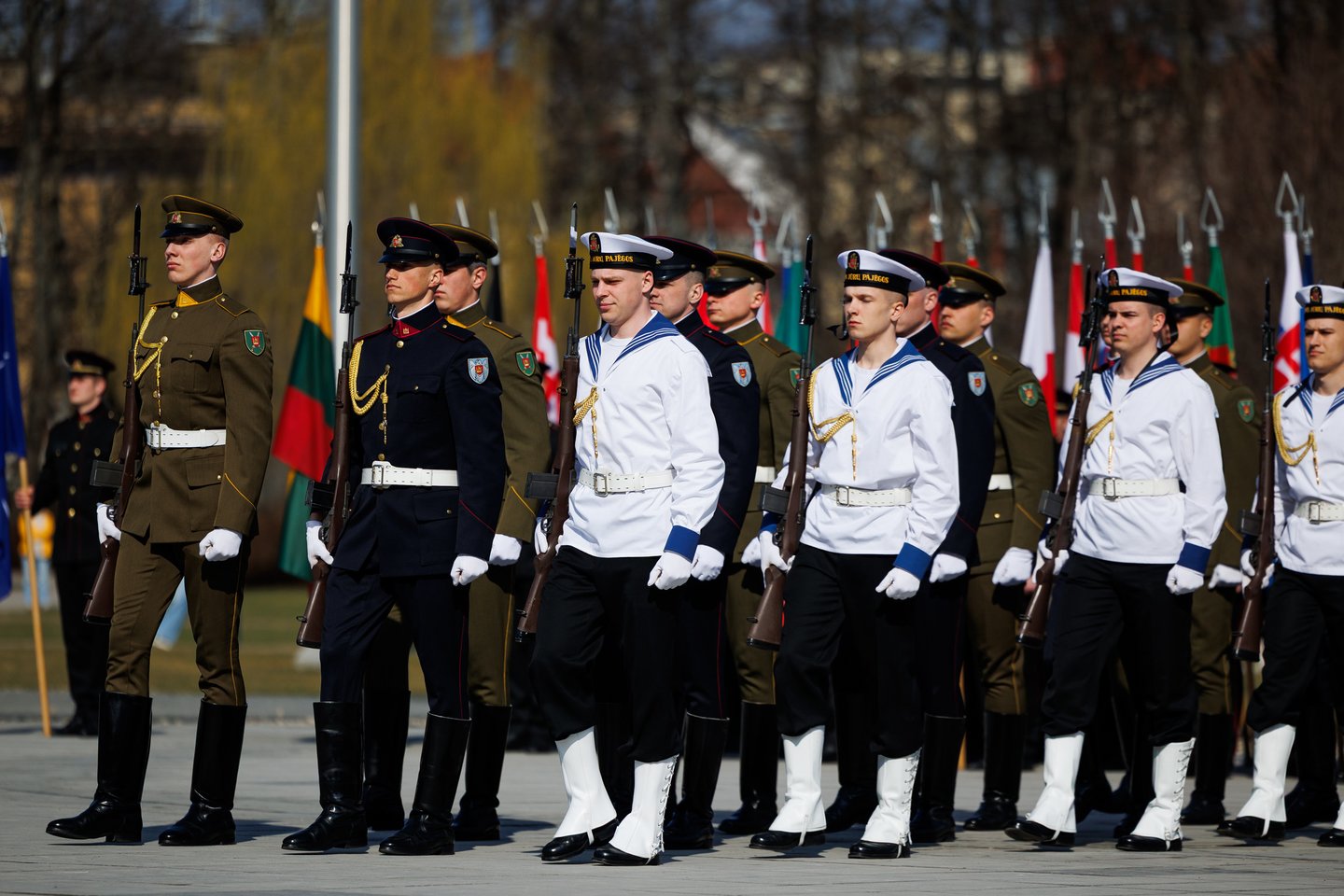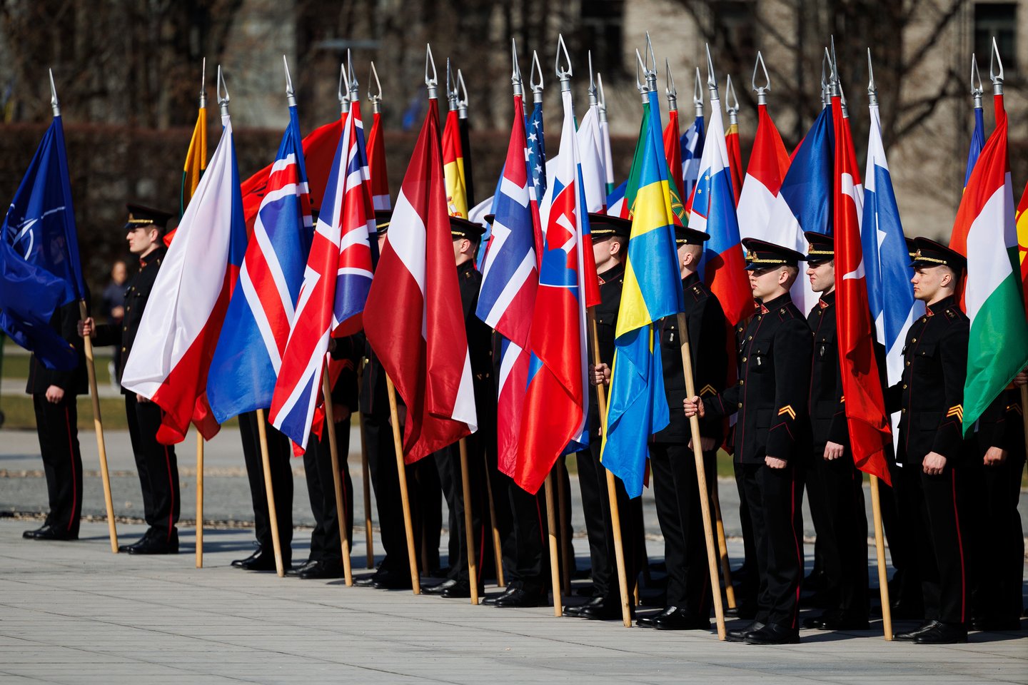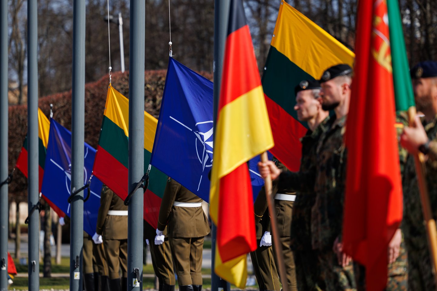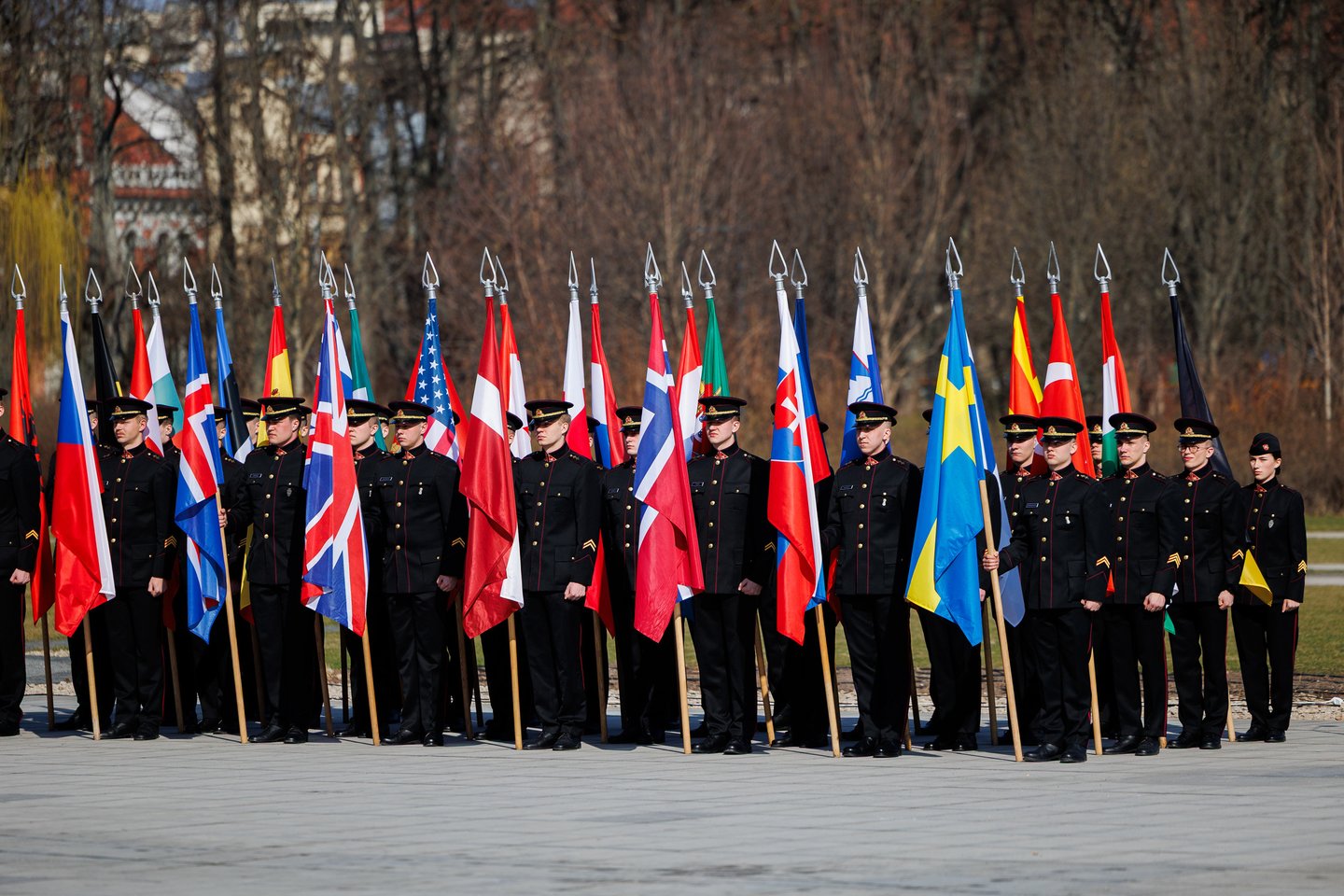 Vilniuje sekmadienį žmonės šurmuliavo ne tik dėl Verbų sekmadienio. Miesto svečiai bei vilniečiai rinkosi į Lukiškių aikštę stebėti Lietuvos ir NATO vėliavų pakėlimo ceremonijos. Joje dalyvavo ir Lietuvos kariuomenės Garbės sargybos kuopa, Lietuvos karo akademijos kariūnų būrys su NATO valstybių vėliavomis, Lietuvos kariuomenės orkestras, Generolo Jono Žemaičio Lietuvos karo akademijos kariūnų chorai „Kariūnas“ ir „Carmina Bellum“, mūsų sąjungininkų, dislokuotų Lietuvoje, vėliavų grupių rikiuotė. Ceremonija skirta Lietuvos narystės NATO ir 77-ajam NATO gimtadieniui paminėti.