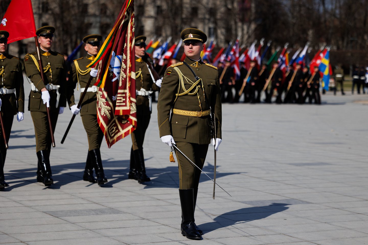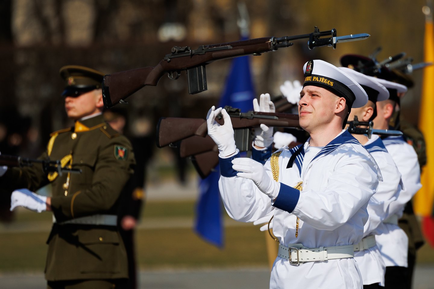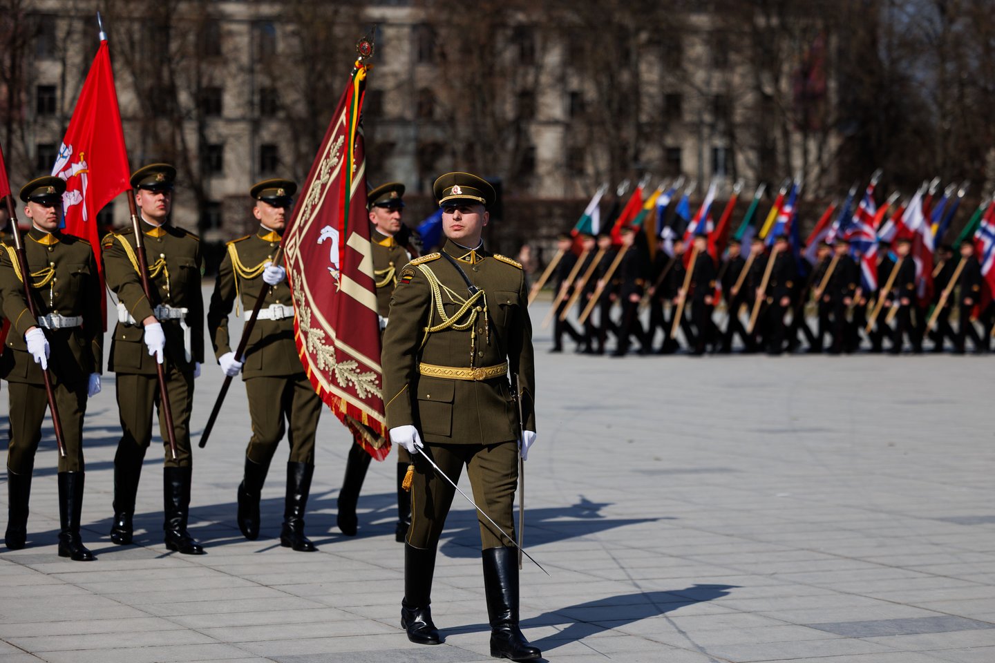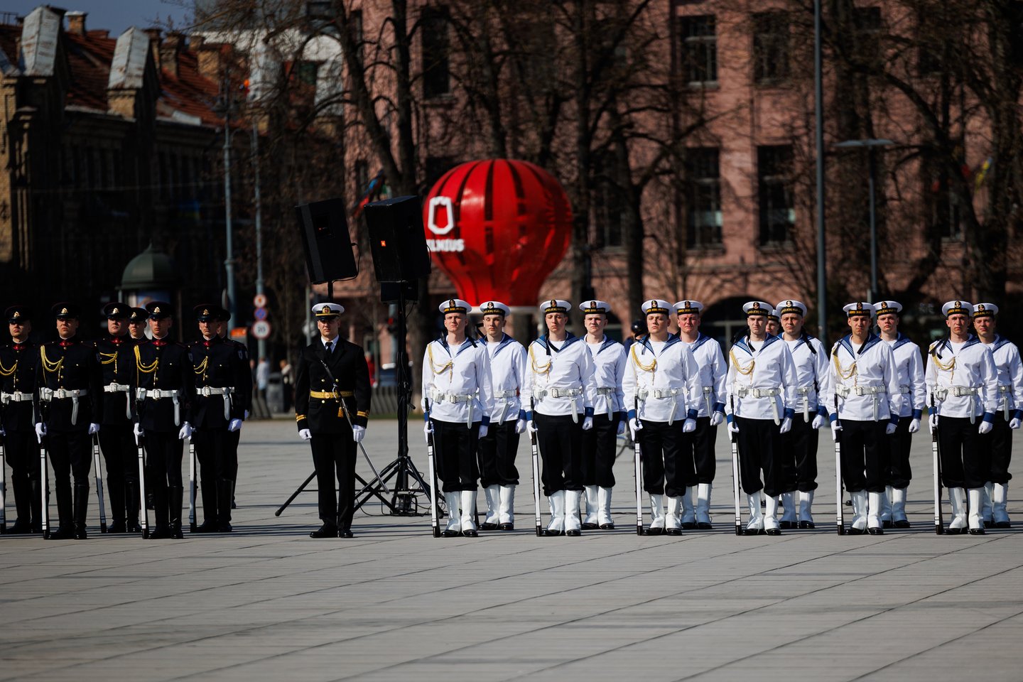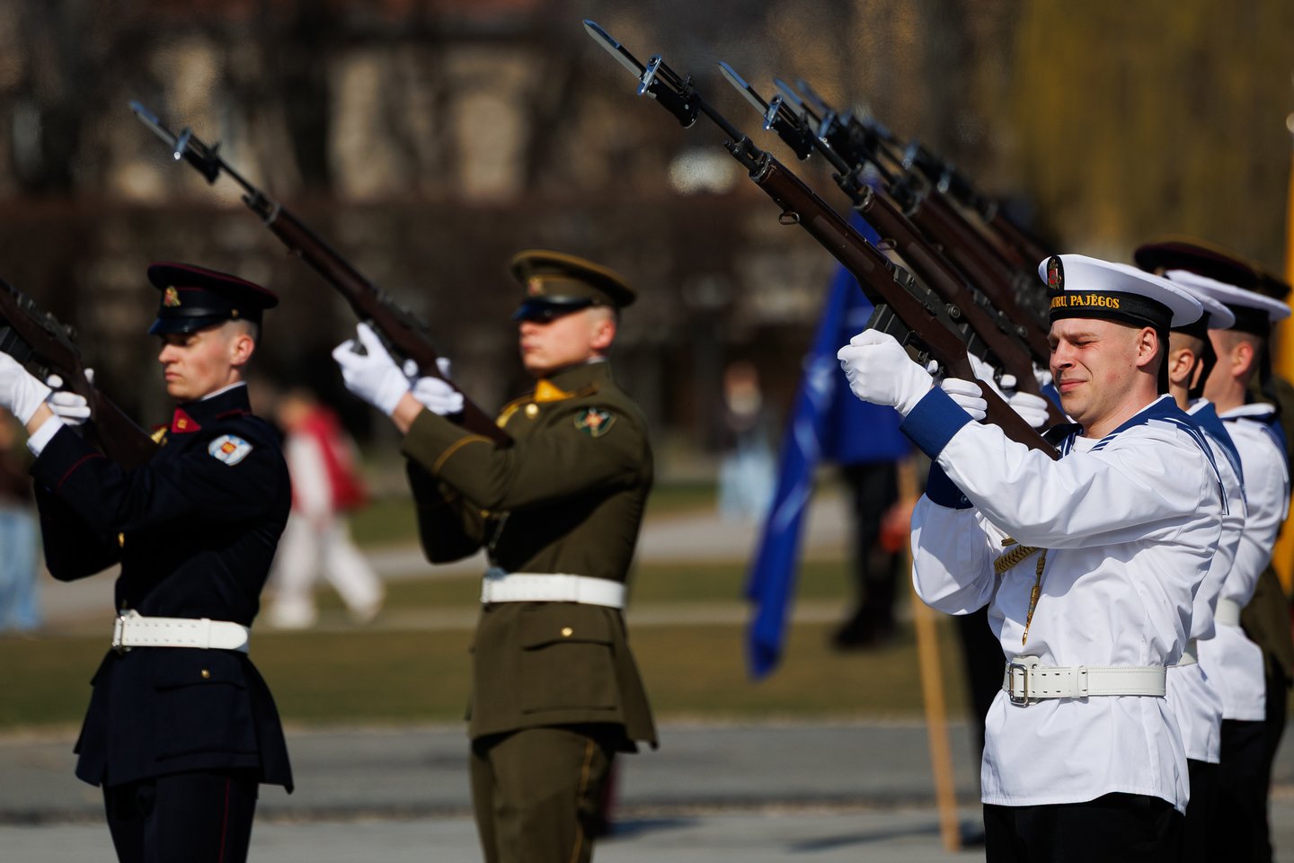 Vilniuje sekmadienį žmonės šurmuliavo ne tik dėl Verbų sekmadienio. Miesto svečiai bei vilniečiai rinkosi į Lukiškių aikštę stebėti Lietuvos ir NATO vėliavų pakėlimo ceremonijos. Joje dalyvavo ir Lietuvos kariuomenės Garbės sargybos kuopa, Lietuvos karo akademijos kariūnų būrys su NATO valstybių vėliavomis, Lietuvos kariuomenės orkestras, Generolo Jono Žemaičio Lietuvos karo akademijos kariūnų chorai „Kariūnas“ ir „Carmina Bellum“, mūsų sąjungininkų, dislokuotų Lietuvoje, vėliavų grupių rikiuotė. Ceremonija skirta Lietuvos narystės NATO ir 77-ajam NATO gimtadieniui paminėti.