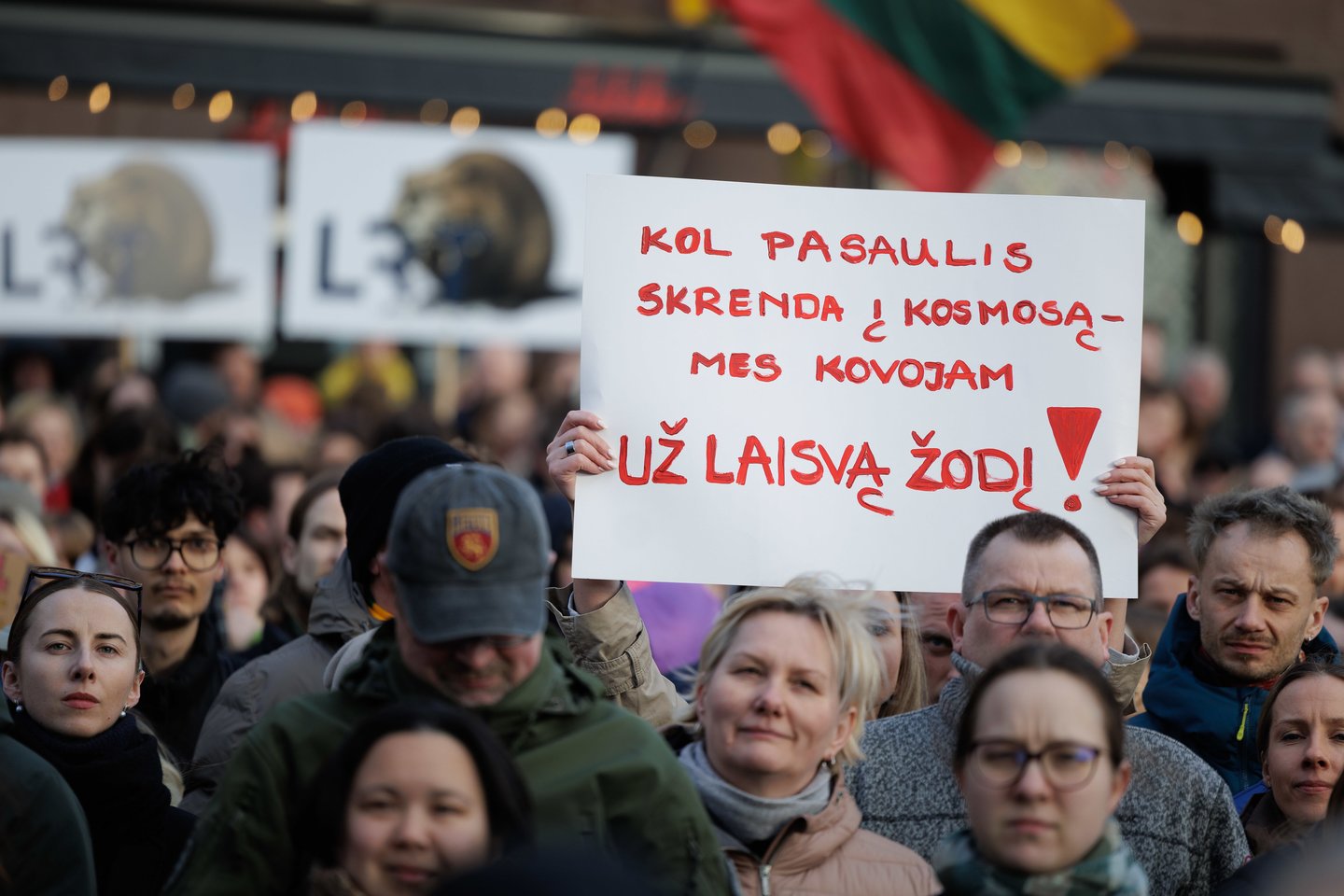 Balandžio 8-ąją prie Seimo – vėl protestas „Šalin rankas nuo laisvo žodžio!“, kuris sutraukė gausią minią. Tikimasi, kad jame dalyvaus apie 10 tūkst. žmonių. Akcijos iniciatoriai siekia atkreipti dėmesį į laisvo žodžio klausimus ir pasiųsti aiškią žinutę valdžiai. Protesto akimirkas užfiksavo portalo Lrytas fotografas V. Skaraitis.
