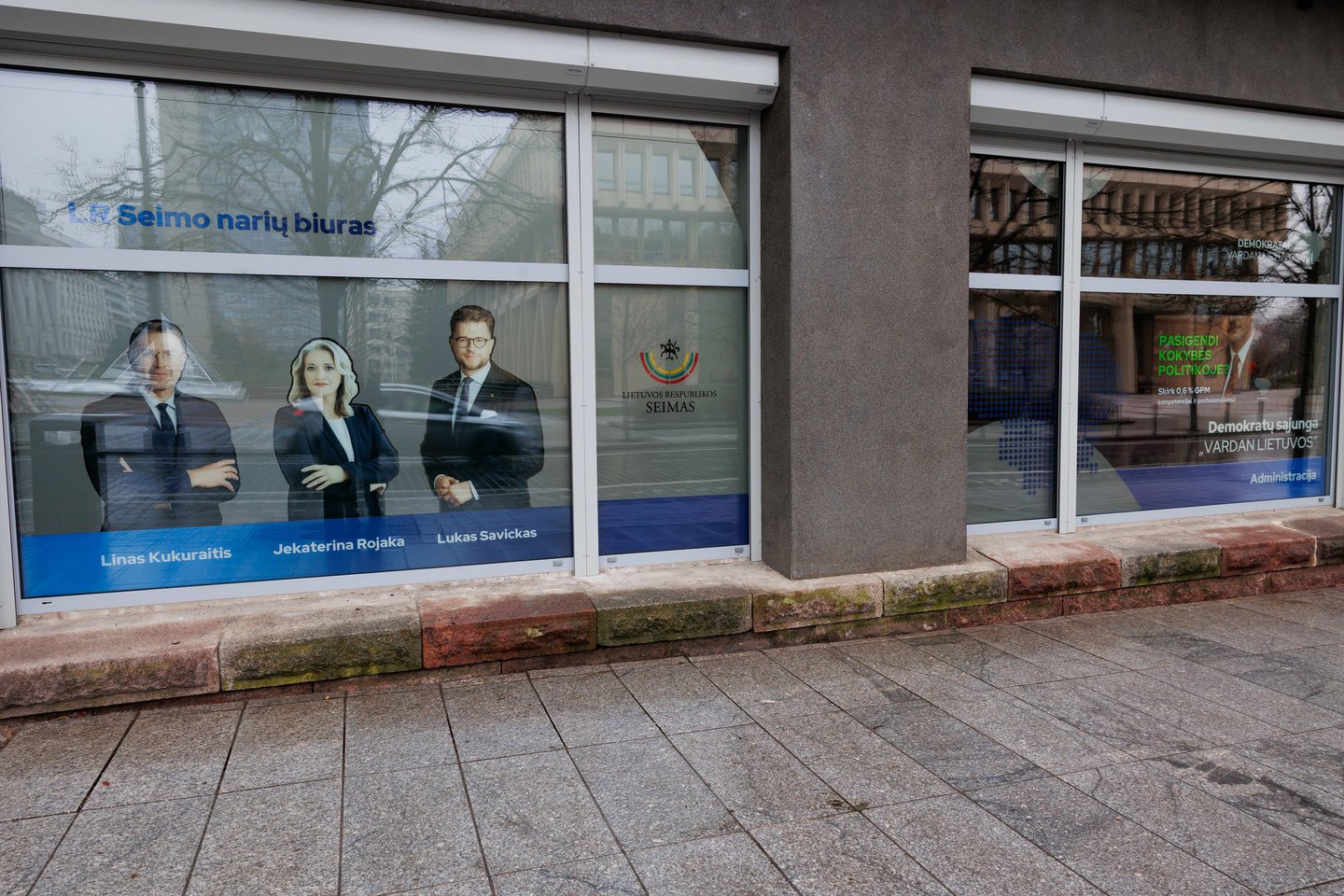 Praėjusį penktadienį, kai „Vardan Lietuvos“ būstinėje rinkosi partijos valdyba ir rinko laikinąjį pirmininką, ant vieno iš štabo langų buvo galima matyti S. Skvernelio, frakcijos Seime seniūno Luko Savicko bei parlamentarės, „Vardan Lietuvos“ vicepirmininkės Jekaterinos Rojakos veidus.