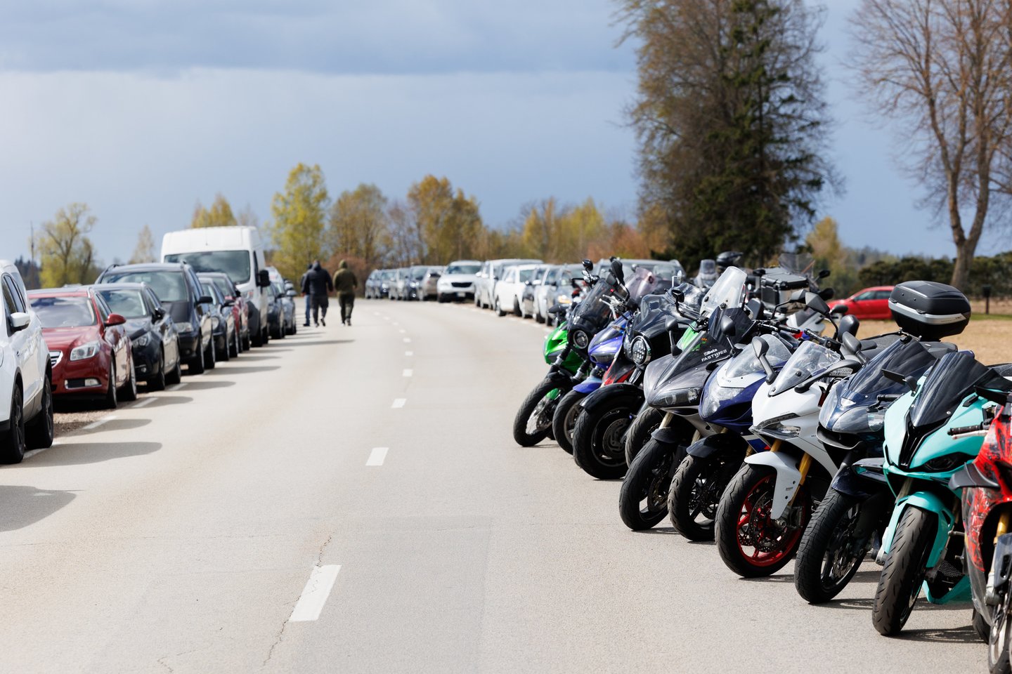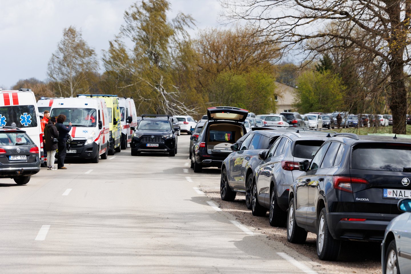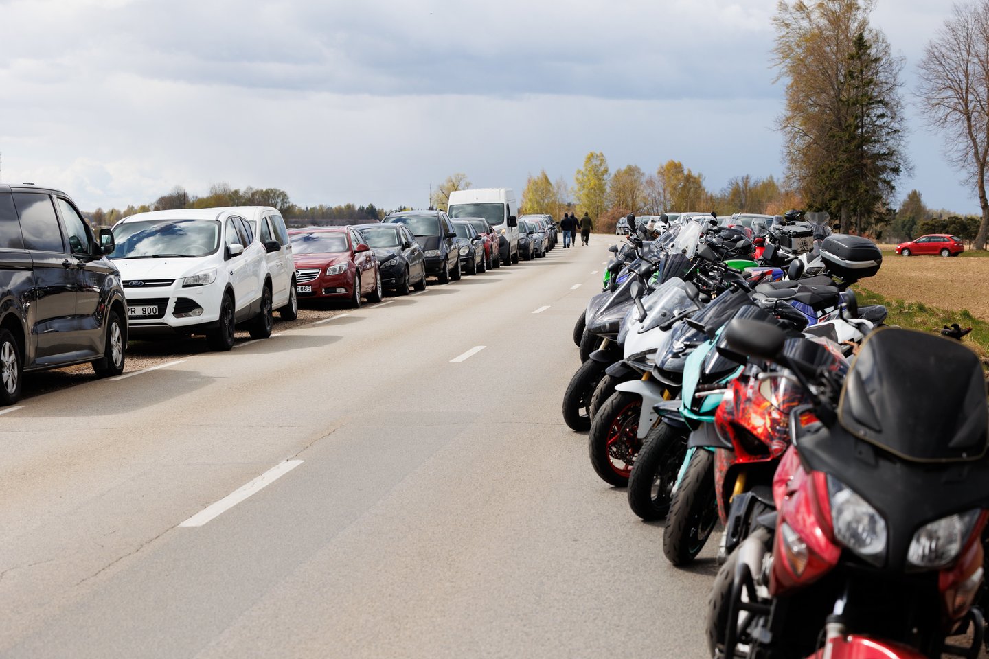 Šalia kelio, greta nedidelių kapinaičių nutįso ilga automobilių eilė.
