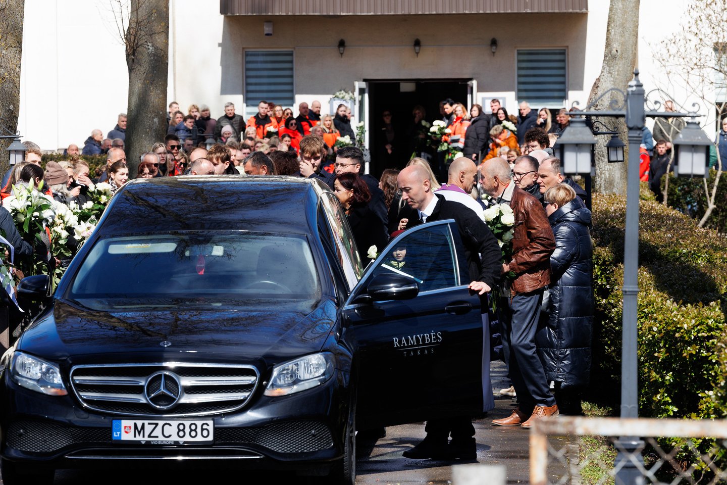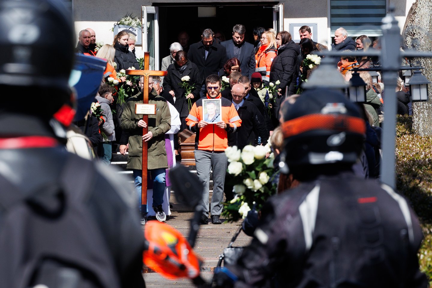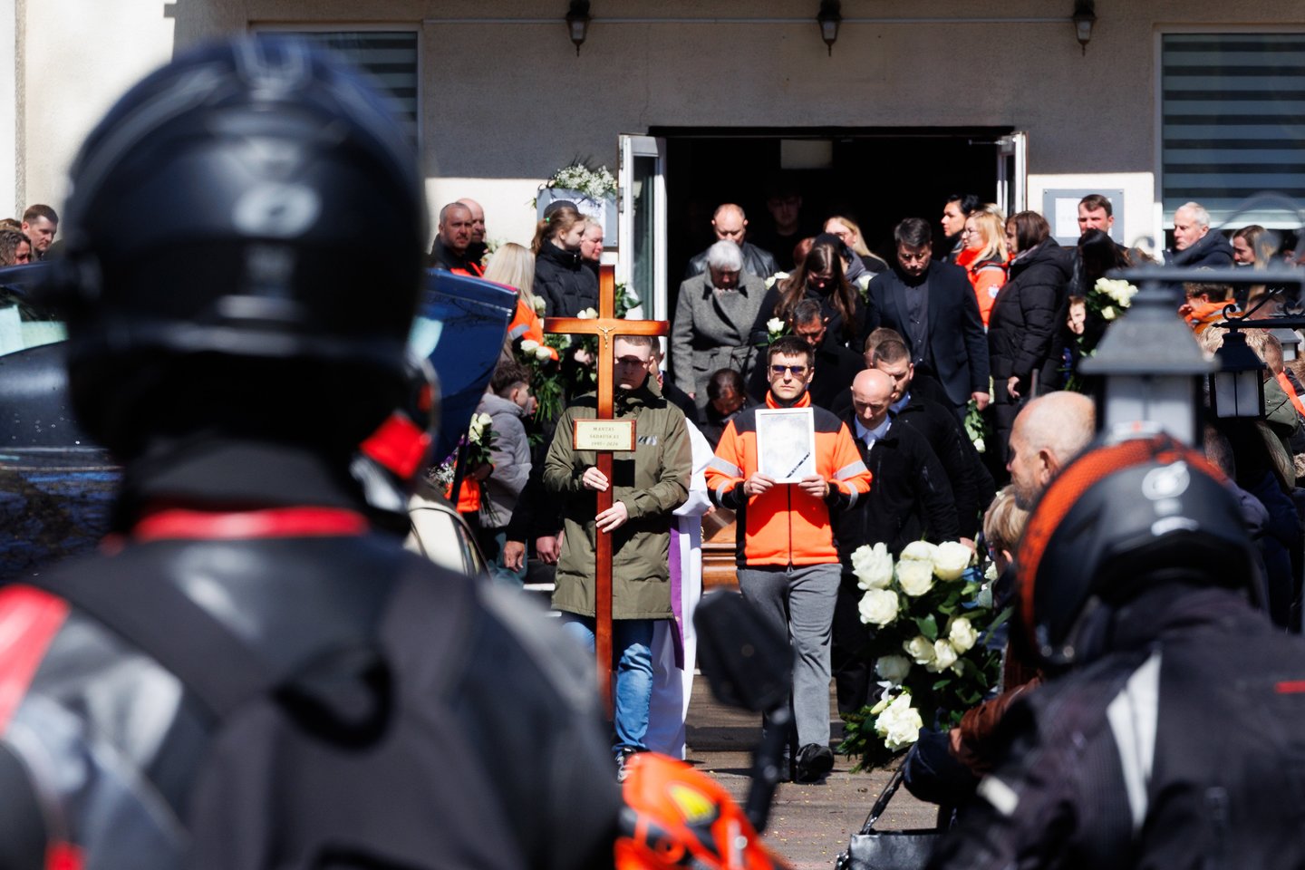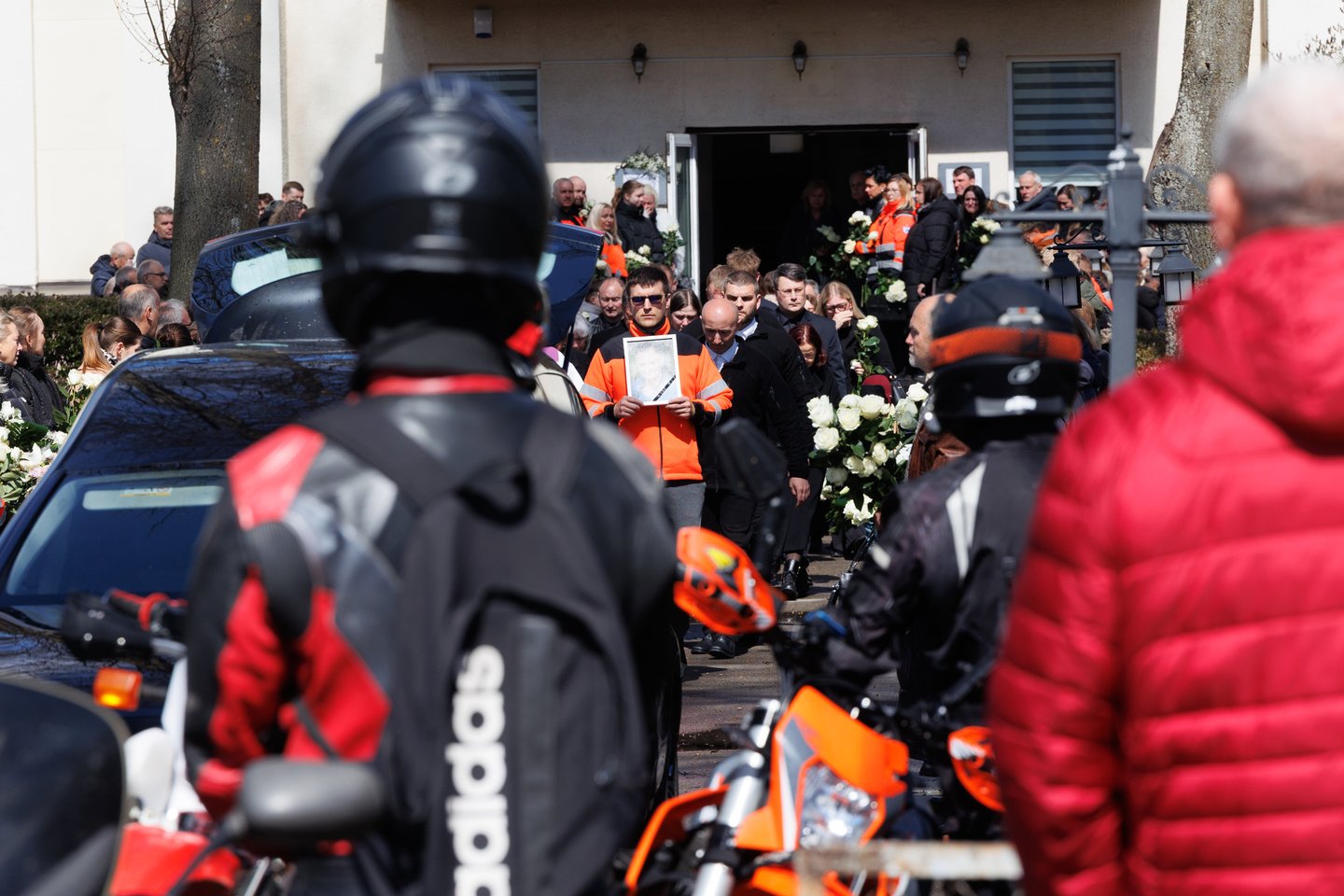 Sekmadienį Panevėžyje su tragiškai nužudytu paramediku Mantu Sadausku atsisveikino šimtai žmonių. Miestas paskendo tylioje pagarboje – gatvėse rikiavosi automobiliai, žmonės stojo pakelėse, kai kurie priklaupė, lydėdami kortežą į paskutinę kelionę. Po 13 valandos laidotuvių kortežas pajudėjo Raguvėlės kapinių link. Už miesto ribų jį su ašaromis ir juodais kaspinais rankose lydėjo vietos gyventojai – net ir nepažinoję velionio jautė pareigą atsisveikinti. Į paskutinę kelionę M. Sadauską palydėjo ne tik artimieji ir draugai, bet ir gausus būrys kolegų – paramedikų iš Panevėžio, Kauno bei kitų miestų. Prie kortežo prisijungė ir motociklininkai – ši aistra velioniui buvo itin artima. Lrytas fotografas T. Bauras užfiksavo jautrų atsisveikinimą ir paramediko palydėtuves į paskutinio poilsio vietą.