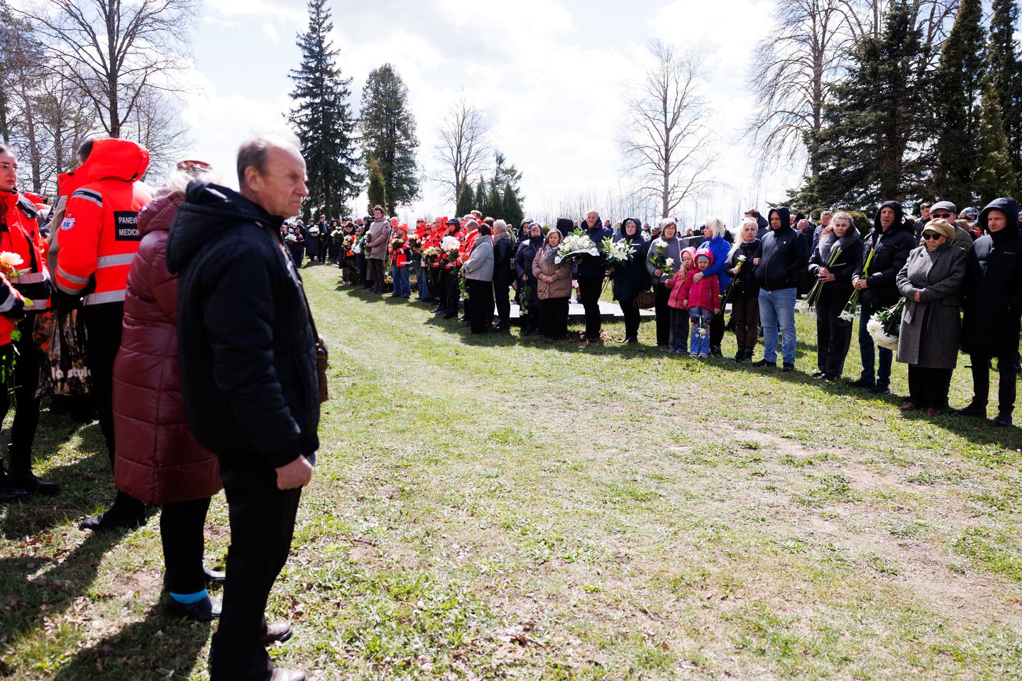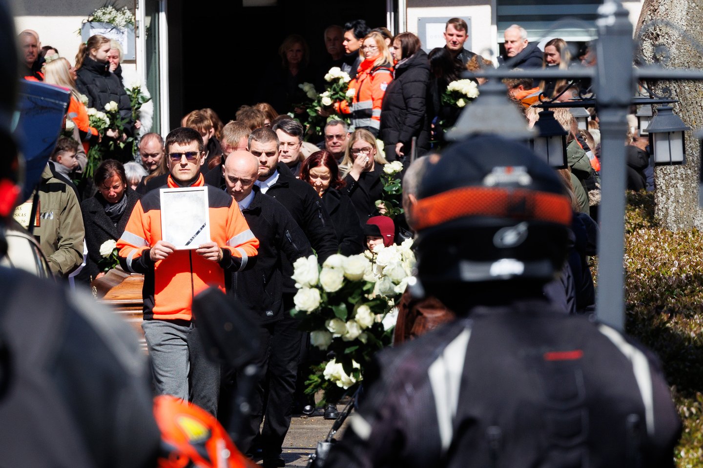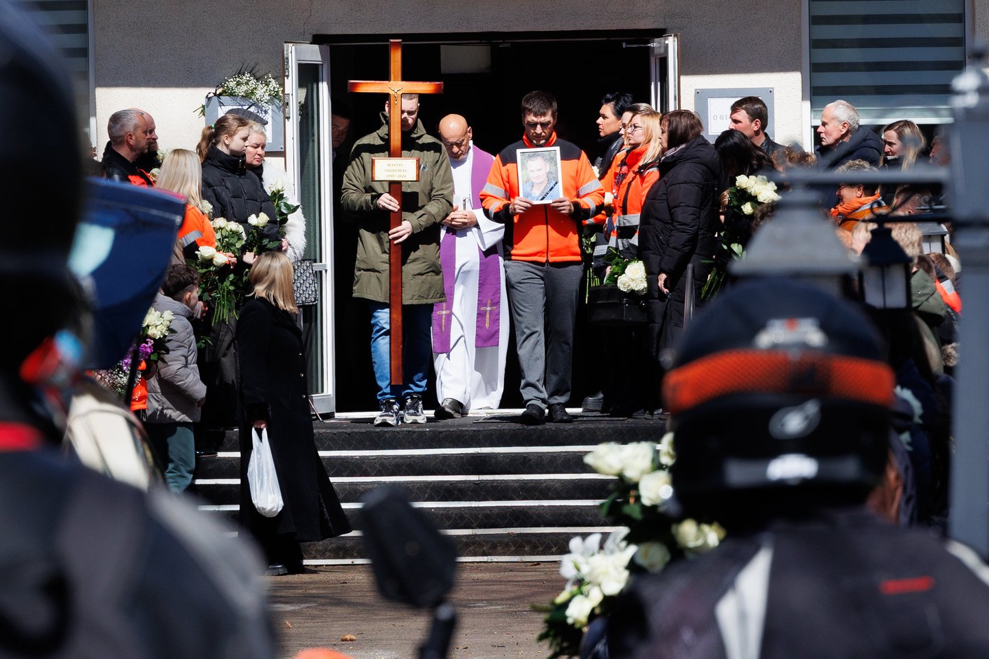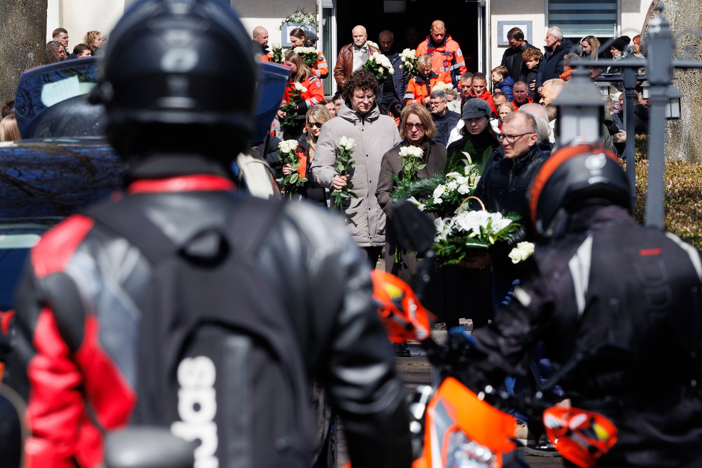 Sekmadienį Panevėžyje su tragiškai nužudytu paramediku Mantu Sadausku atsisveikino šimtai žmonių. Miestas paskendo tylioje pagarboje – gatvėse rikiavosi automobiliai, žmonės stojo pakelėse, kai kurie priklaupė, lydėdami kortežą į paskutinę kelionę. Po 13 valandos laidotuvių kortežas pajudėjo Raguvėlės kapinių link. Už miesto ribų jį su ašaromis ir juodais kaspinais rankose lydėjo vietos gyventojai – net ir nepažinoję velionio jautė pareigą atsisveikinti. Į paskutinę kelionę M. Sadauską palydėjo ne tik artimieji ir draugai, bet ir gausus būrys kolegų – paramedikų iš Panevėžio, Kauno bei kitų miestų. Prie kortežo prisijungė ir motociklininkai – ši aistra velioniui buvo itin artima. Lrytas fotografas T. Bauras užfiksavo jautrų atsisveikinimą ir paramediko palydėtuves į paskutinio poilsio vietą.