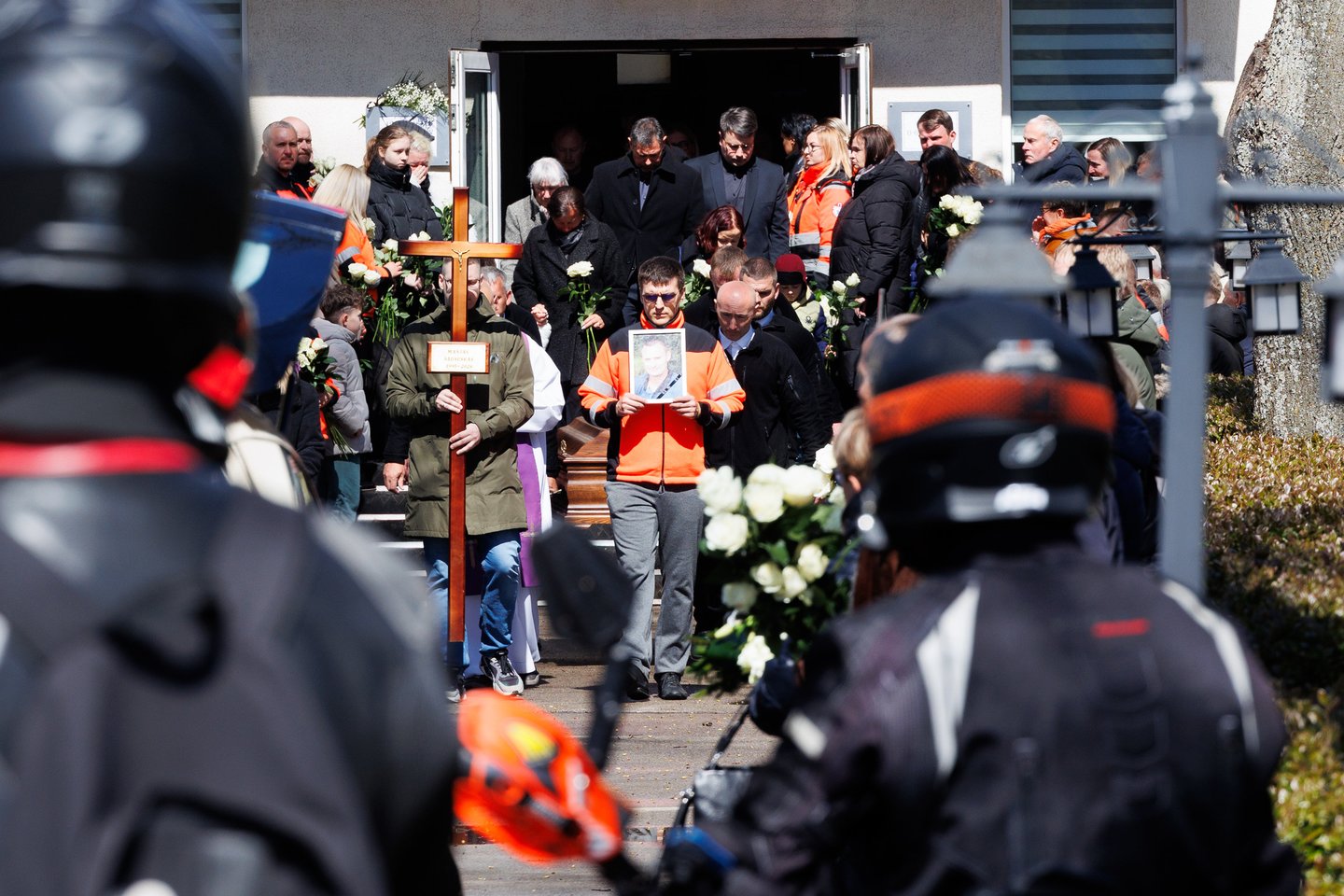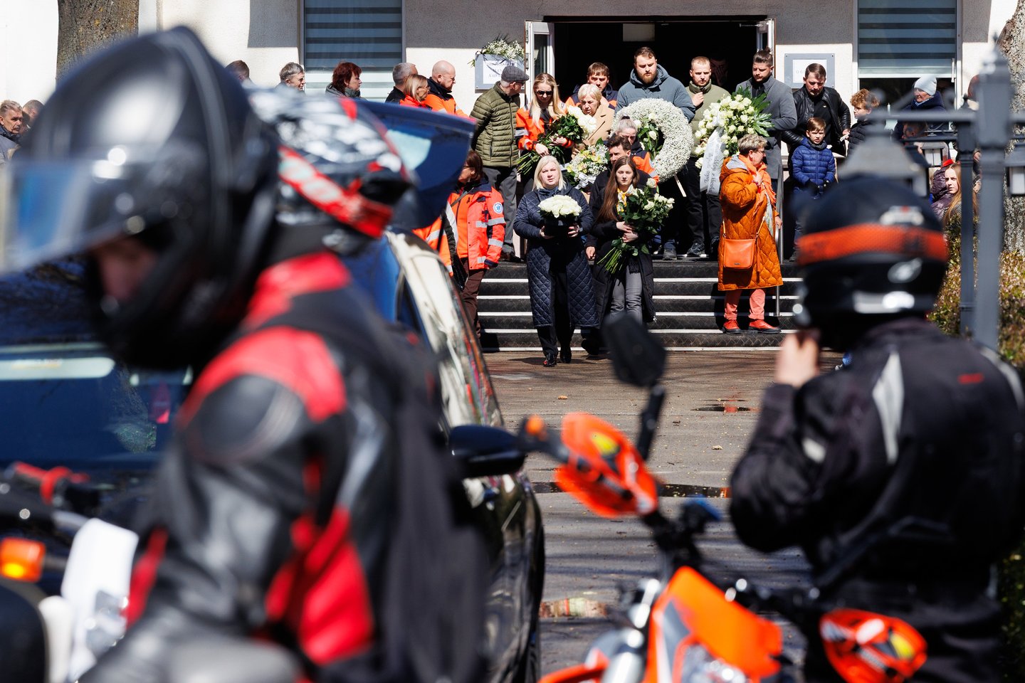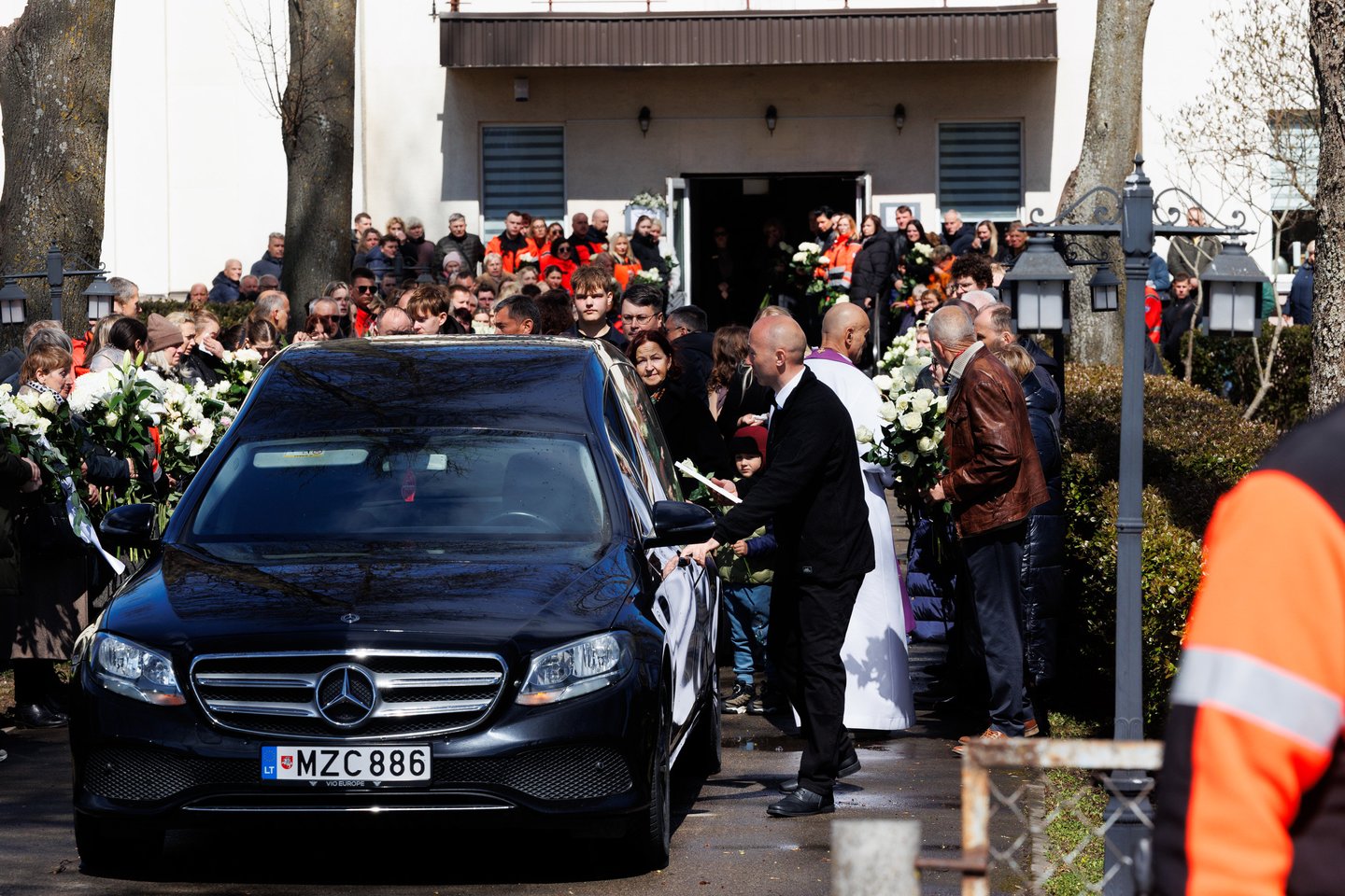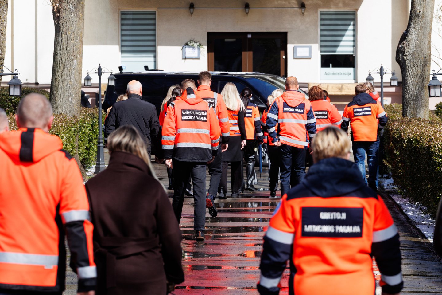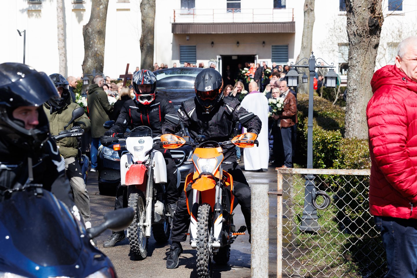 Sekmadienį Panevėžyje su tragiškai nužudytu paramediku Mantu Sadausku atsisveikino šimtai žmonių. Miestas paskendo tylioje pagarboje – gatvėse rikiavosi automobiliai, žmonės stojo pakelėse, kai kurie priklaupė, lydėdami kortežą į paskutinę kelionę. Po 13 valandos laidotuvių kortežas pajudėjo Raguvėlės kapinių link. Už miesto ribų jį su ašaromis ir juodais kaspinais rankose lydėjo vietos gyventojai – net ir nepažinoję velionio jautė pareigą atsisveikinti. Į paskutinę kelionę M. Sadauską palydėjo ne tik artimieji ir draugai, bet ir gausus būrys kolegų – paramedikų iš Panevėžio, Kauno bei kitų miestų. Prie kortežo prisijungė ir motociklininkai – ši aistra velioniui buvo itin artima. Lrytas fotografas T. Bauras užfiksavo jautrų atsisveikinimą ir paramediko palydėtuves į paskutinio poilsio vietą.
