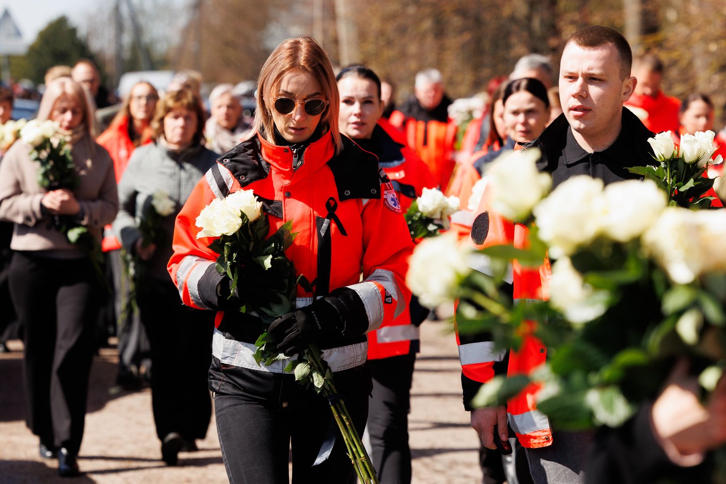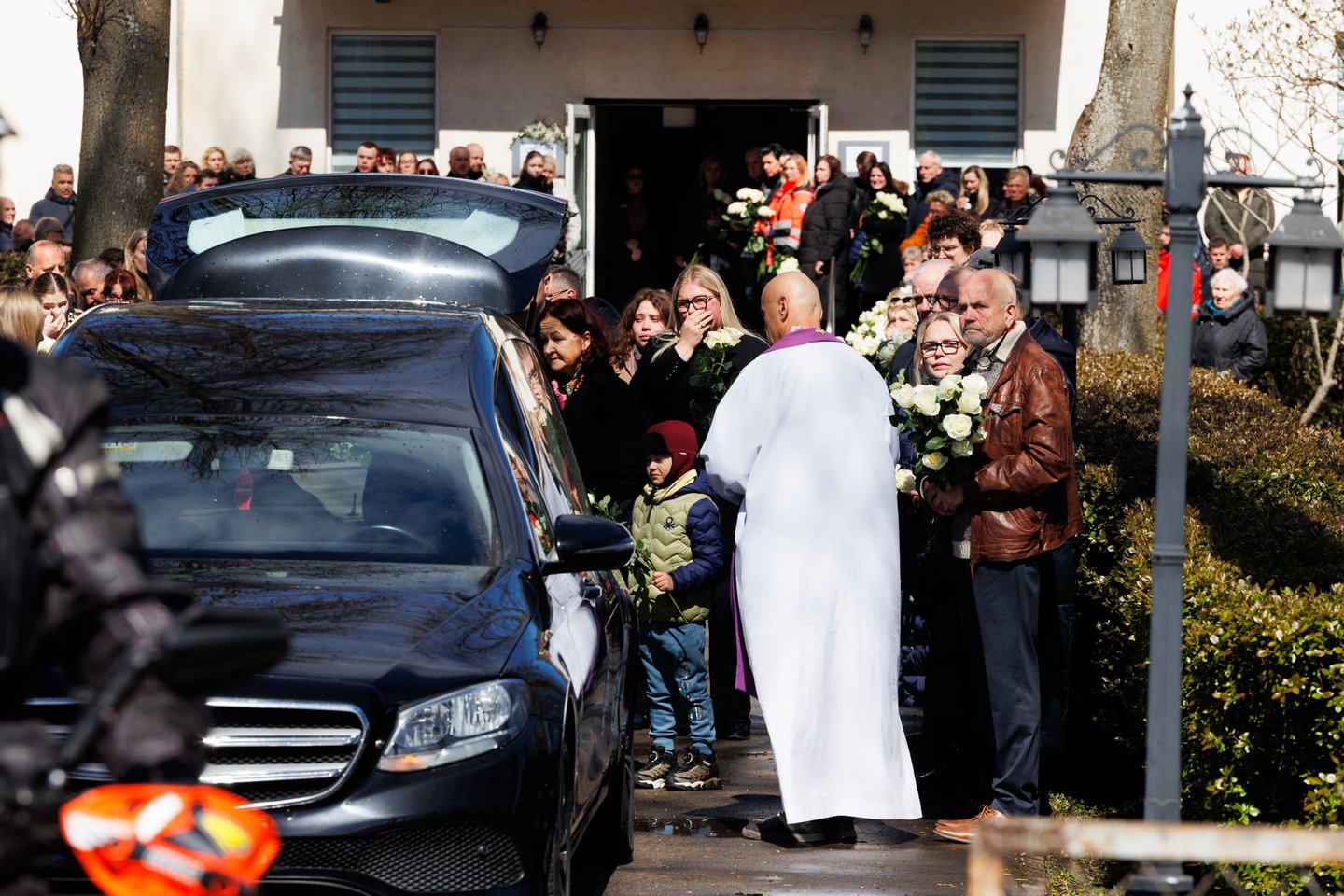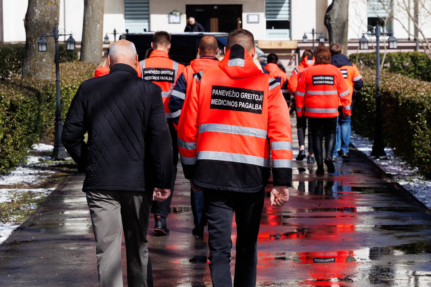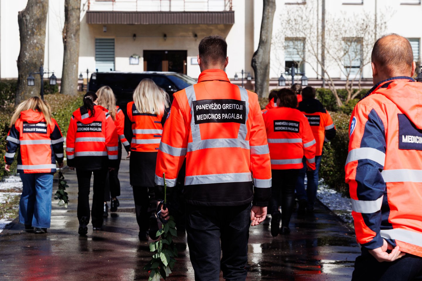 Sekmadienį Panevėžyje su tragiškai nužudytu paramediku Mantu Sadausku atsisveikino šimtai žmonių. Miestas paskendo tylioje pagarboje – gatvėse rikiavosi automobiliai, žmonės stojo pakelėse, kai kurie priklaupė, lydėdami kortežą į paskutinę kelionę. Po 13 valandos laidotuvių kortežas pajudėjo Raguvėlės kapinių link. Už miesto ribų jį su ašaromis ir juodais kaspinais rankose lydėjo vietos gyventojai – net ir nepažinoję velionio jautė pareigą atsisveikinti. Į paskutinę kelionę M. Sadauską palydėjo ne tik artimieji ir draugai, bet ir gausus būrys kolegų – paramedikų iš Panevėžio, Kauno bei kitų miestų. Prie kortežo prisijungė ir motociklininkai – ši aistra velioniui buvo itin artima. Lrytas fotografas T. Bauras užfiksavo jautrų atsisveikinimą ir paramediko palydėtuves į paskutinio poilsio vietą.