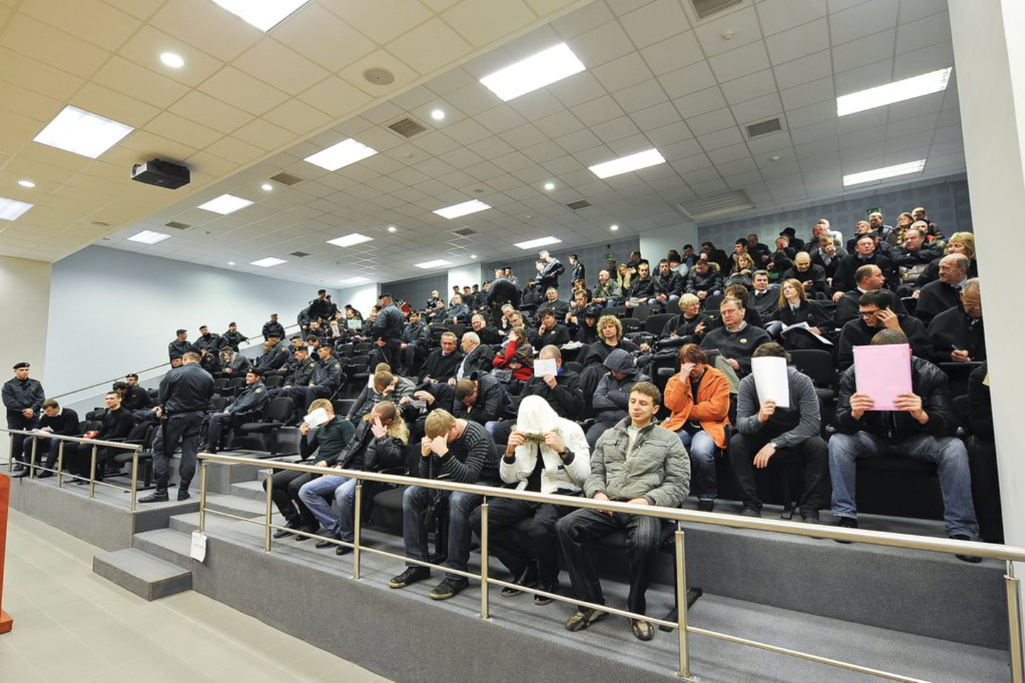 Dėl didelio kaltinamųjų, gynėjų, nukentėjusių ir tvarką prižiūrinčių konvojaus pareigūnų skaičiaus Vilniaus apygardos teismas bylą turėjo nagrinėti ne savo patalpose, bet Vilniaus miesto apylinkės teismų konferencijų salėje.