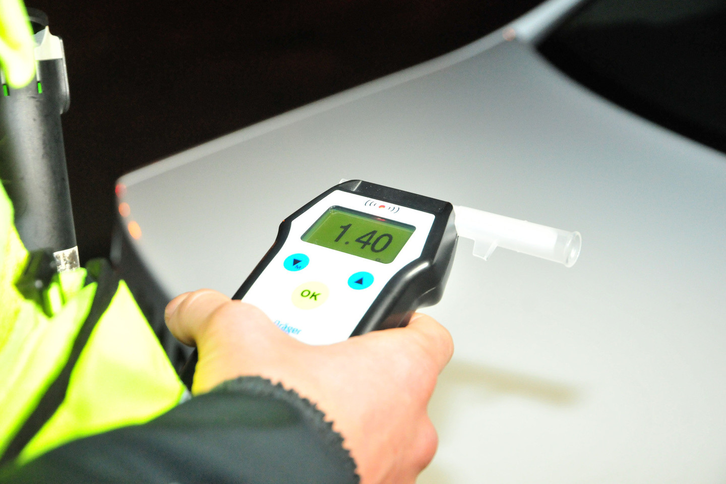 alkotesterio. Gal iki dešimties sekundžių analizavo alkotesteris.