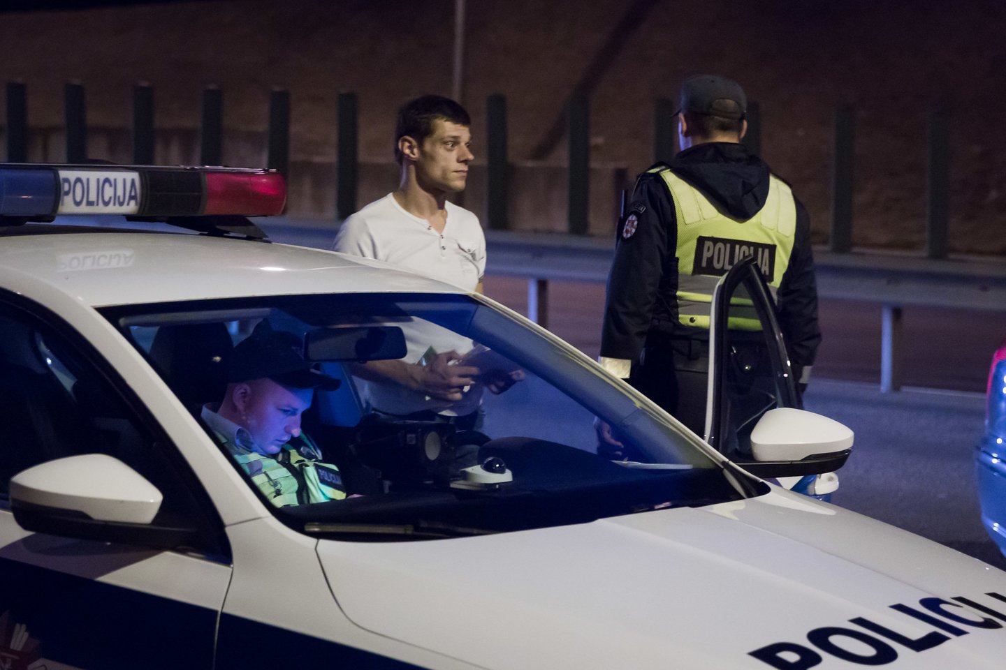 Vyras slapstėsi nuo žurnalistų kamerų ir kalbėjosi telefonu. Jam buvo surašytas protokolas, o vėliau atvykęs draugas vairuoti neturintį vaikiną automobiliu „Toyota“ parvežė namo.