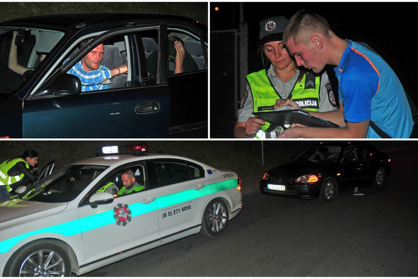 Visų pirma vos tik pradėjus tikrinti automobilius buvo sustabdytas automobilis „Audi“. Paaiškėjo, kad jo vairuotojas neturi ir niekada neturėjo vairuotojo pažymėjimo. Maža to, vaikinas buvo ir nedaug išgėręs. Į alkotesterį jis įpūtė 0,07 prom. Tai leidžiama norma, tad baudžiamas jis bus tik už vairavimą neturint tam teisės.