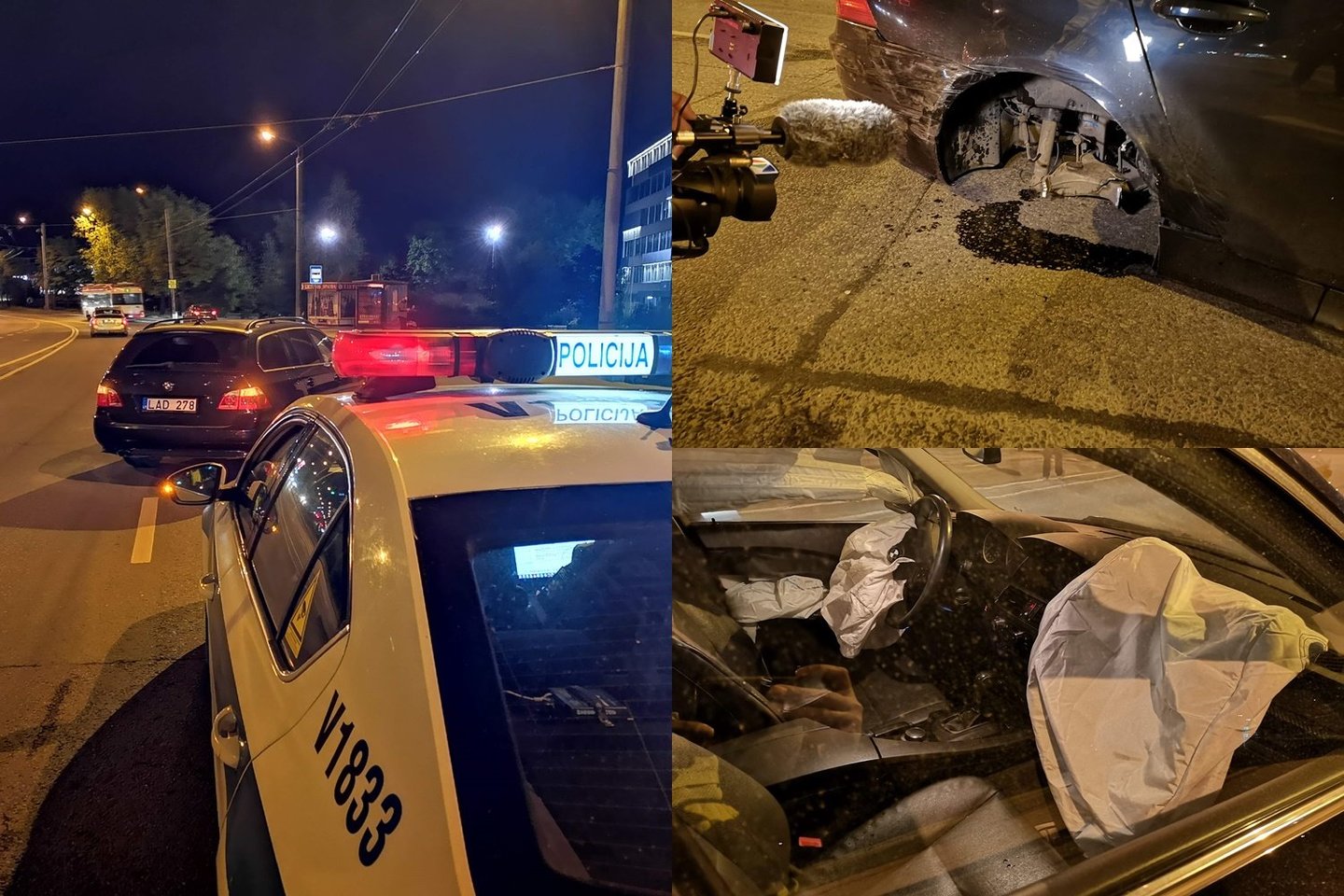 Smūgis buvo galingas – į šoną nulėkė net vienas galinis pirmojo BMW ratas, automobilį apsuko. Avarijos kaltininko automobilis irgi apsisuko ir sustojo priešingos krypties eismo juostoje. Jis apgadintas kiek mažiau, iššaudė automobilio oro pagalvės.