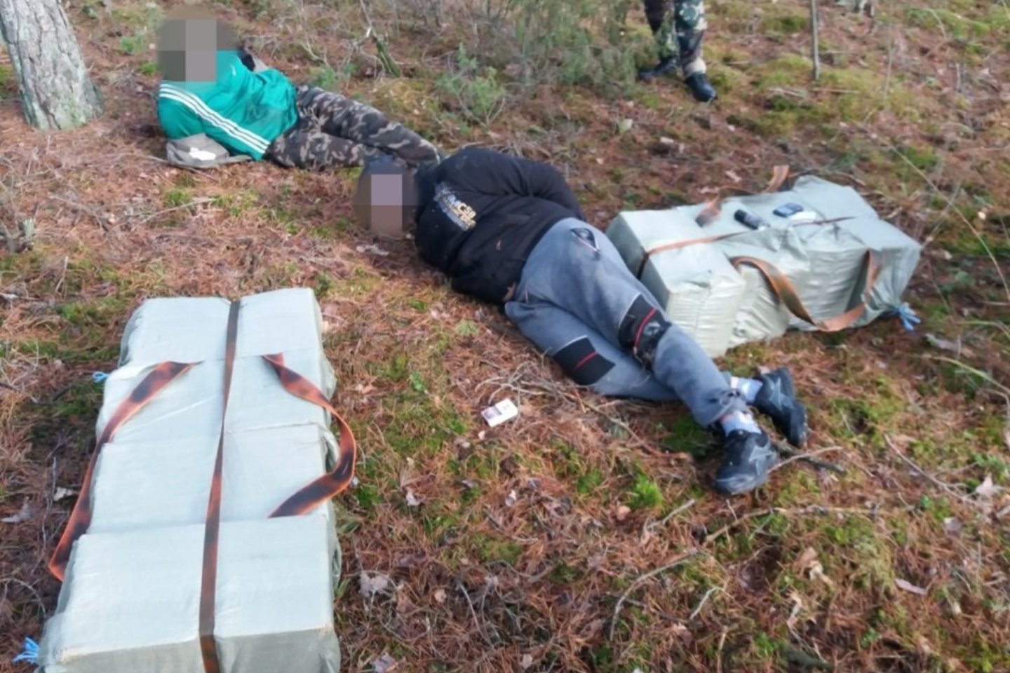 Čia du didelius ryšulius, prie kurių buvo pritvirtintos petnešos, iškart pagriebė du vyrai. Jie krovinį užsimetė ant pečių ir pradėjo judėti į Lietuvos gilumą, tačiau paėjėjo tik kelis metrus. Druskininkų pasieniečiai abu kontrabandininkus po kelių akimirkų suguldė ant žemės ir sulaikė.