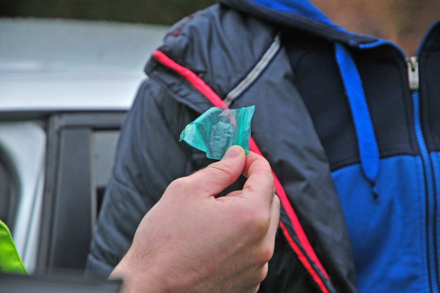 Tą pačią dieną, maždaug 17 val. 27 min. Klaipėdoje, Taikos prospekte, sustabdžius ir patikrinus automobilį „Mercedes-Benz“, daiktadėžėje buvo rastas ir paimtas švirkštas su rausvos spalvos skysčiu, galimai narkotine medžiaga.