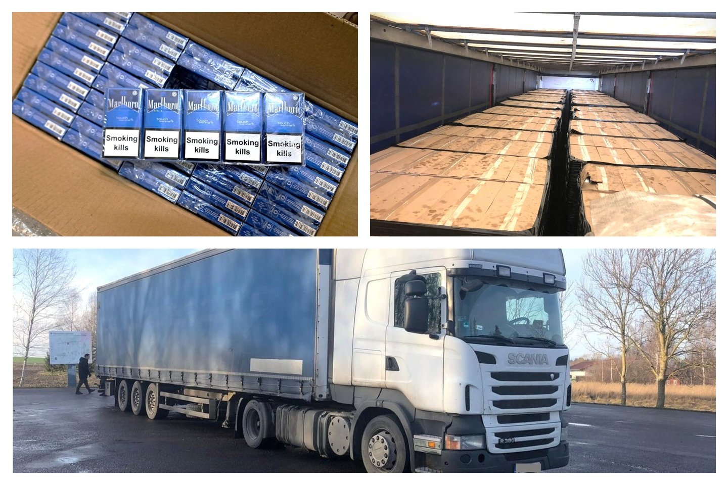 Puspriekabėje pasieniečiai aptiko 180 tūkst. pakelių cigarečių „Marlboro“ be akcizo ženklų ir 300 tūkst. pakelių cigarečių „Minsk Capital“ su baltarusiškomis banderolėmis. Viso buvo gabenama 480 tūks. pakelių cigarečių. Jų vertė, įskaičiavus Lietuvoje privalomus sumokėti mokesčius, galėtų siekti 2 mln. 150 tūkst. eurų.