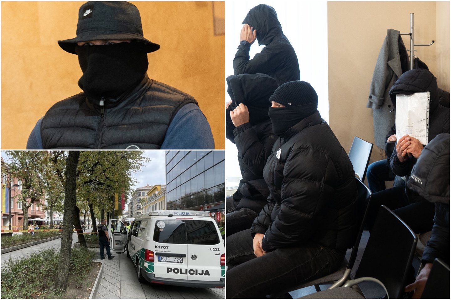 Nuosprendžio išklausyti atvykęs aštuonetas smogikų buvo užsimaukšlinę ant kepures, striukų gobtuvus, apsisiautę šalikais, kad nesimatytų jų veidų.