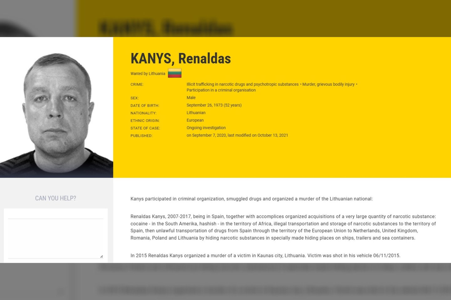 Nors Europolas skelbia, kad į sąrašą įtraukta naujų bėglių, tarp ieškomiausiųjų esančių Lietuvos piliečių pavardės čia nesikeičia. Tai Renaldas Kanys, Dariuš Požarickij ir Tomas Bolgovas.