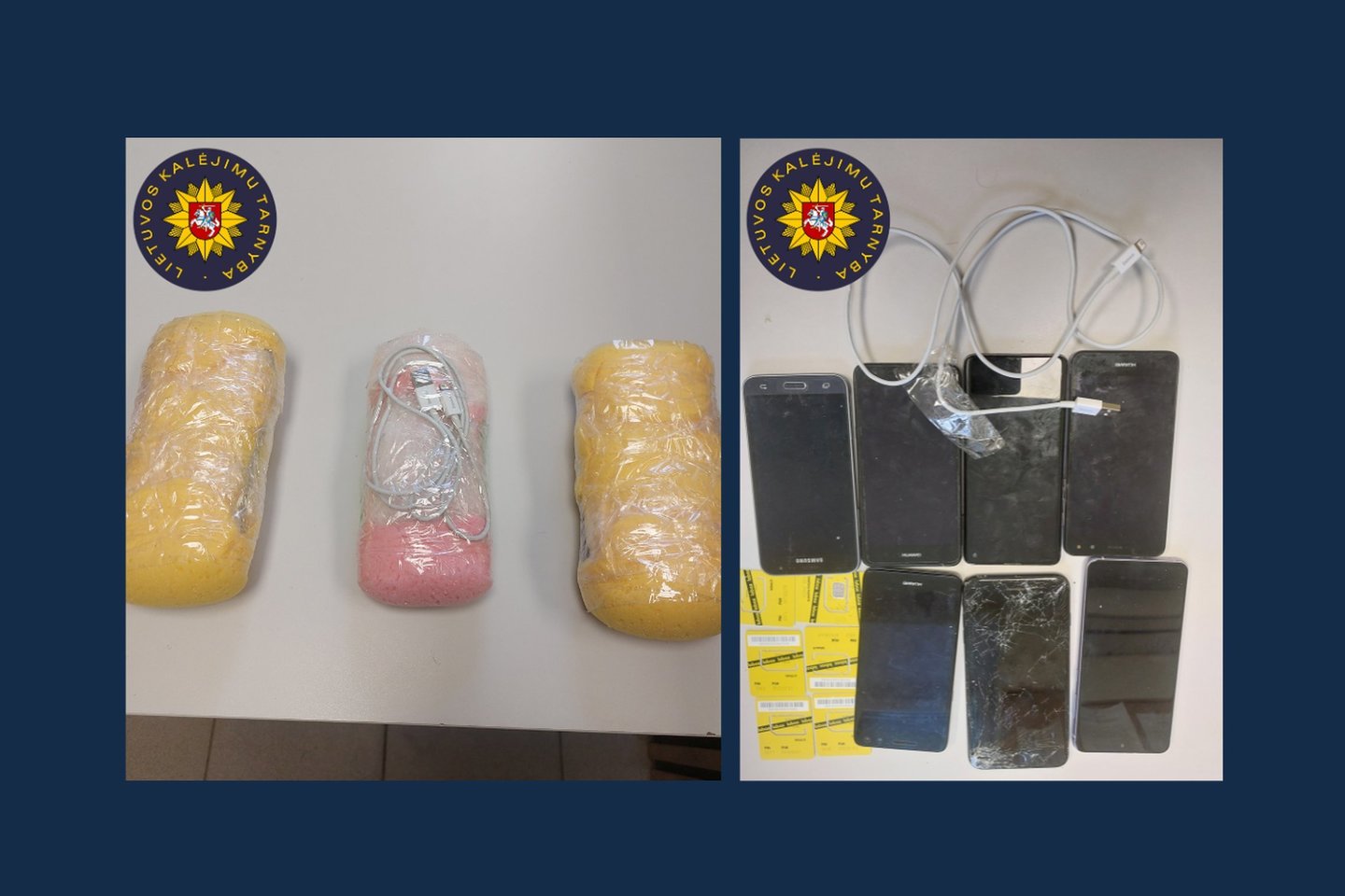 Išardžius paketus, rasti 7 mobiliojo ryšio telefonai ir 6 SIM kortelės.