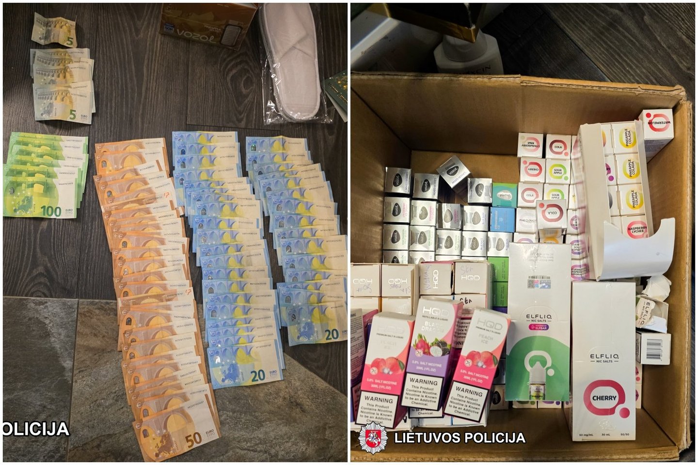 Vilniaus apskrities vyriausiojo policijos komisariato Kriminalinės policijos ekonominių nusikaltimų tyrimo valdybos pareigūnai, turėdami informaciją apie neteisėtą disponavimą akcizais apmokestinamomis prekėmis, šių metų vasario 23 d. Vilniuje, sulaikė tris su šia nusikalstama veika siejamus vyrus (gimę 2001 m., 1991 m., 1965 m.). Sulaikytieji disponavo labai dideliu kiekiu akcizais apmokestinamų prekių: elektroninėmis cigaretėmis su skysčiais, elektroninių cigarečių skysčiais bei kitais jų priedais.