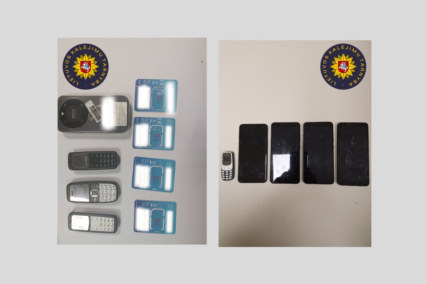 Paketus patikrinus nustatyta, kad viduje buvo keturi mobiliojo ryšio telefonai ir keturios SIM kortelės. Radinys paimtas.