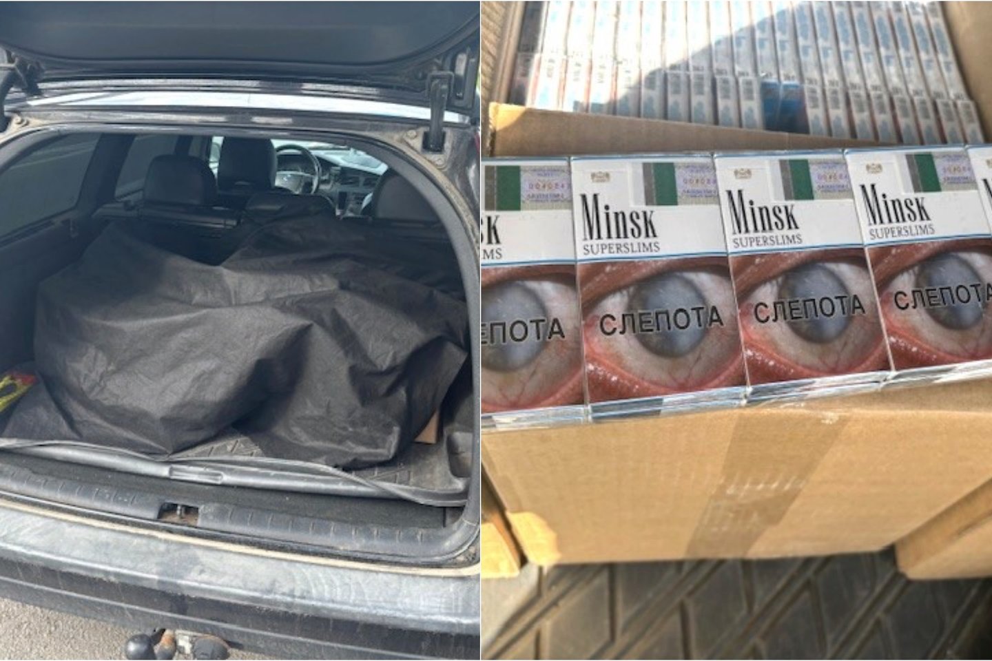 Patikrinus automobilį, bagažo skyriuje rastos keturios dėžės (2 000 pakelių) cigarečių „Minsk Superslims“ ir „NZ Gold“ su baltarusiškomis banderolėmis. Tokio kiekio rūkalų vertė, įskaičiavus visus Lietuvoje privalomus sumokėti mokesčius, – 10 760 eurų.